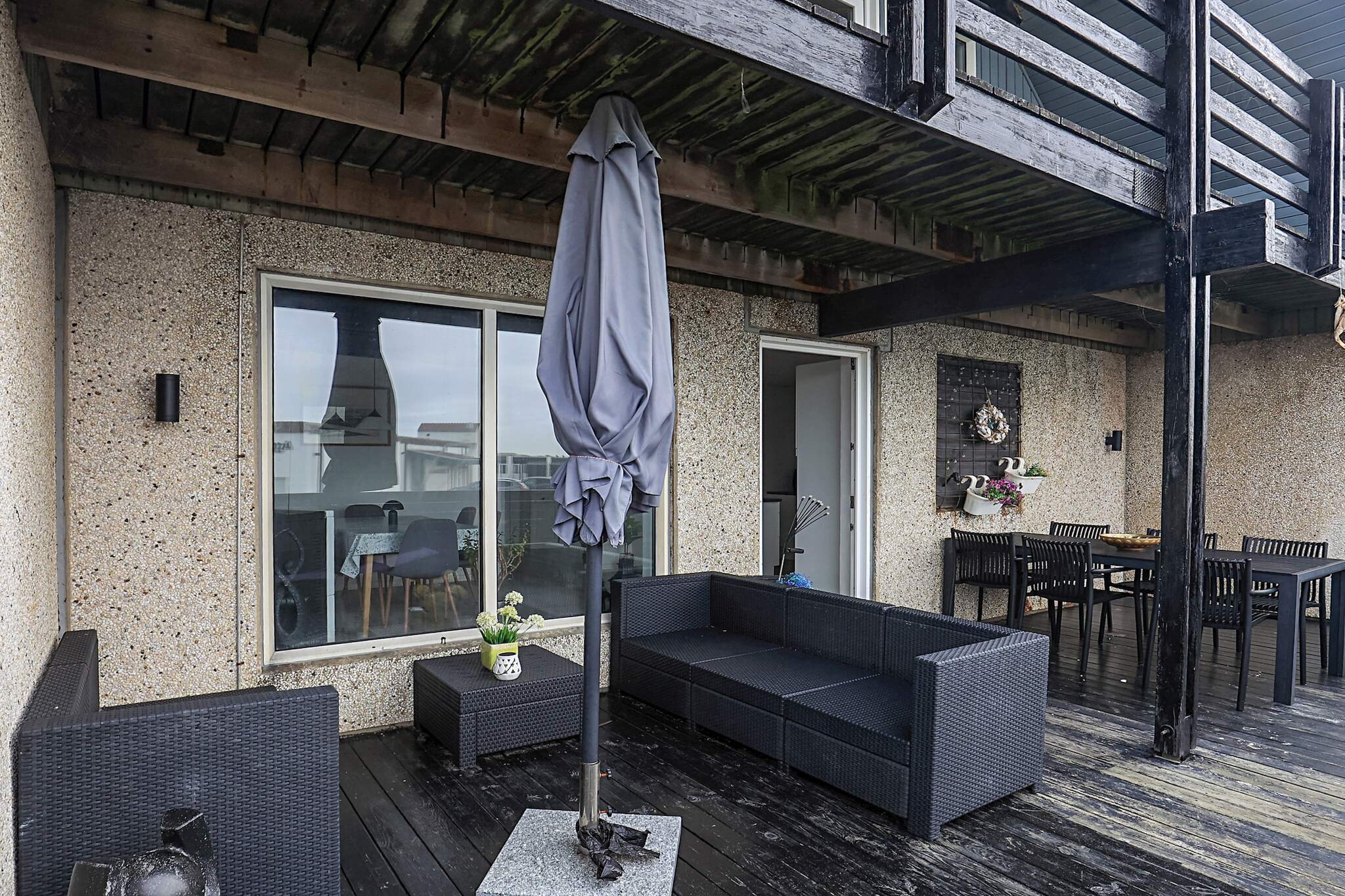 keuken(fornuis(elektrisch), koffiezetapparaat, magnetron, afwasmachine, koelkast, vriezer(100-139L)), woon/slaapkamer(TV(duitse zender(s), Deense TV zenders (DR1 en TV2)), chromecast), slaapkamer(2-pers. bed), slaapkamer(2x 1-pers. bed), slaapkamer(2x 1-pers. bed), badkamer(wasbak, douche, toilet, wasmachine), badkamer(wasbak, douche, toilet), bubbelbad(in huis, 2 personen), balkon of terras, verwarming(elektrisch), terras, tuinmeubilair, ligbedden, tafeltennistafel, tafelvoetbal, dart