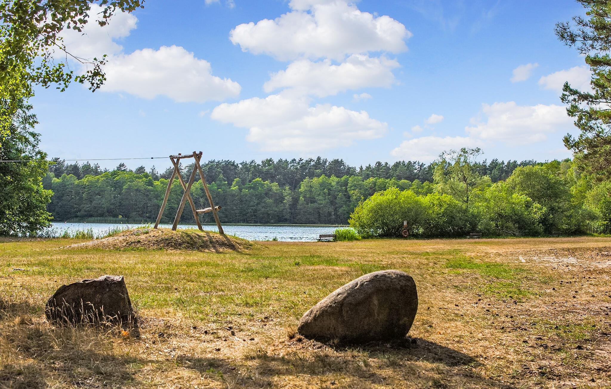 Op een rustige locatie in Kagar staan meerdere liefdevol gerenoveerde bungalows op het 10.000 vierkante meter grote natuurterrein van een voormalig vakantiekamp. Het meer- en bosrijke landschap biedt zwemplezier, veel mogelijkheden voor fietsers en wandelaars en uitgebreide kanotochten. Een aanlegsteiger voor boten op het Kagarmeer ligt aan de overkant van de weg, een mooie zwemplek op het grote Zermittmeer ligt op ca. 1,5 km afstand en een restaurant en een kleine dorpswinkel liggen op een steenworp afstand.