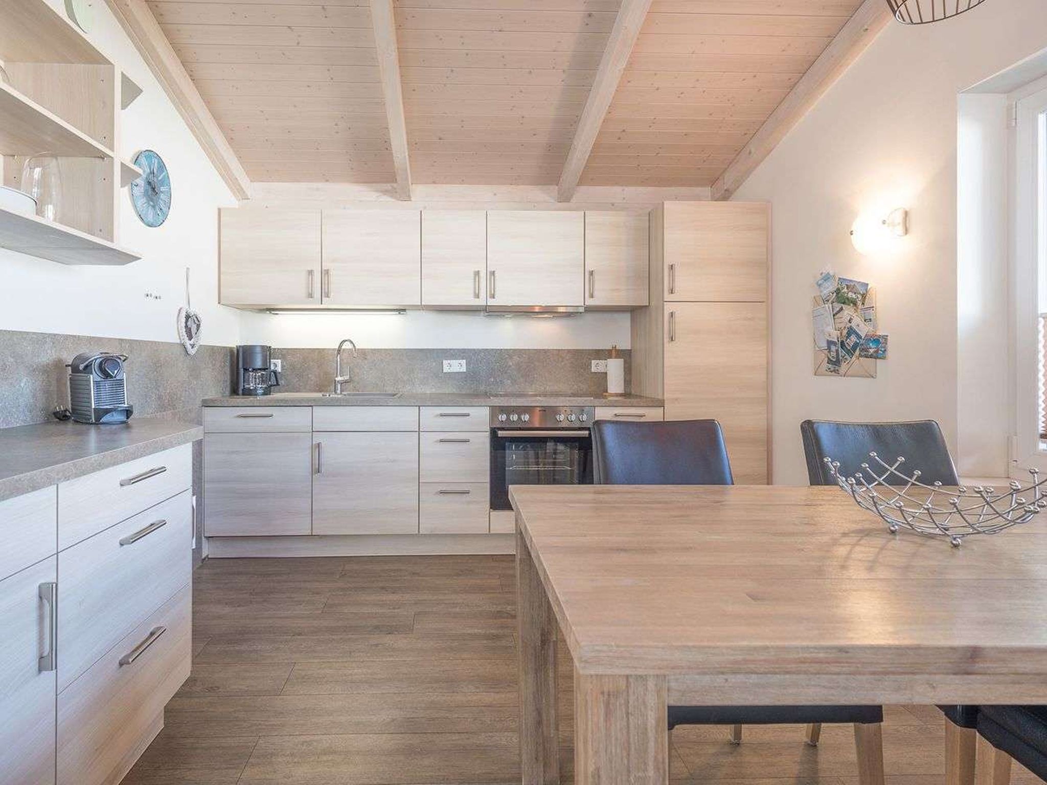 "Stockente", huis 3-kamers 85 m2, op de begane grond. Comfortabel en smaakvol ingericht: woon-/eetkamer met zwedenkachel en Sat-TV (Flatscreen TV), radio en DVD. Uitgang naar het terras. 2 2-pers. kamers. Open keuken (oven, afwasmachine, 4 keramische glas kookplaten, elektrische koffiemachine). Aparte WC, bad/douche/WC, Sauna. Terrasmeubelen. Ter beschikking: Internet (WiFi, gratis). Rookvrij huis. Maximaal 2 huisdieren/honden toegestaan. Rookmelders.