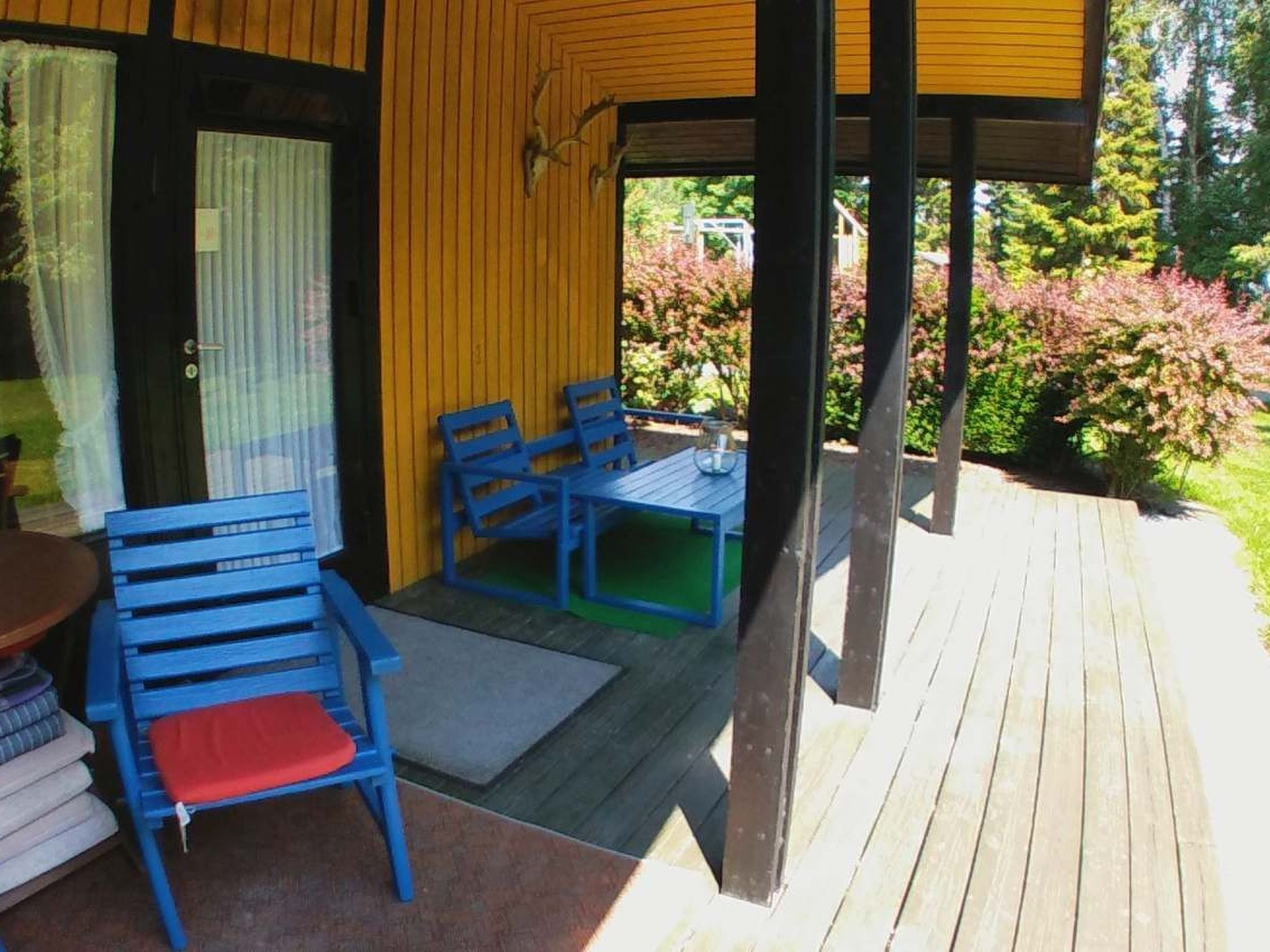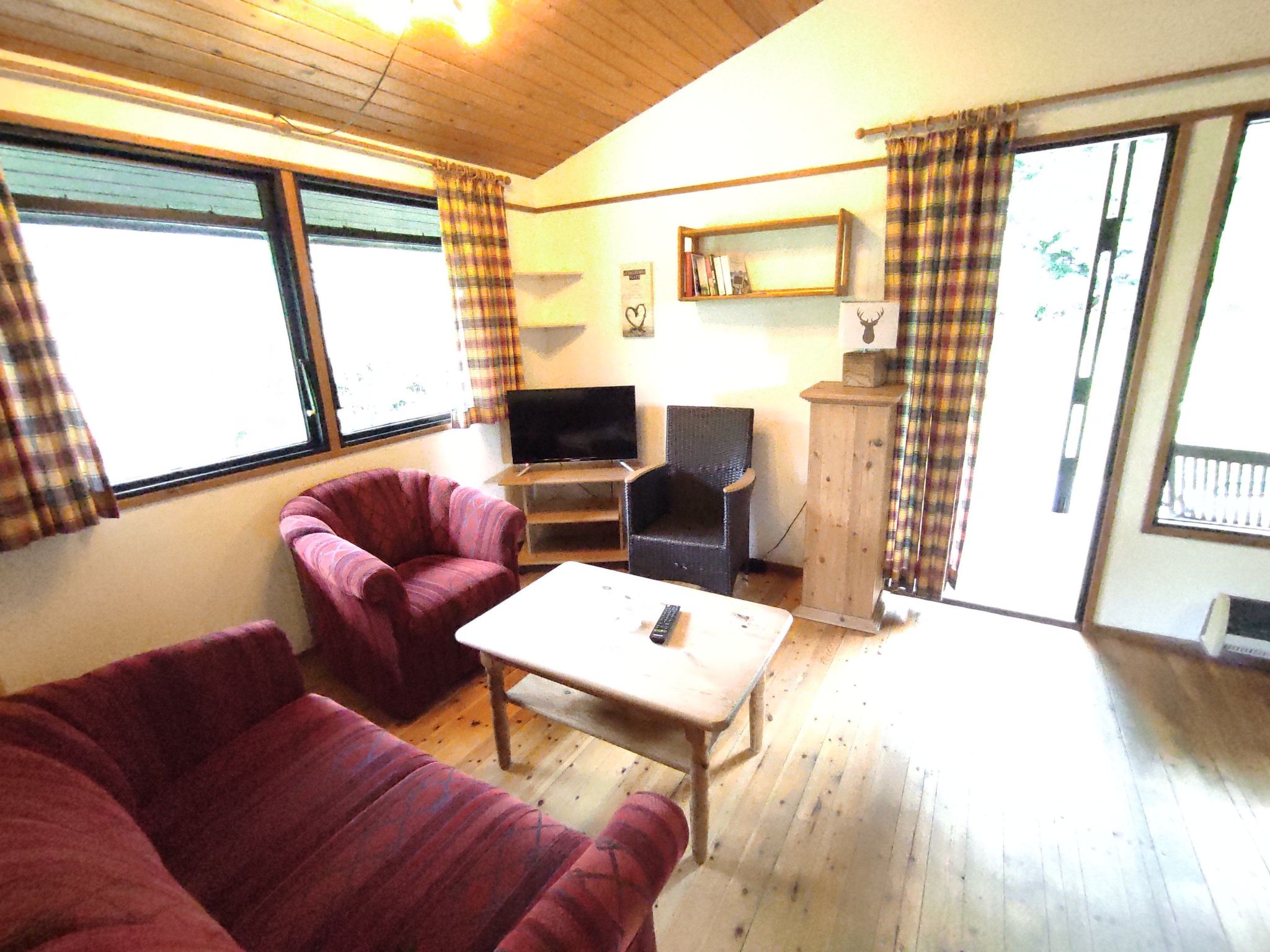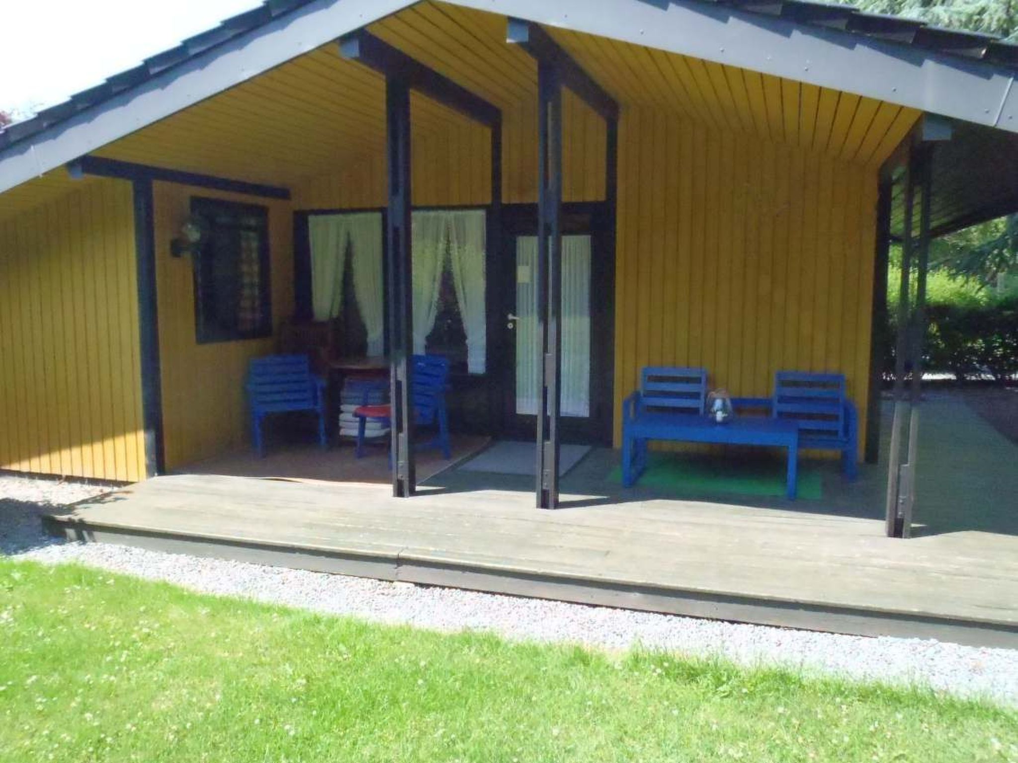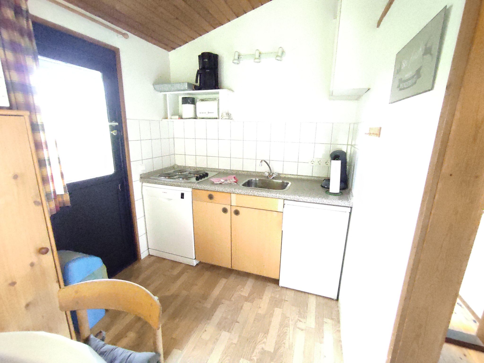 Maximaal 2 huisdieren/honden toegestaan. - Our holiday resort is located right next to the forest with lots of peace and nature. Here you can hear the calming sound of the forest, in the morning you can see rabbits and squirrels on the grounds and fallow deer can be seen from time to time in winter.- You can reach the beautiful sandy beach in just 750m or 8-10 minutes on foot, the first dog beach in approx. 900m (alternatively there is another one in approx. 1400m) - water sports are available in approx. 1600m at the water sports centre.Our "Retro Chalets" are comfortably furnished "like at mum's" and have a bedroom with cosy double beds (1.4x2.0m sleeping area) and a bedroom with children's bunk beds. A cosy living room with kitchen and a cute bathroom with shower round off your holiday realm. Each house has its own terrace and patio furniture. You can keep your dog on a lead on the terrace. We have several identical wooden houses...the only difference between them is the colour of the furniture, interior and exterior. They all have the same equipment. If you have a preference for a particular house...just ask us :)The properties have a cosy covered seating area so that you can have breakfast in peace and enjoy nature even when it rains. You also have your own garden and don't see your neighbours, or rarely, depending on the house :)Note: Electricity is charged separately according to consumption. Please take into account that depending on the season there are additional costs (in summer estimated 2-5€/day, spring/autumn 7-15€/day, winter 12€-25€/day depending on the weather and the subjective feeling of warmth).Our wooden houses and flats are basically all from the 70s.There are units with different features on our holiday complex. We have categorised them as retro, fireplace and wellness. This house you are looking at belongs to the "Retro" categoryRetro: Our houses and flats are basically all from the 70s and are furnished accordingly or as you would say... "cosy like at mum's" with corresponding beds, kitchen with dishwasher, steel hobs, separate microwave and fridge, filter coffee machine, couch in the living room and armchair with TV and TV bench, bunk bed in the children's bedroom and double bed in the parents' bedroom A functional bathroom with shower, toilet and washbasin is of course included. Our Danish wooden houses have highly efficient electric heating and boilers/flow heaters.In Kellenhusen there is a great beach, forest with wild boar enclosure, forest children's playground & large dog run. Also a sea salt swimming pool and outdoor pool, restaurants, cafes, 1 supermarket, a department store. In Grömitz (only 10-15 minutes by car/bus) there is a spa and numerous shops. In Sierksdorf there is the famous amusement park "Hansapark" (about 20 minutes away) and in Lübeck (about 40 minutes away) is the next big city with a great old town.