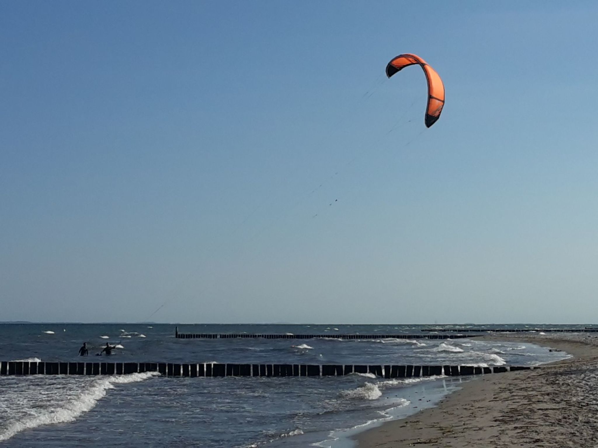 Klein, fijn strand, helaas een beetje smal. Het ligt op korte loopafstand van de parkeerplaats. Buiten het seizoen is het een prima startpunt om met uw hond te wandelen richting Pelzer Haken of terug richting Neustadt.