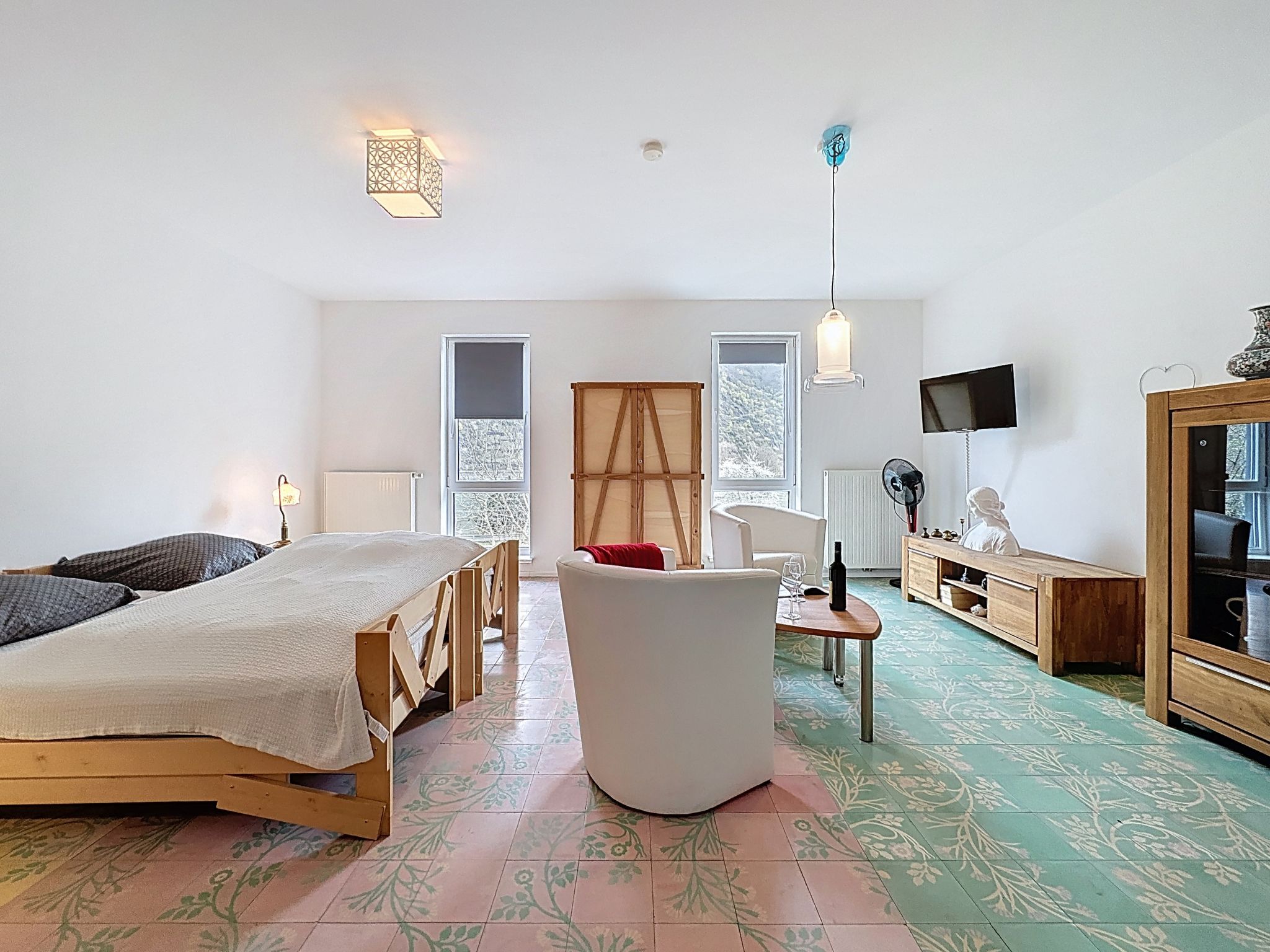 "Wohnung 4", appartement 2-kamers op de 2e verdieping. Licht, doelmatig ingericht: 2e Verdieping: 1 kamer met 1 2-pers bed (2 x 90 cm, lengte 200 cm), Kabel-TV (Flatscreen TV). Kookhoek (2-pits kookplaat, broodrooster, waterkoker, elektrische koffiemachine). Douche/WC. Verwarming. Mooi, op de rivier. Niet rokers woning. Maximaal 1 klein huisdier/hond toegestaan. Rookmelders, brandblusser.