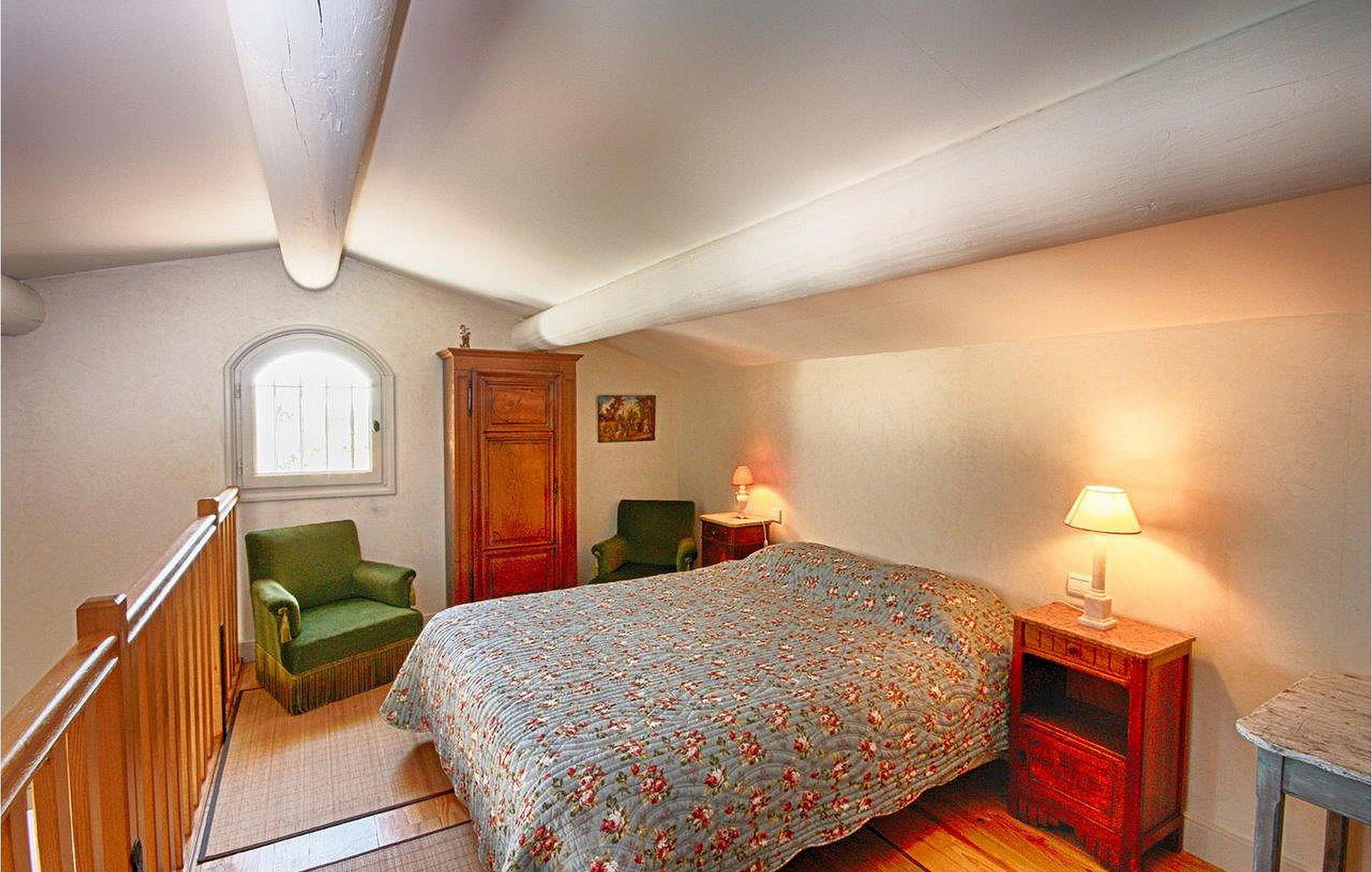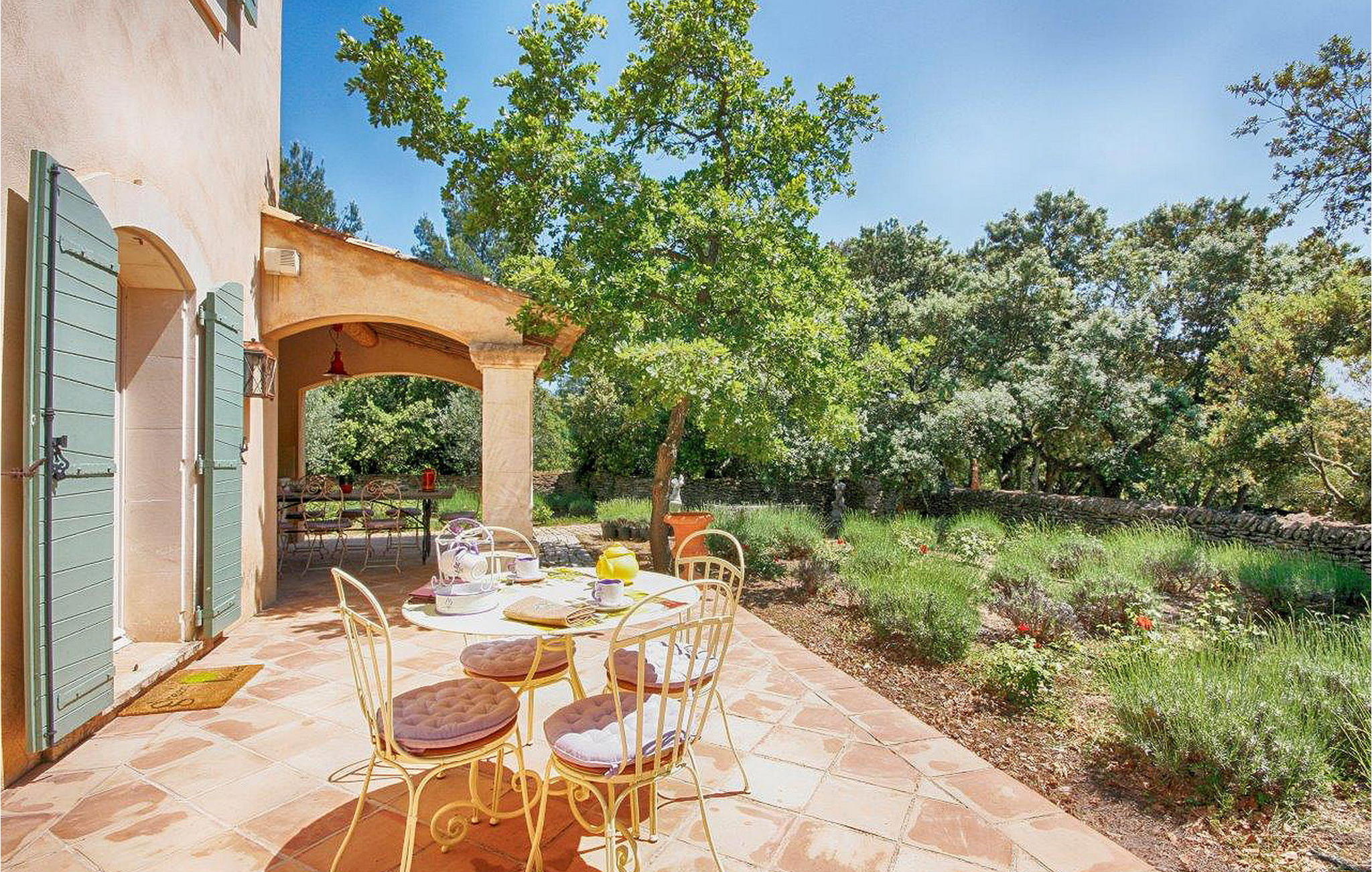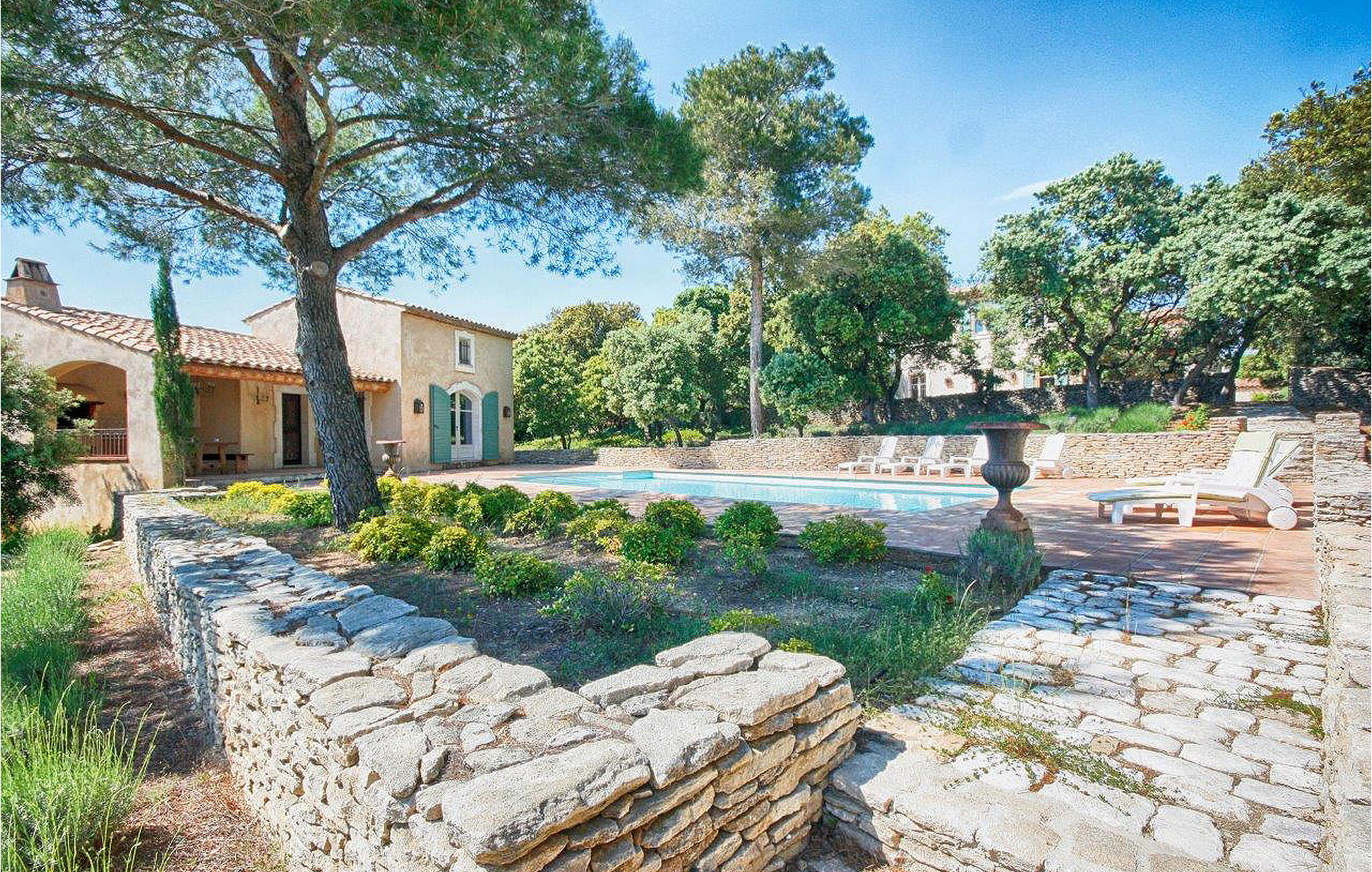 Omgeven door natuurlijke schoonheid met eiken, dennen en olijfbomen, biedt deze woning in de heuvels van Saint Antoine rust op slechts 3 km van de nabijgelegen winkels. De villa en een aparte `mazet` vormen samen het pand. De villa met airconditioning biedt een ruime begane grond met een open keuken, eethoek en woonkamer. Boven zijn er nog drie slaapkamers en een doucheruimte. De zelfstandige `Mazet` met airconditioning heeft een keuken, eet-/zitkamer en doucheruimte. Boven op de tussenverdieping is de slaapkamer. Buiten heeft het huis een overdekt terras naast de villa en nog een terras. Het verwarmde privézwembad (12 m x 5 m, diepte 1,2 m tot 1,9 m). De woning is gelegen in de heuvels van Saint Antoine in Isle-sur-la Sorgue. De dichtstbijzijnde winkels liggen op ca. 3 km afstand. De buurt is erg rustig. Je kunt gemakkelijk wandelen of fietsen in de heuvels. Isle-sur-la-Sorgue, ook wel het `Provençaalse Venetië` genoemd omdat de verschillende rivieren het dorp doorkruisen, staat ook bekend om zijn antiek en zijn Provençaalse zondagsmarkt. Vlakbij kun je het dorp Fontaine de Vaucluse verkennen en het Luberon-gebergte met zijn charmante en pittoreske dorpjes: Gordes, Roussillon, Bonnieux, Lacoste.