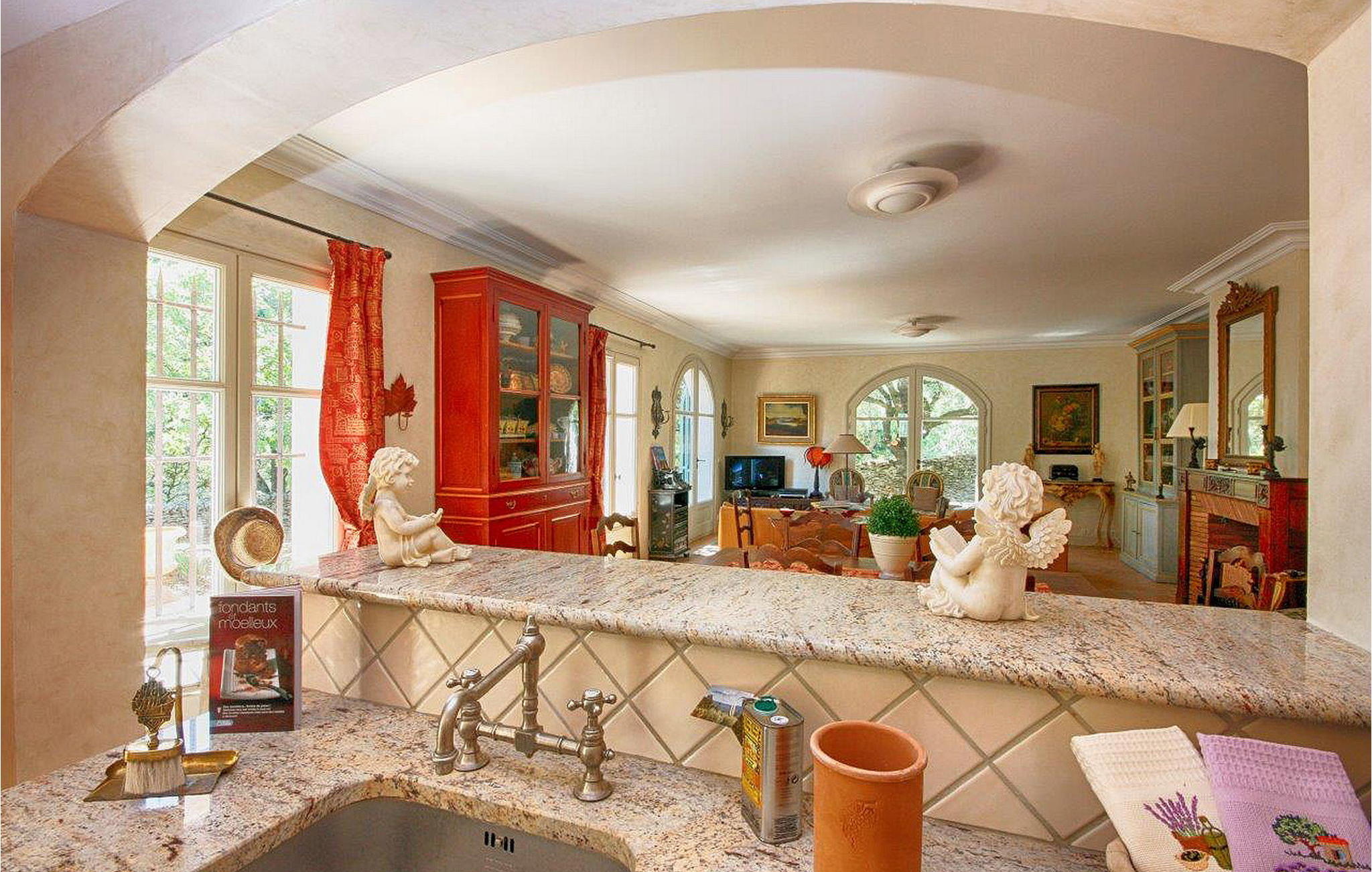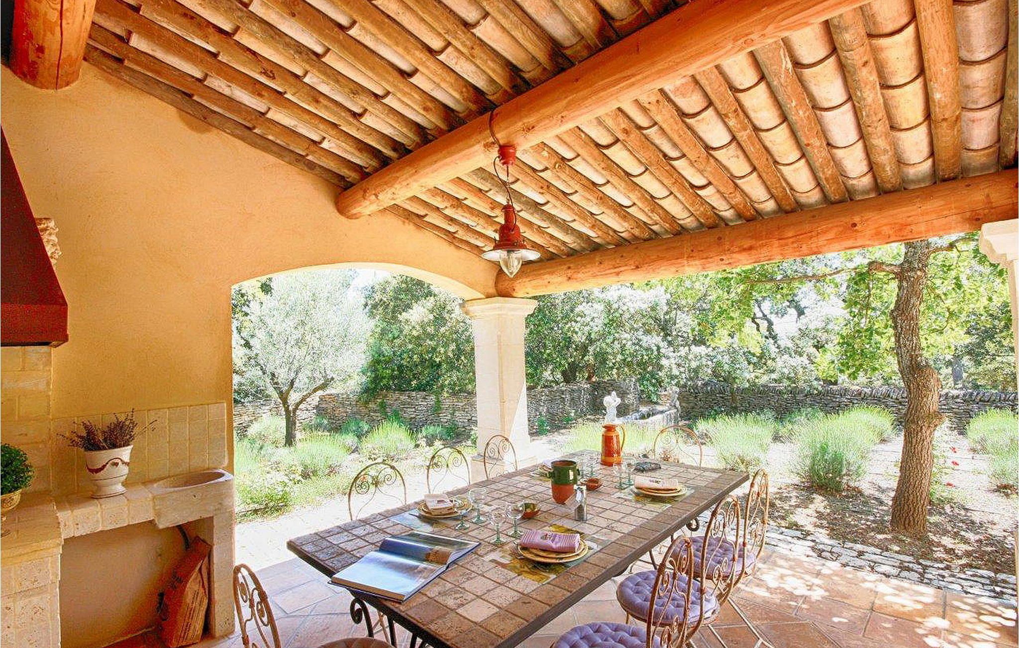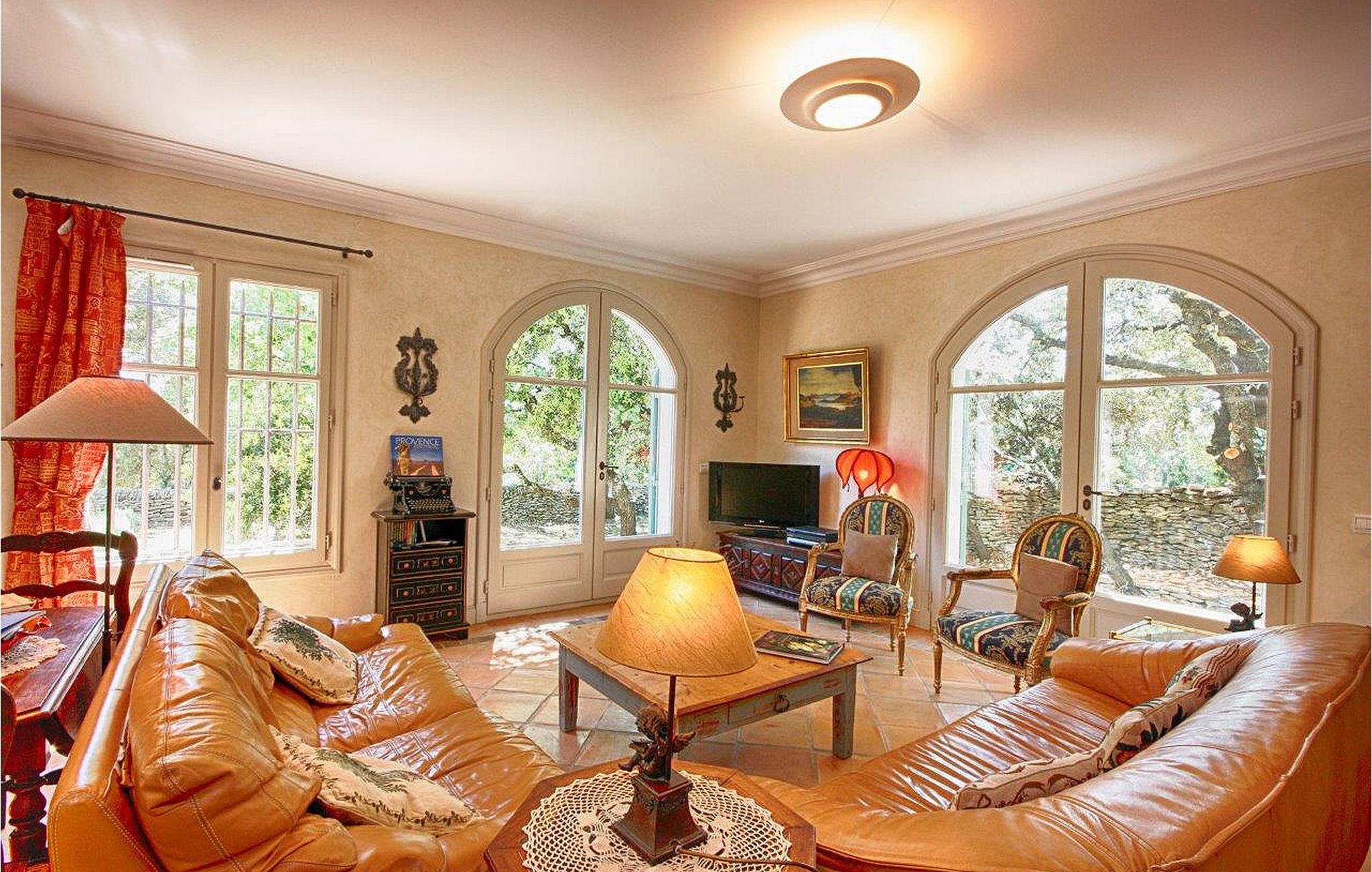 Omgeven door natuurlijke schoonheid met eiken, dennen en olijfbomen, biedt deze woning in de heuvels van Saint Antoine rust op slechts 3 km van de nabijgelegen winkels. De villa en een aparte `mazet` vormen samen het pand. De villa met airconditioning biedt een ruime begane grond met een open keuken, eethoek en woonkamer. Boven zijn er nog drie slaapkamers en een doucheruimte. De zelfstandige `Mazet` met airconditioning heeft een keuken, eet-/zitkamer en doucheruimte. Boven op de tussenverdieping is de slaapkamer. Buiten heeft het huis een overdekt terras naast de villa en nog een terras. Het verwarmde privézwembad (12 m x 5 m, diepte 1,2 m tot 1,9 m). De woning is gelegen in de heuvels van Saint Antoine in Isle-sur-la Sorgue. De dichtstbijzijnde winkels liggen op ca. 3 km afstand. De buurt is erg rustig. Je kunt gemakkelijk wandelen of fietsen in de heuvels. Isle-sur-la-Sorgue, ook wel het `Provençaalse Venetië` genoemd omdat de verschillende rivieren het dorp doorkruisen, staat ook bekend om zijn antiek en zijn Provençaalse zondagsmarkt. Vlakbij kun je het dorp Fontaine de Vaucluse verkennen en het Luberon-gebergte met zijn charmante en pittoreske dorpjes: Gordes, Roussillon, Bonnieux, Lacoste.