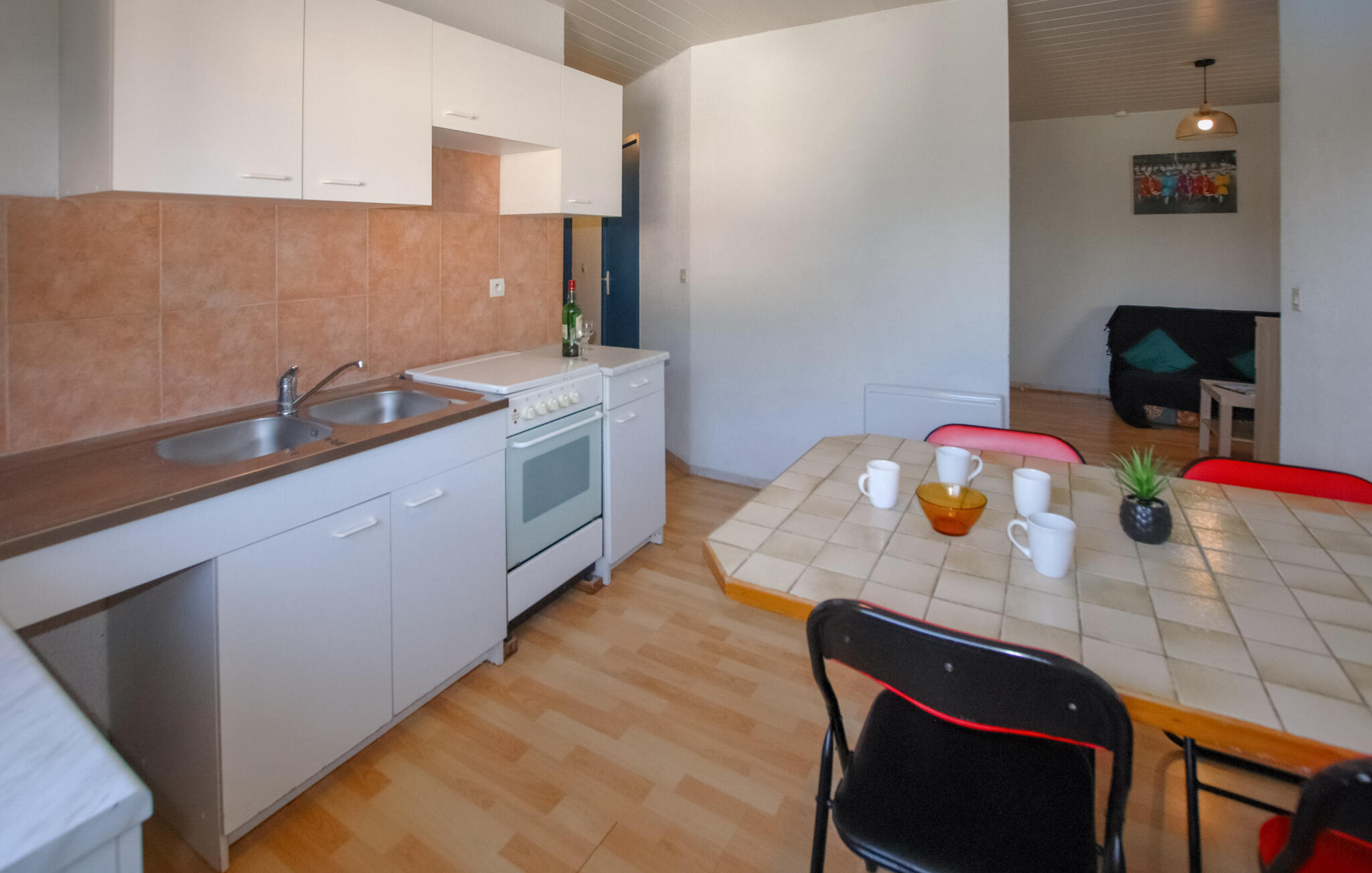 Slaapkamer(1x 2-persoonsbed(den)), Slaapkamer(1x 1-persoonsbed(den)), Slaapkamer(1x Stapelbed), Woonkamer(1x Opklapbed(den) of matras(sen)), Eetkeuken, Toilet, Badkamer, Terras of vergelijkbaar