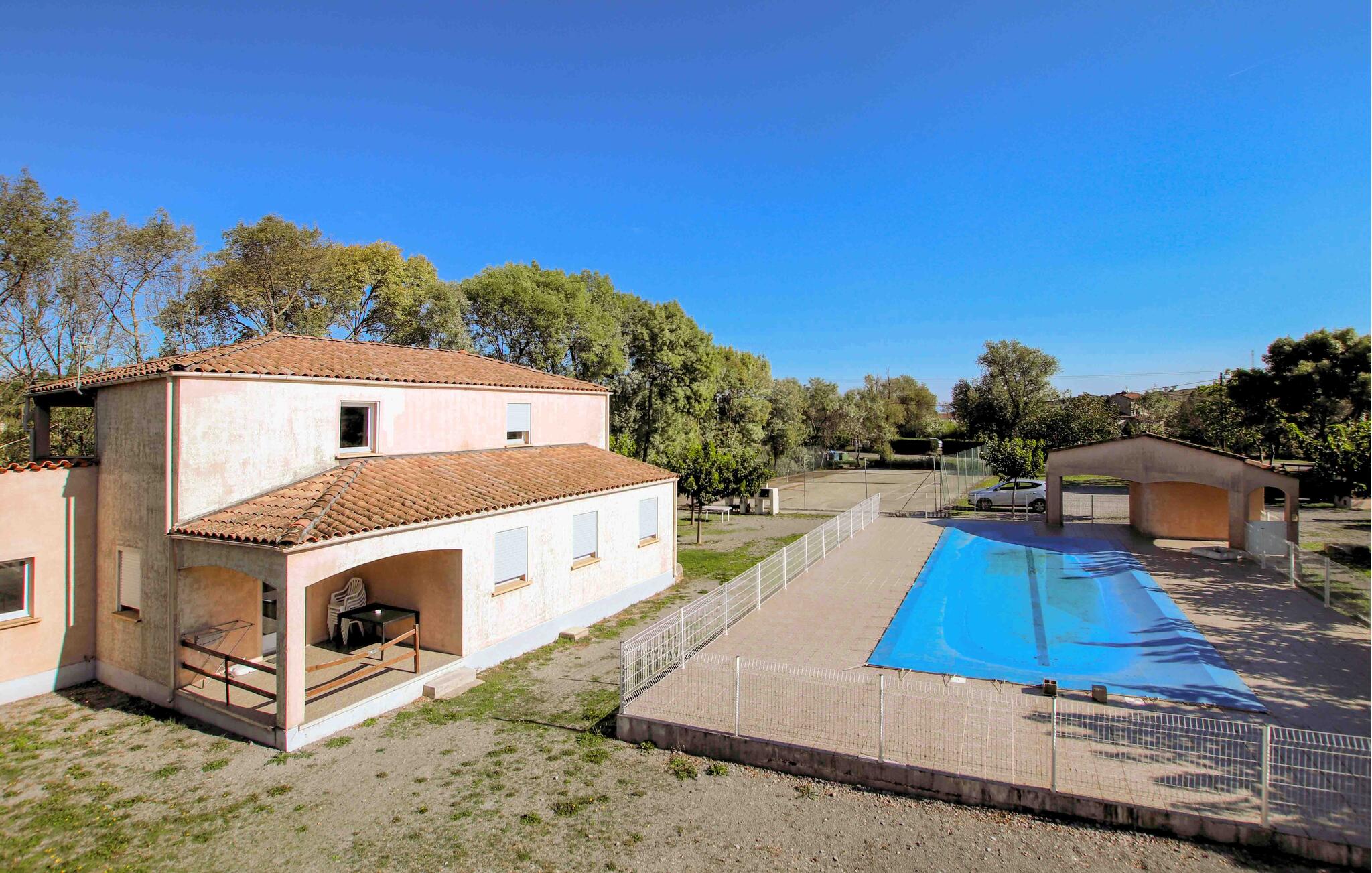 Breng een vakantie door dicht bij de natuur in dit vakantiehuis met gedeeld zwembad en tennisbaan.