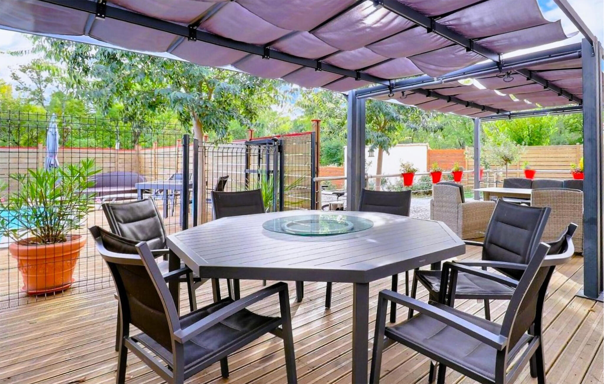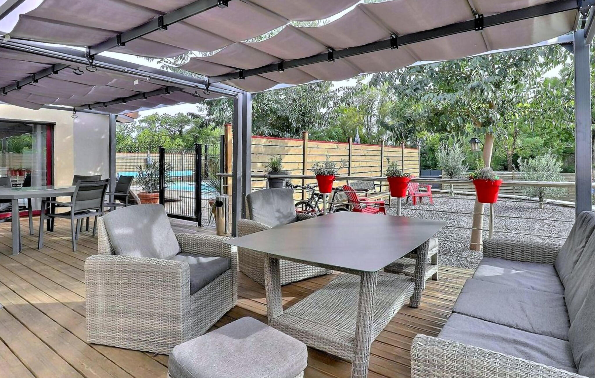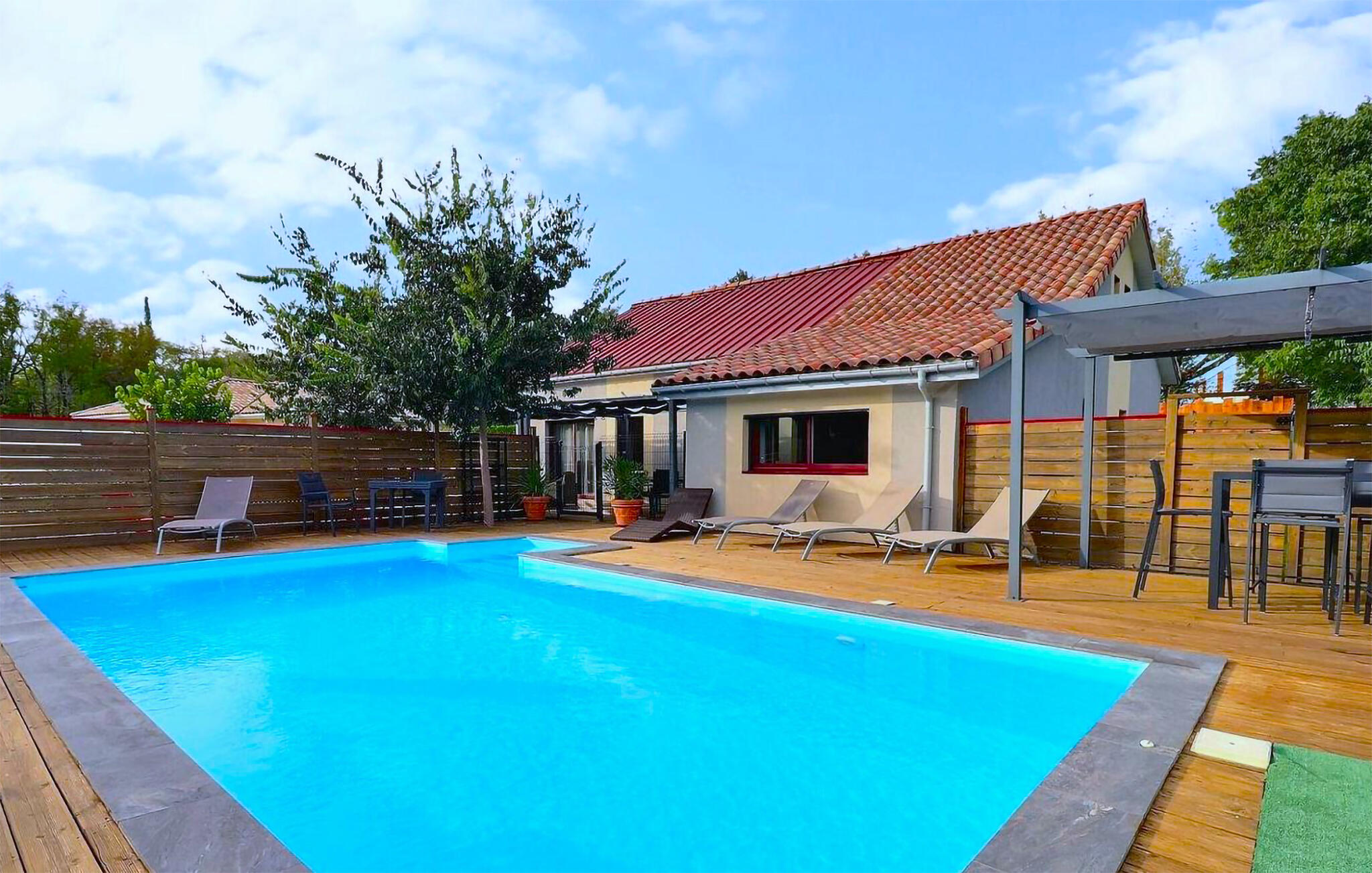 Energiebron: zonne-energieLucht- of grondwarmtepompRookalarmEnergiebesparende verwarmingAirconditioningKinderbeveiliging poolruimteOmheind zwembadBuitendoucheGasbarbecueZwembad: april eind oktoberVerwarmd buitenzwembadOmheind grondstuk. Hoogte : 200cm