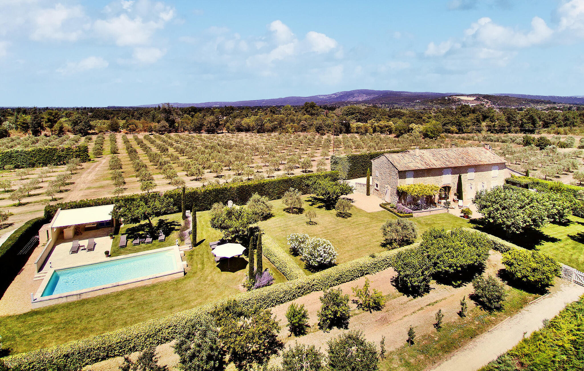 Ontdek de charme van deze Provençaalse boerderij in Robion, genesteld aan de rand van de Luberon. Onlangs gerestaureerd, biedt het een idyllisch vakantieverblijf omringd door 10 hectare olijfbomen, op slechts een paar minuten van het dorp Robion. De boerderij is zorgvuldig ontworpen voor een aangename vakantie en heeft gezellige leefruimtes, een goed onderhouden tuin en charmante Provençaalse details. De begane grond heeft een ruime woonkamer met entertainmentfaciliteiten, een volledig uitgeruste keuken en een winterse woonkamer met een open haard. De linkervleugel van de eerste verdieping herbergt slaapkamers met airconditioning, tweepersoonsbedden en een eigen badkamer, terwijl de rechtervleugel veelzijdige slaapmogelijkheden biedt. Buiten is er een weelderig gazon, een zwembad met een zwembad van 11 x 5 meter en smeedijzeren meubilair. Dit pand ligt op 1,5 km van het centrum van het dorp Robion aan de voet van het Luberon-gebergte. Robion heeft ongeveer 4500 inwoners en maakt deel uit van het Nationaal Park van de Luberon. Hier vind je alle plaatselijke winkels en een keur aan restaurants. Robion is een uitstekend uitgangspunt voor uitstapjes naar de mooiste plaatsen in de regio zoals Gordes, L`Isle sur la Sorgue, Oppède en Saint Remy de Provence. Dit vakantieparadijs belooft een prachtige ervaring en zorgt voor blijvende herinneringen in het hart van de Provence.