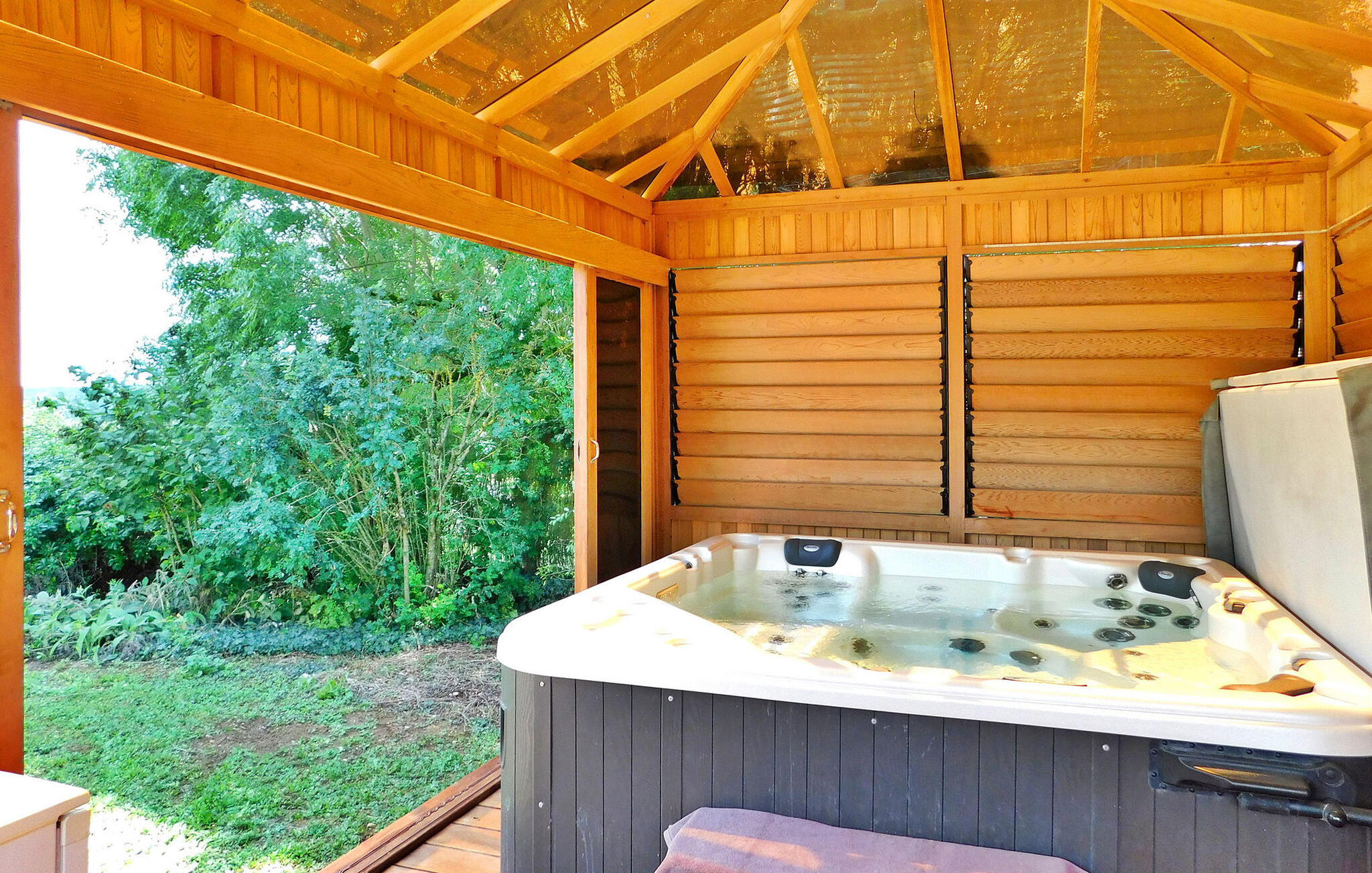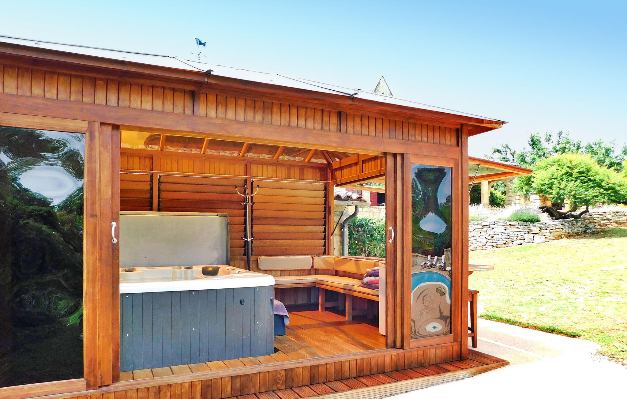 Dit ruime vakantiehuis ligt op het platteland van de Dordogne en nodigt gasten uit om te ontspannen in een schilderachtige omgeving. Het pand heeft een verwarmd zwembad, een spa en een charmante omgeving, tegenover het hoofdhuis (voor 6 personen) en een onafhankelijk bijgebouw voor 4 gasten. Het hoofdhuis verwelkomt je met een goed uitgeruste keuken, een charmante eethoek en een gezellige woonkamer met open haard. Op de begane grond is er een slaapkamer met toegang tot het terras, terwijl er boven een tweede slaapkamer is, een kamer voor vier personen met airconditioning en een eigen badkamer. Het onafhankelijke bijgebouw ligt niet ver van het hoofdgebouw en heeft een ruime woonkamer en een kleine kitchenette, wat extra comfort en privacy biedt. Buiten omringt een groot park het pand en biedt een rustig uitzicht op het platteland. Geniet van het overdekte terras met zit- en liggedeelte, een barbecueplaats en een spa ontworpen voor ontspanning. Het verwarmde privézwembad (11 x 5 meter) heeft een elektrische veiligheidsafdekking en wordt aangevuld met een terras met ligstoelen en parasols voor ultieme ontspanning. Dompel jezelf onder in de rust van het platteland, geniet van momenten van vrede en geniet van het comfort van dit charmante vakantiehuis ? een perfect toevluchtsoord voor gezinnen of groepen op zoek naar ontspanning en comfort te midden van de schoonheid van de Dordogne. Het vakantiehuis is omgeven door groen. Het dorp Daglan ligt op minder dan 3 km (plaatselijke winkels en restaurants).