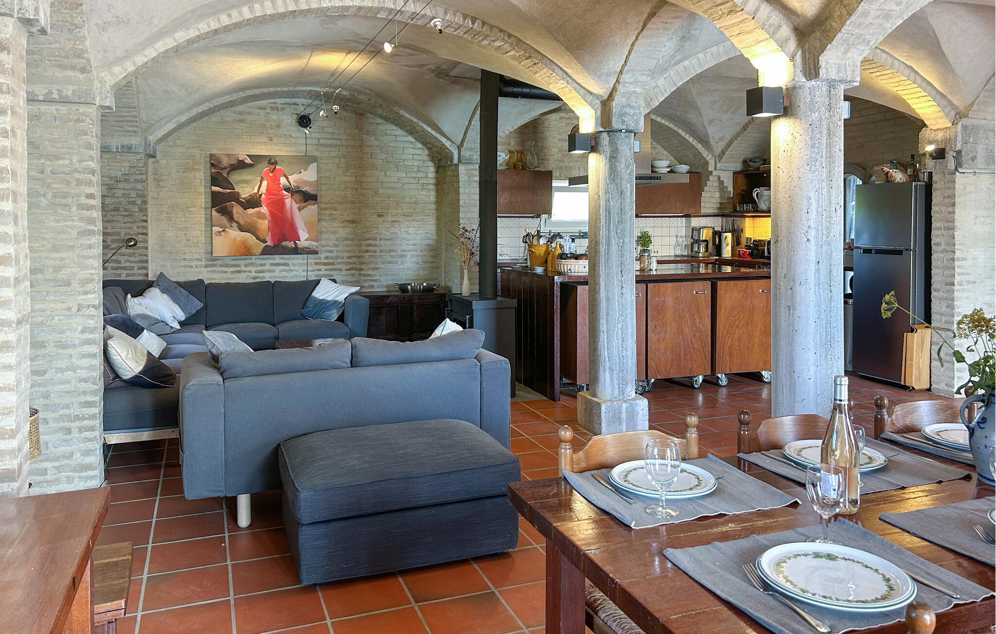 Dit prachtig gelegen huis verwelkomt je met dikke stenen muren, gewelfde plafonds en warme kleuren die gezelligheid en rustiek harmonieus combineren. Leun achterover op de comfortabele bank en luister naar muziek of geniet van een leuke spelletjesavond, terwijl de houtkachel voor gezellige warmte zorgt op koelere dagen. Kook samen heerlijke maaltijden in de moderne keuken en geniet ervan in het sfeervolle licht van de grote ramen.