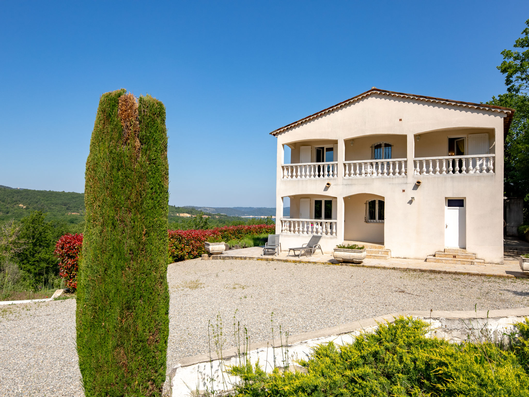 Das Appartementhaus liegt am Hang und bietet von einem der zwei Balkone einen schönen Bick auf den See. Die Wohnung ist sauber und zweckmäßig eingerichtet. Die Dekoration könnte etwas moderner sein... Bauduen ist ein wunderschöner kleiner Ort, in dem man alles Notwendige bekommt.Dieser Teil des Sees ist ruhig und nicht so überlaufen. Man benötigt allerdings stets das Auto, da der Weg hoch zum Haus recht steil ist und es nur einen Trampelpfad entlang des Sees bis nach Bausduen gibt.