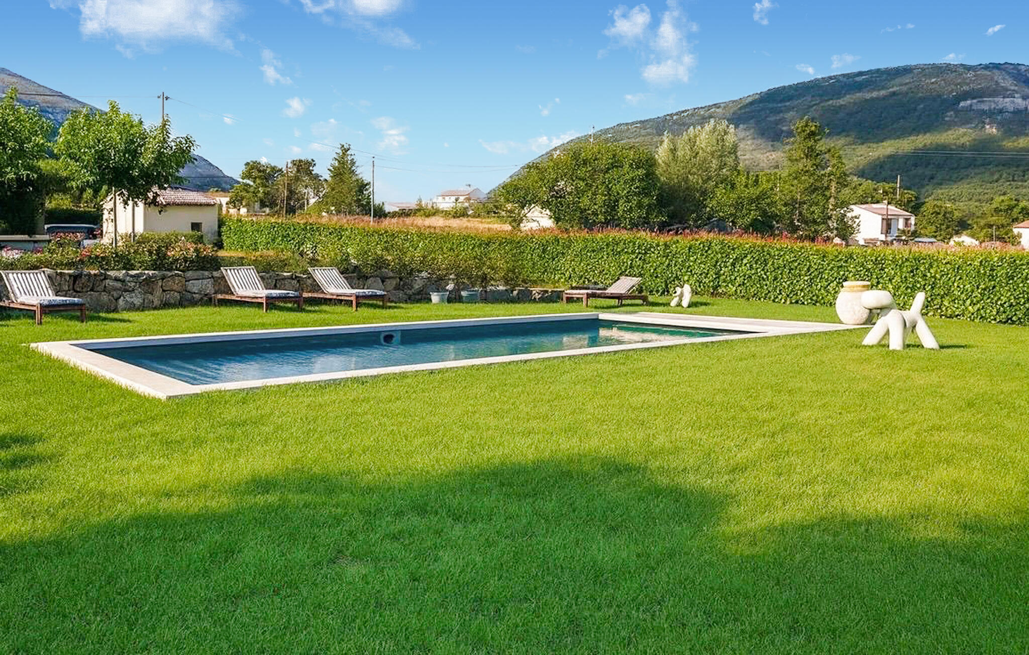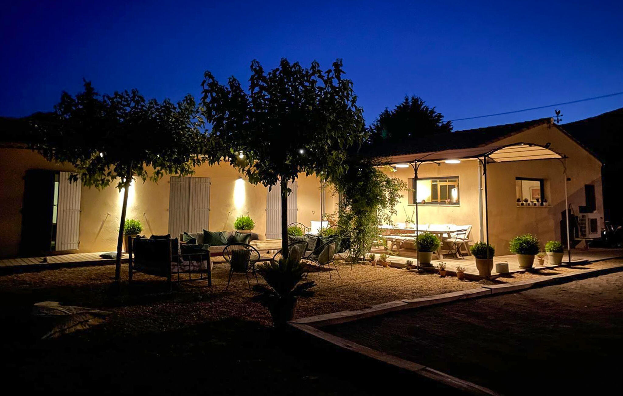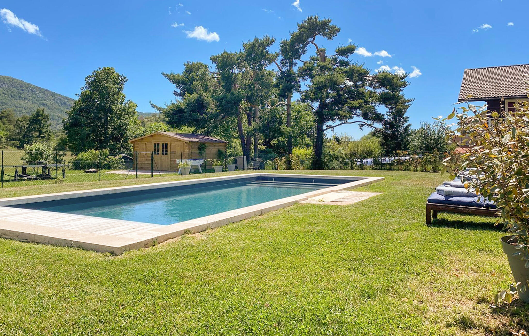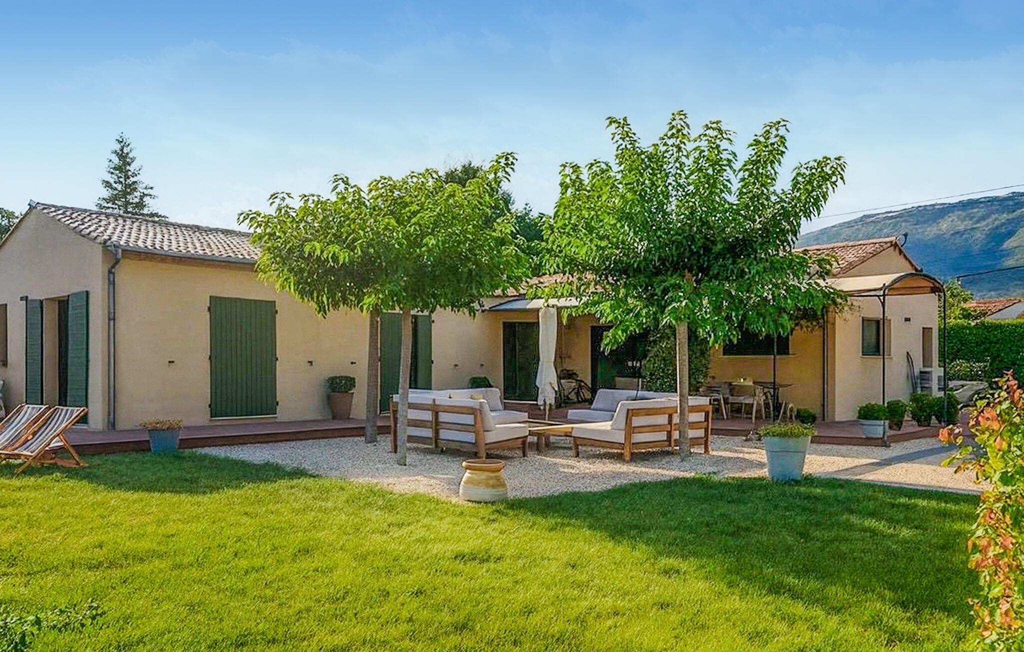 Buiten wacht een ruime tuin op je, waar je kunt genieten van het Provençaalse klimaat tijdens het ontbijt en gezellige barbecues in de buitenlucht. Verfris jezelf in het prachtige zwembad, doe nieuwe energie op op de comfortabele ligstoelen en klets bij in de romantische buitenlounge bij zonsondergang.