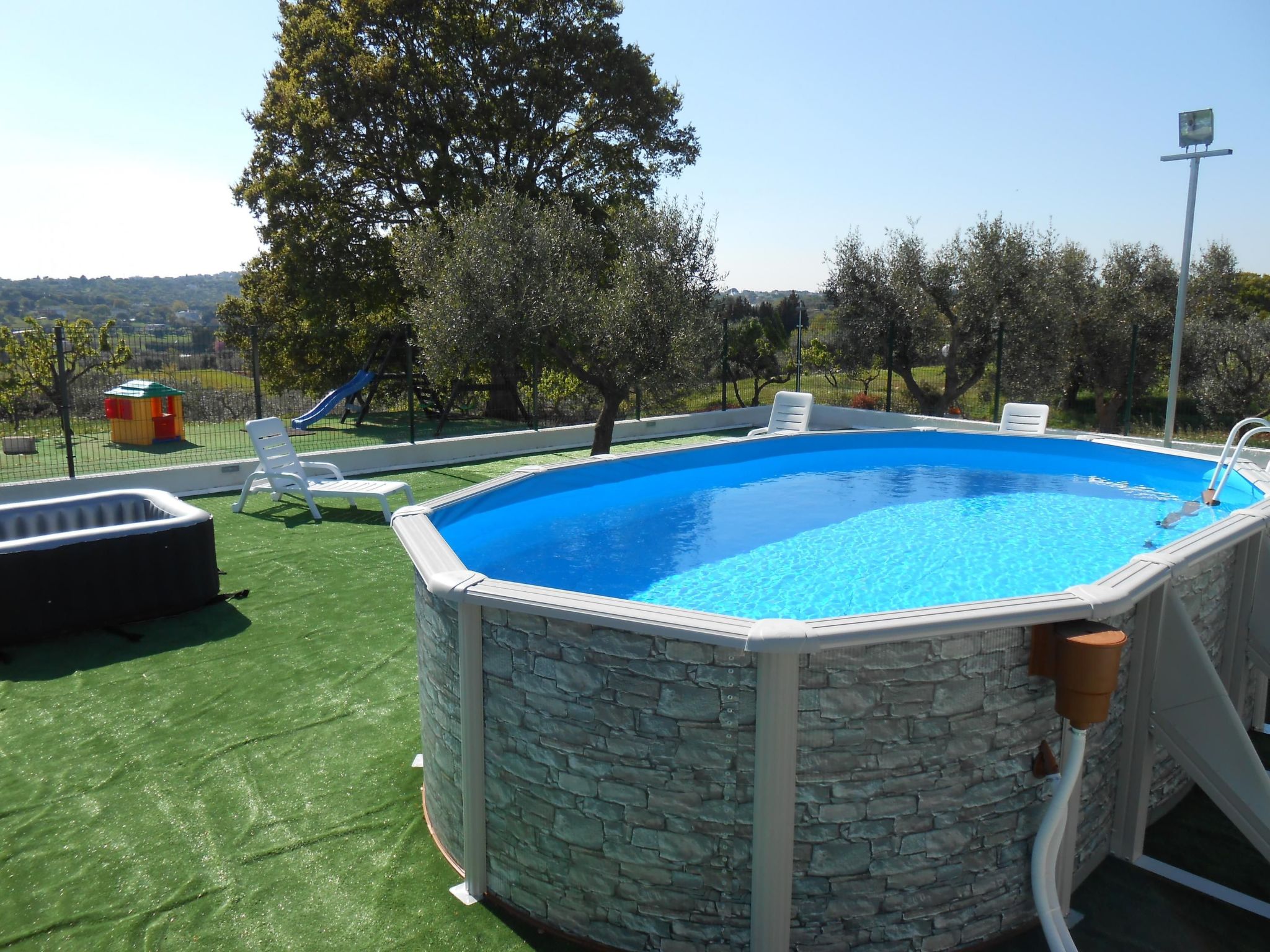 The “Piccola Masseria” is a characteristic and attractive rural house just restored, built in the 1950s at the top of a hill in a village Casalini of Cisternino. The construction is surrounded by typical olive trees, majestic oaks and graceful fruit trees that preserve and recall the genuine charm of the peasant culture. The Masseria consists of a suite and six differently arranged mini-apartments,apartments that preserve and protect the architectural style that the Masters "trullari" have left us as legacy. The objects and furnishings in all apartments combine the comfort and the needs of the today’s life with the naturalness of rustic life. It is the simplicity and authenticity of stone so widely used in this southern corner of “MURGIA APULIA” (for example Trulli, dry stone-walls and so on) that characterizes the entire panorama and the beautiful. Therefore, during the stays, one shouldn’t miss excursions to Alberobello known as the capital of the Trulli, to Ostuni “La Città Bianca” with its entirely white old centre, to Polignano a Mare with its old town perched on a cliff, to Martina Franca its baroque art and finally to the karst caves of Castellana Grotte. For visitors who plan to stay some more days, not far away there are Castel del Monte, Matera with its famous Sassi, Lecce the capital of baroque,Trani and Bari respectively known especially for the Romanesque Cathedral and the Basilica Pontificia of San Nicola. The resort "La Piccola Masseria" consists of a suite and six mini-apartments (one is adjusted for the disabled); they have bathroom with shower, fully equipped kitchen, air conditioners and heaters, tv lcd, wireless internet connection, washing machine, bedclothes, strongbox. Each apartment has an equipped and independent entrance with a lovely and pretty garden opposite adorned with wildflowers with table, chairs and umbrella. The apartments are combined with colours of the Rainbow and reflect their vivacity but above all their naturalness. IT074005B400021509