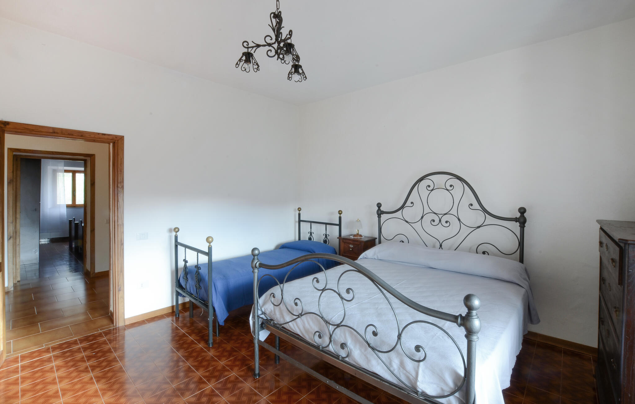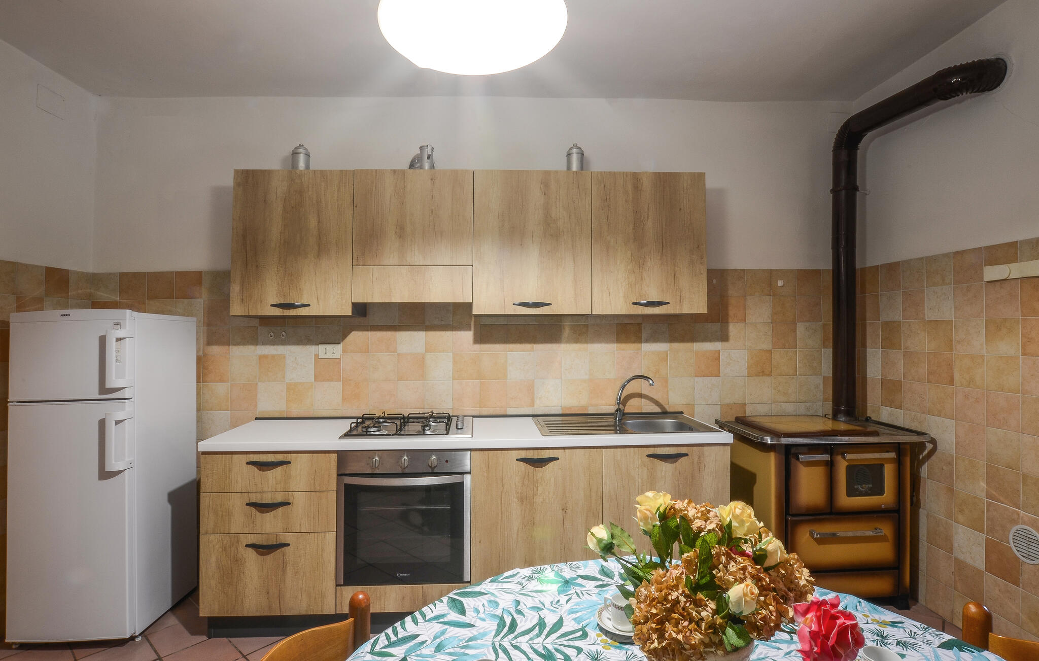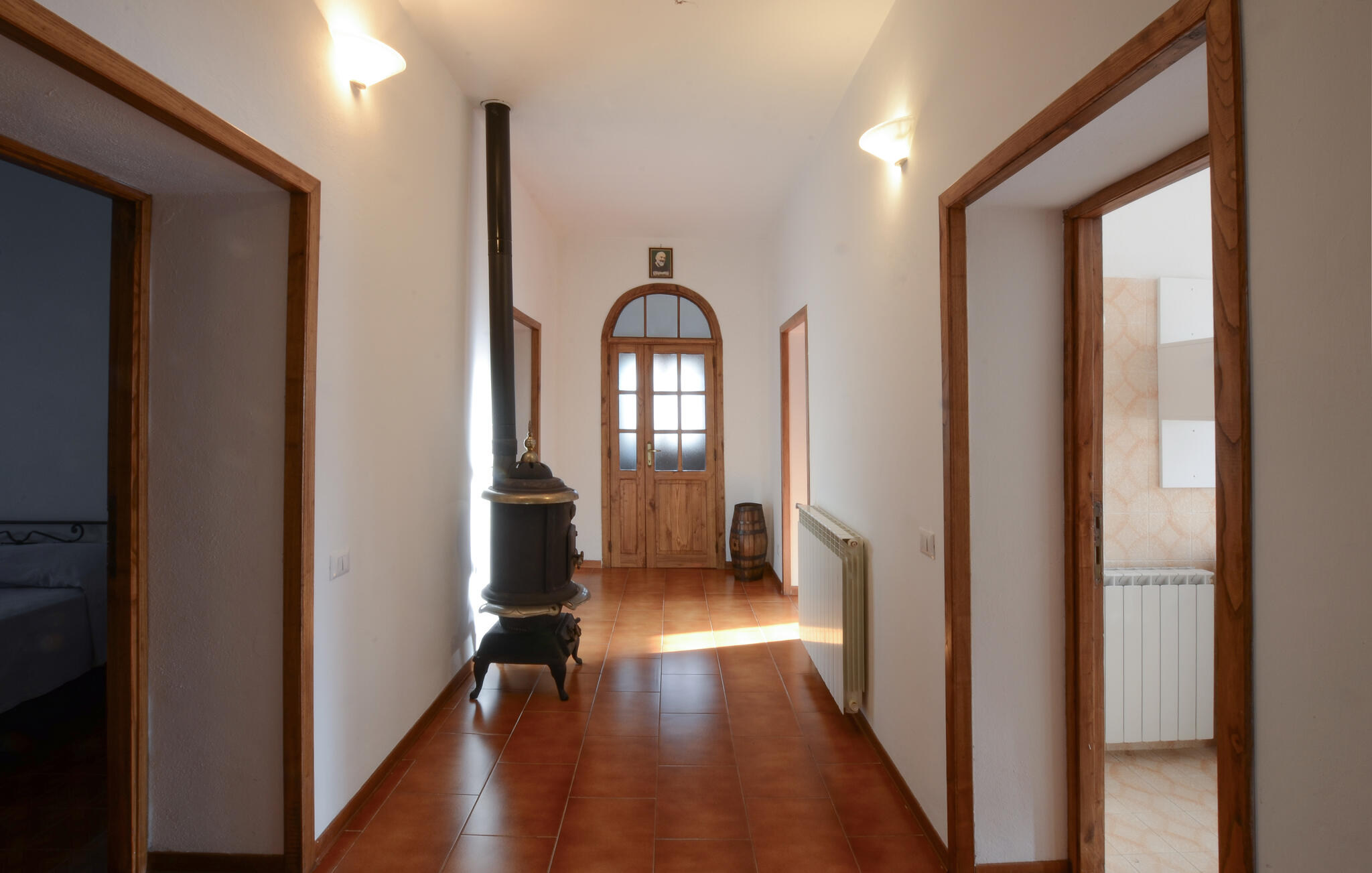 Stap binnen en geniet van de eenvoudige, authentieke sfeer van dit huis. De woonkamer verwelkomt je met klassieke banken, warm houten meubilair en een opvallende open haard die de kamer karakter geeft. Maak het jezelf gemakkelijk met een avond voor de tv of gezellig aan de eettafel. De aparte keuken met rustieke tegels, houten kasten en ronde tafel biedt je voldoende ruimte om Italiaanse specialiteiten te bereiden. Open de ramen en laat de milde Toscaanse lucht binnen terwijl je samen kookt en geniet.