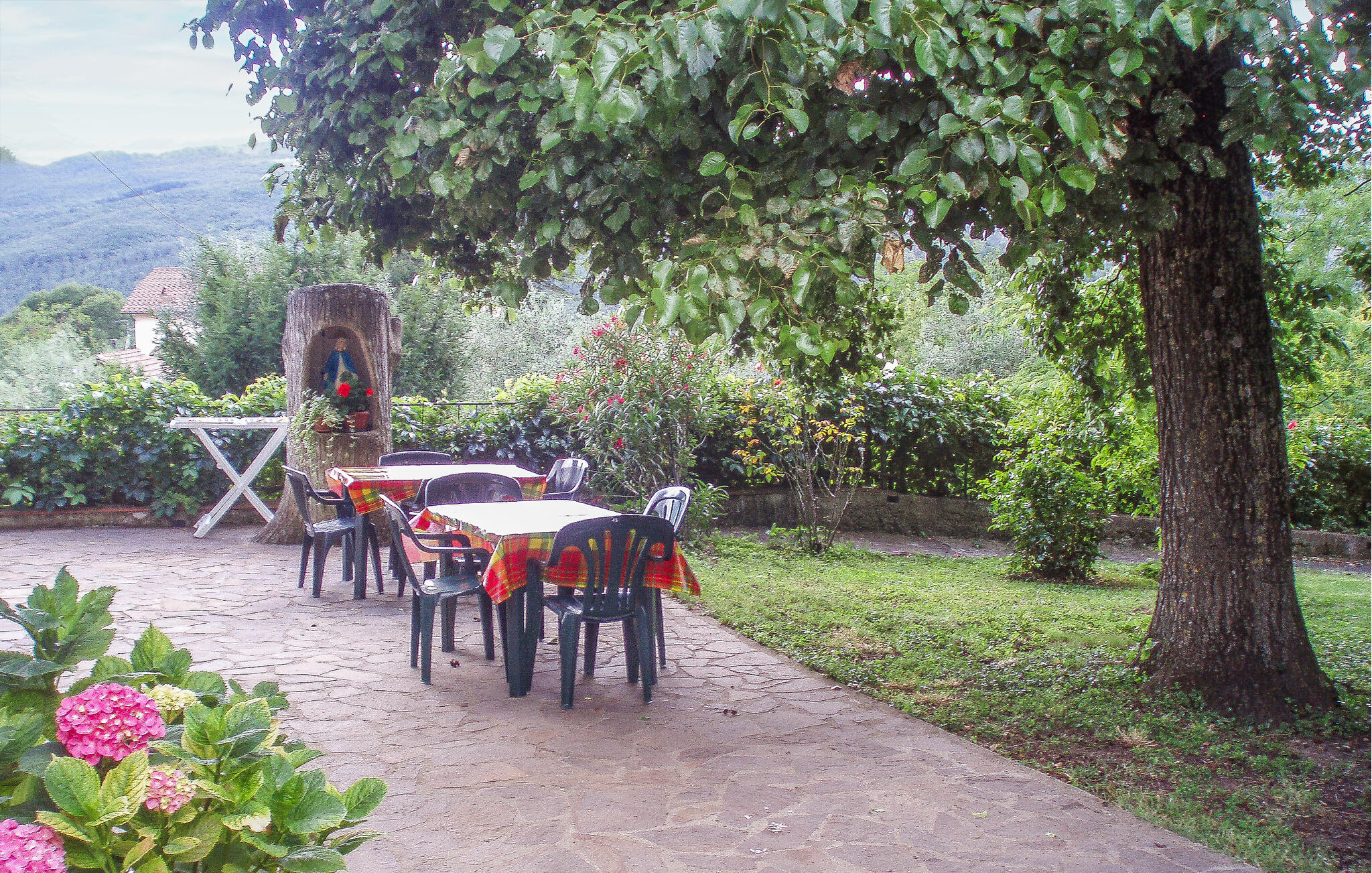 Ga naar buiten in de ruime tuin, die wordt omringd door planten en bomen. Neem een duik in het privézwembad en ontspan daarna op een van de ligstoelen onder een parasol. Dek de tafel op het terras onder de grote boom en breng lange avonden buiten door. Gebruik de gemetselde barbecue voor een gezamenlijke maaltijd en geniet van het uitzicht op de glooiende heuvels in de omgeving.