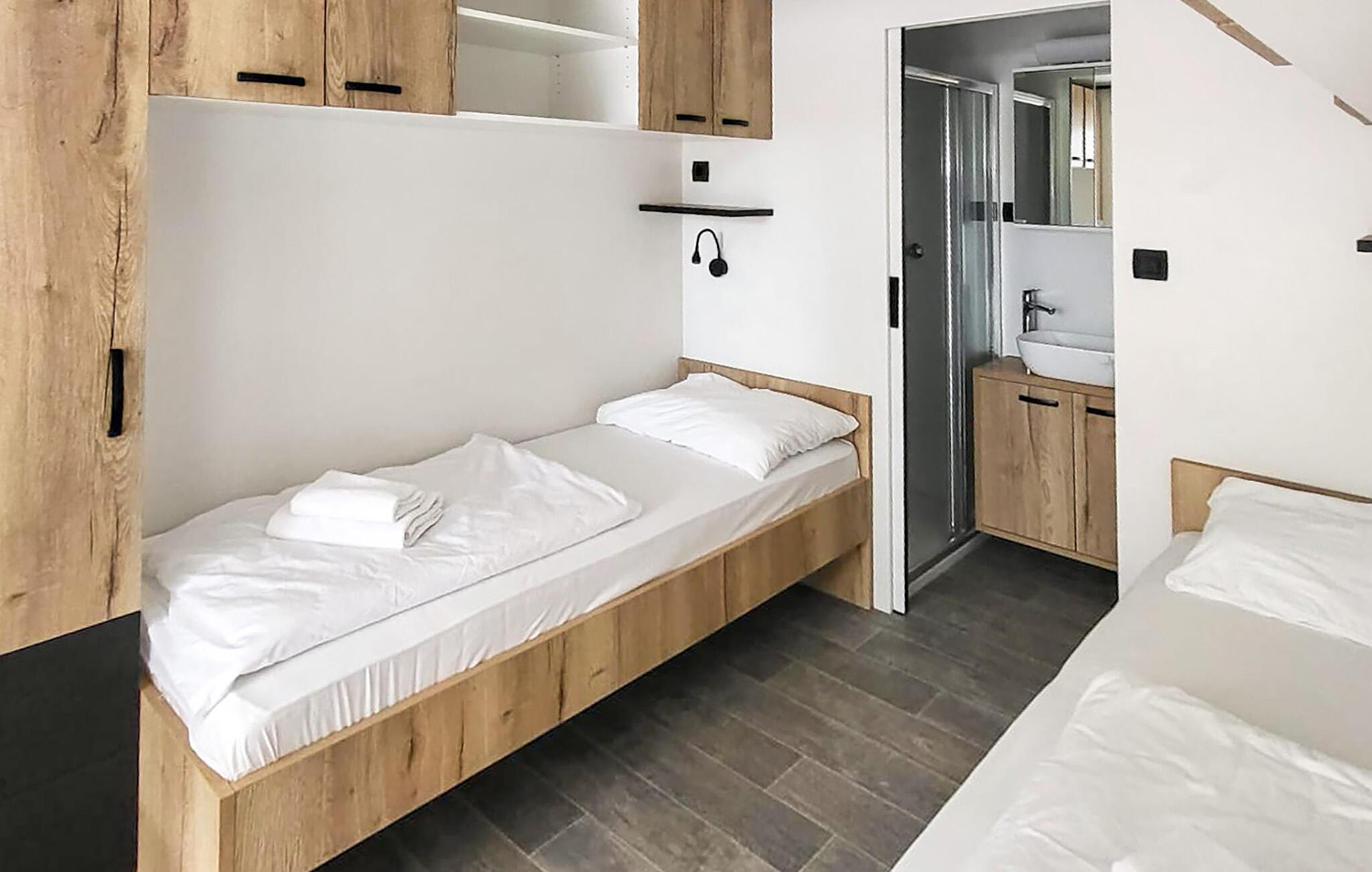 Slaapkamer(1x 2-persoonsbed(den)), Slaapkamer(2x 1-persoonsbed(den)), Woonkamer met open keuken(1x Opklapbed(den) of matras(sen)), Badkamer(Toilet: warm en koud water, Douche), Badkamer(Toilet: warm en koud water, Douche), Terras of vergelijkbaar(Overdekt terras)Licentienummer