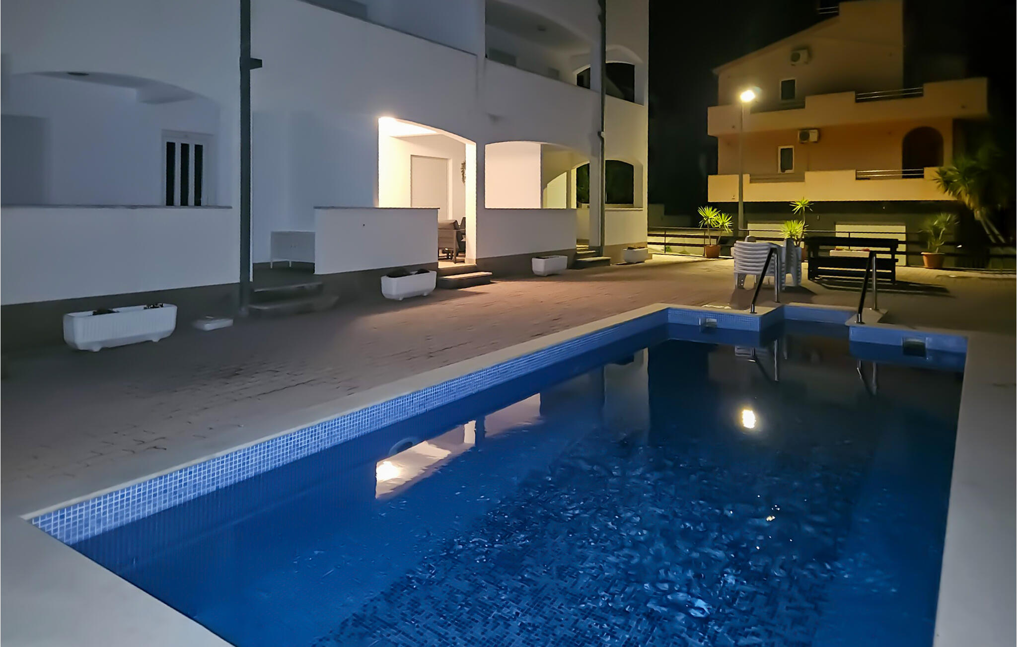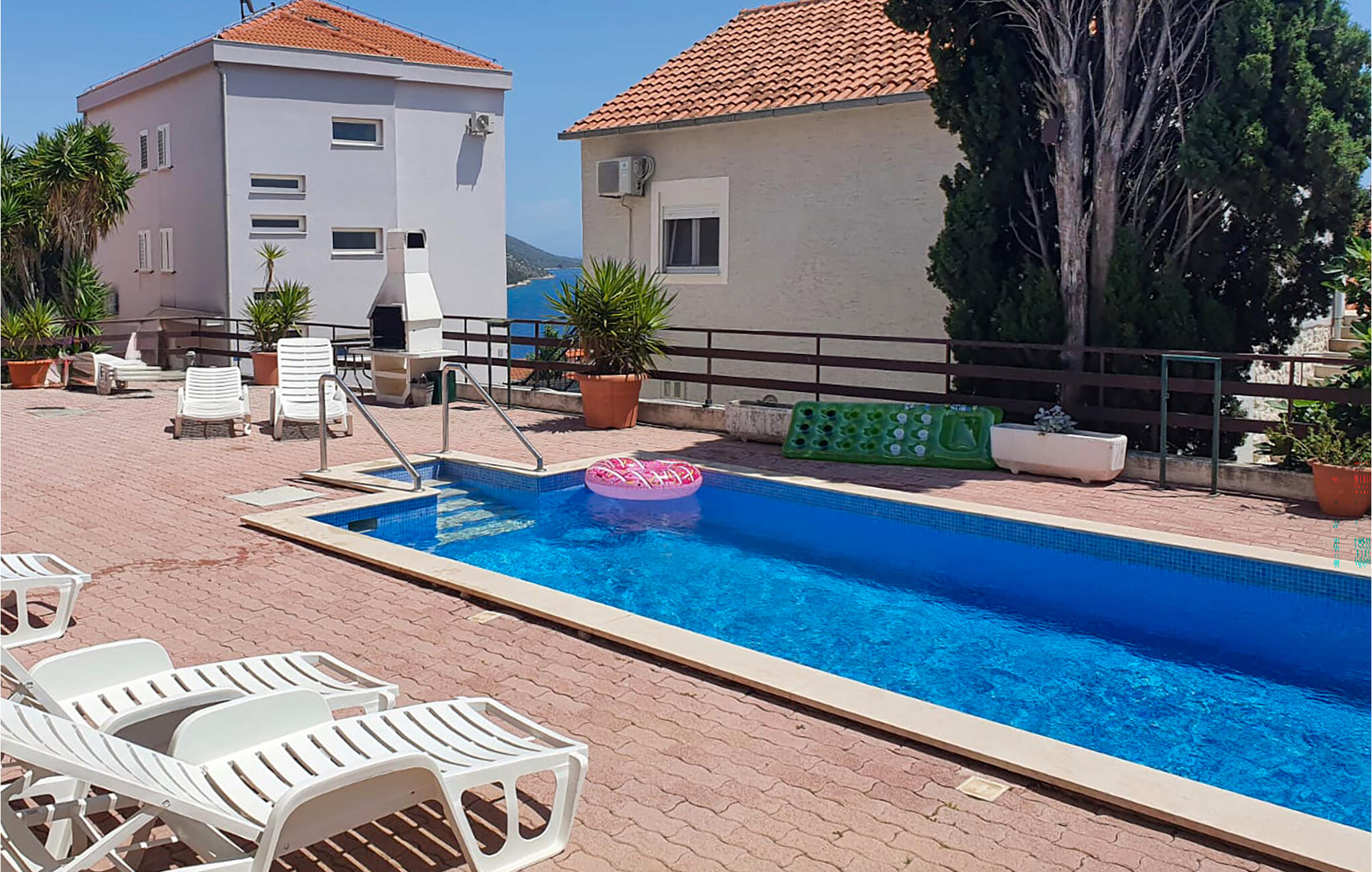 Je terras wacht op je met een betoverend uitzicht op zee, waar je `s ochtends van kunt genieten bij het ontbijt of `s avonds met een glas wijn. Verfris jezelf in het gemeenschappelijke zwembad, doe nieuwe energie op in de ligstoel en bereid een heerlijk diner op de barbecue.