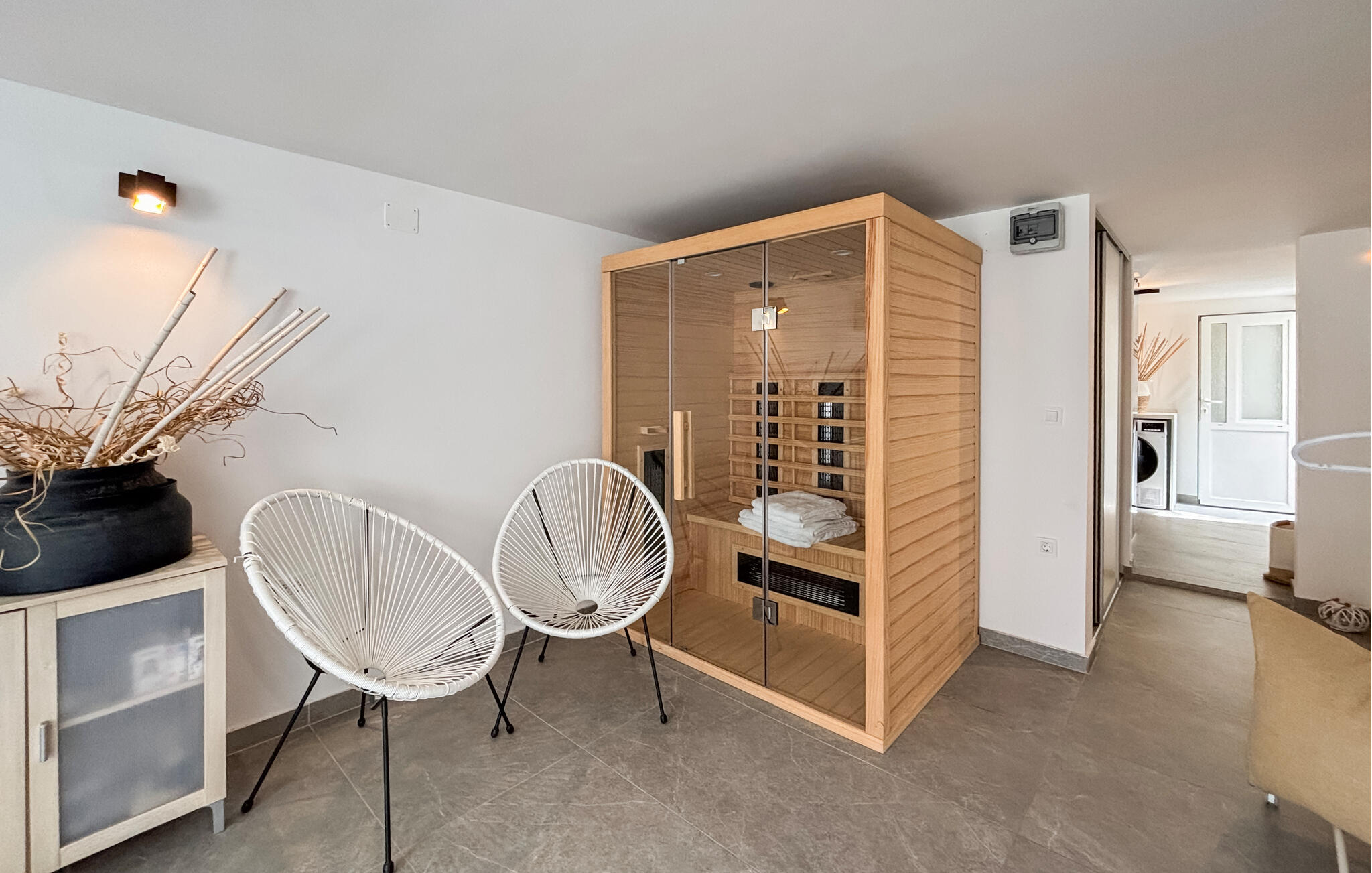 Modern design, lichte kamers en veel comfort creëren een ontspannen feel-good sfeer voor je vakantie. De open woonkamer nodigt uit tot gezelligheid, terwijl de stijlvolle keuken goed is uitgerust. Een whirlpool en sauna zorgen voor extra ontspanning. Een extra slaapkamer in de kelder is ontworpen als een aparte studio, ideaal om je terug te trekken of te werken.
