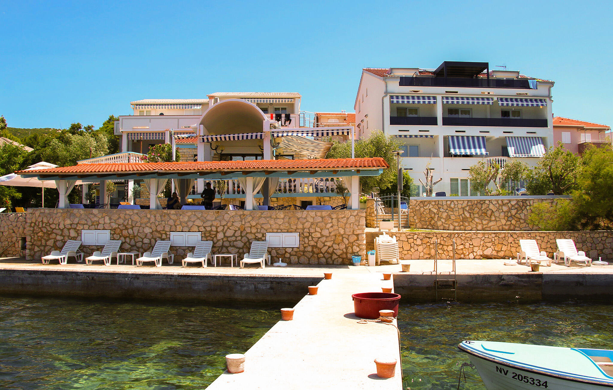 Wandel naar het gemeenschappelijke zwembad, verfris jezelf naar hartenlust en ontspan op de ligstoel. Je kunt ook een duik nemen in het heldere water van de Adriatische Zee op slechts een paar stappen van het plateaustrand.
