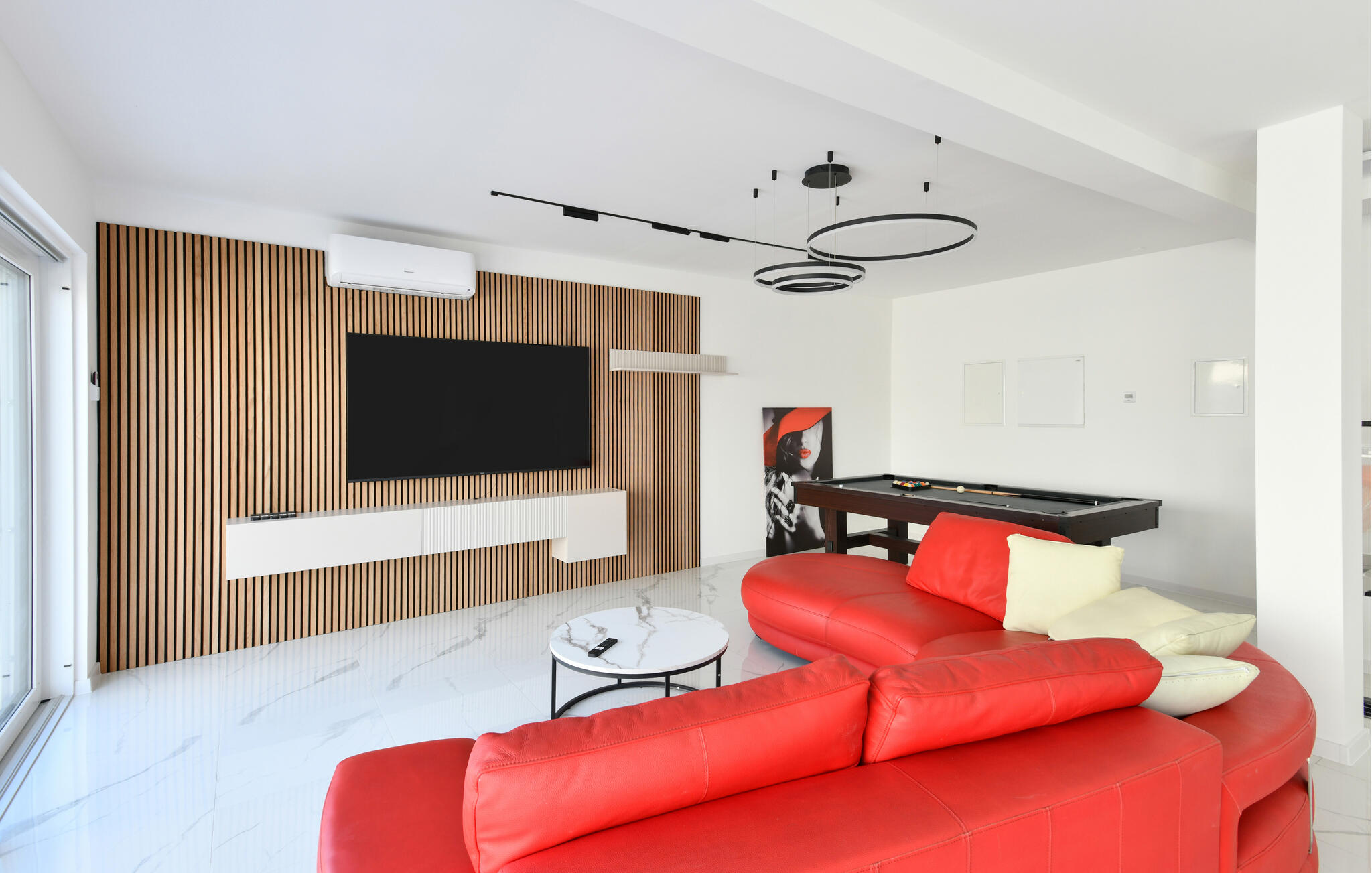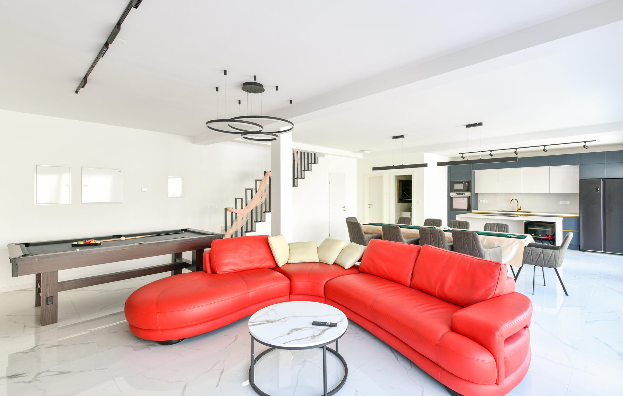 Deze moderne en ruime villa maakt indruk met zijn hoogwaardige, minimalistische ontwerp en biedt voldoende ruimte om met een groter gezin of een groep vrienden te genieten van de vele extra`s. Verzin culinaire hoogstandjes, kom samen voor stijlvolle maaltijden en neem `s avonds plaats op de elegante bank voor een spannende film, speel een spelletje biljart of ontspan in het binnenzwembad.