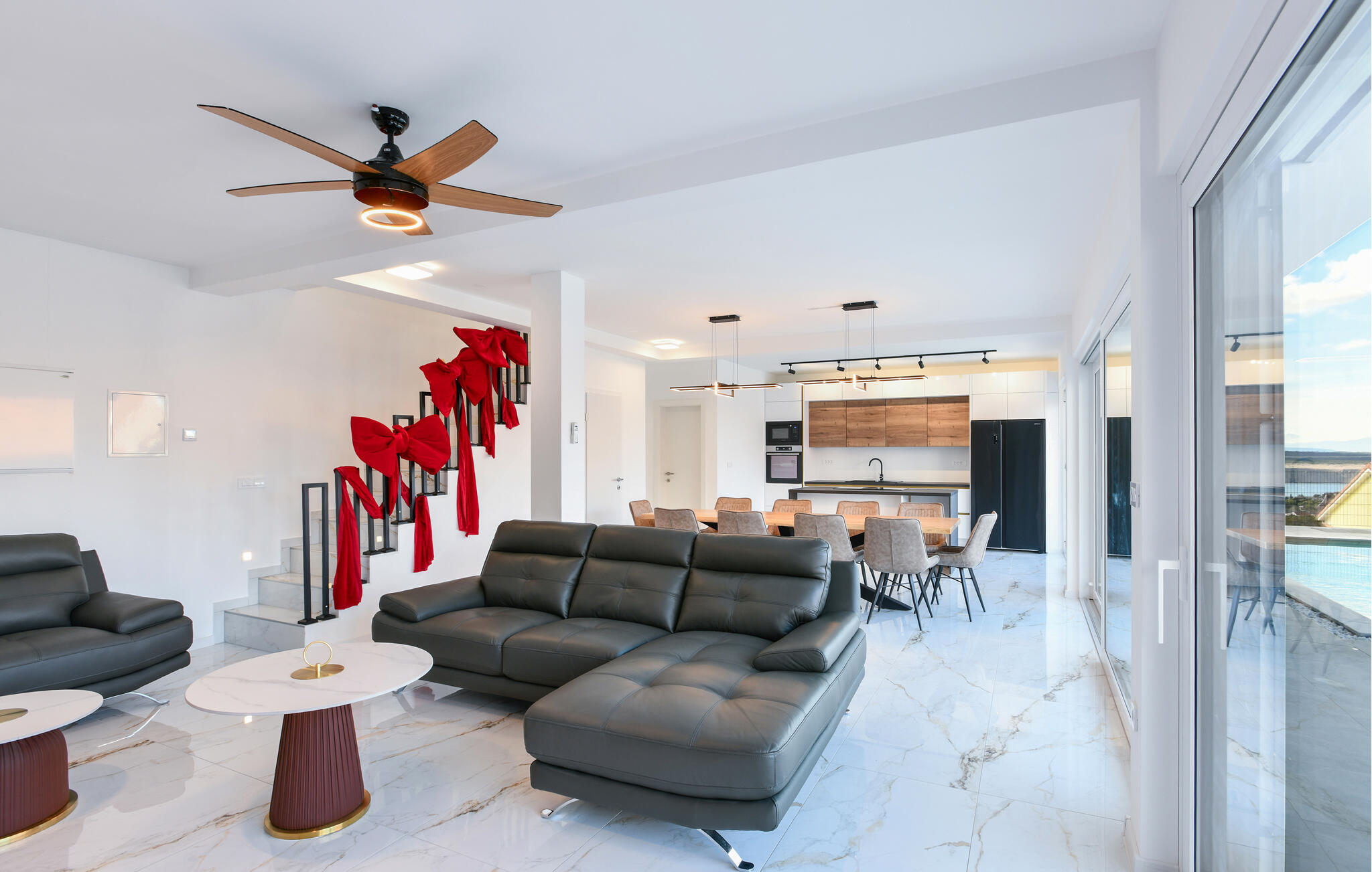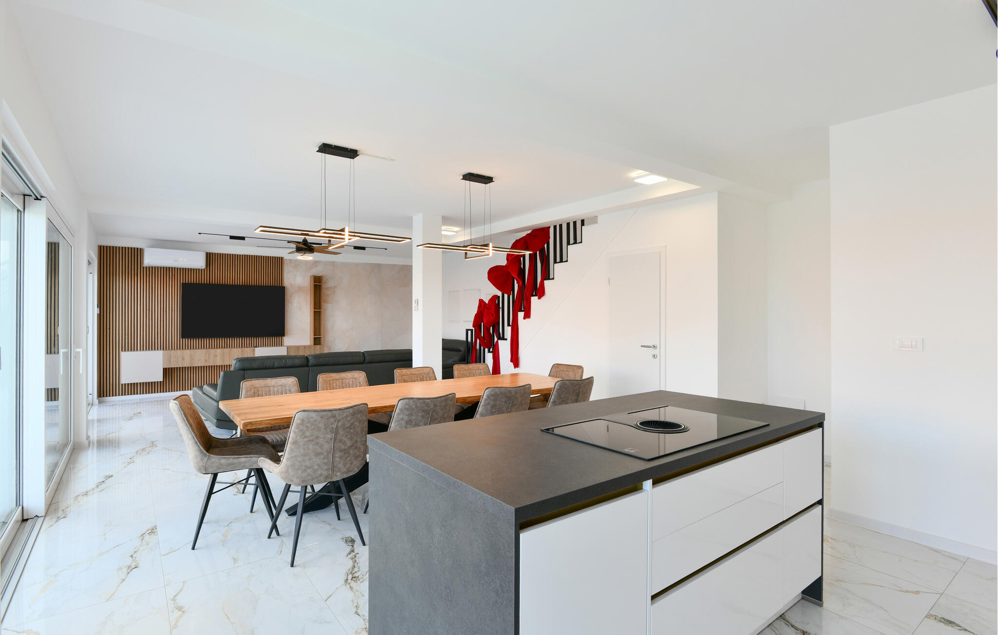 Deze moderne en ruime villa maakt indruk met zijn hoogwaardige, minimalistische ontwerp en biedt voldoende ruimte om met een groter gezin of een groep vrienden te genieten van de vele extra`s. Verzin culinaire hoogstandjes, kom samen voor stijlvolle maaltijden en neem `s avonds plaats op de elegante bank voor een spannende film, speel een spelletje biljart of ontspan in het binnenzwembad.