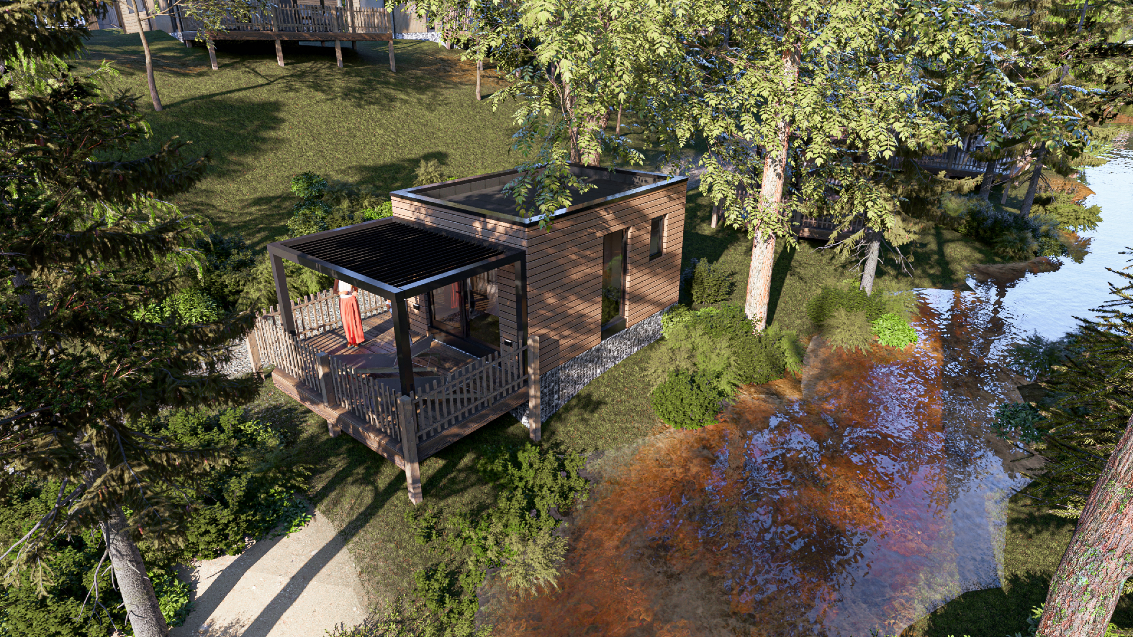 Een absoluut hoogtepunt is de heerlijke tweepersoons hottub op de veranda – dé plek om helemaal tot rust te komen in de buitenlucht, ongeacht het weer. De compacte keuken biedt alles om een eenvoudige maaltijd te bereiden, en de moderne badkamer is voorzien van een ruime douche, toilet en stijlvol wastafelmeubel.