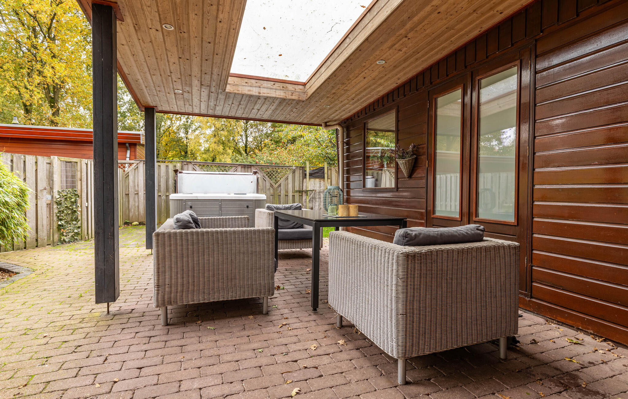 Breng ontspannende uren door op het overdekte terras met zitmeubilair. Begin de ochtend in de frisse lucht of eindig de dag hier in alle rust. De whirlpool zorgt voor pure ontspanning op elk moment van de dag. De tuin is goed onderhouden en goed afgeschermd door planten en vegetatie zodat je ongestoord kunt genieten.