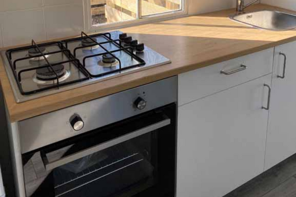 • een volledig ingerichte keuken (oven, koel/vrieskast, senseo koffieapparaat en 4 pits gasstel)