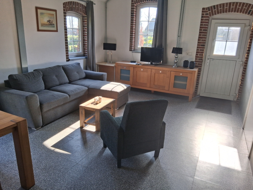 • een volledig ingerichte woonkamer met slaapbank
