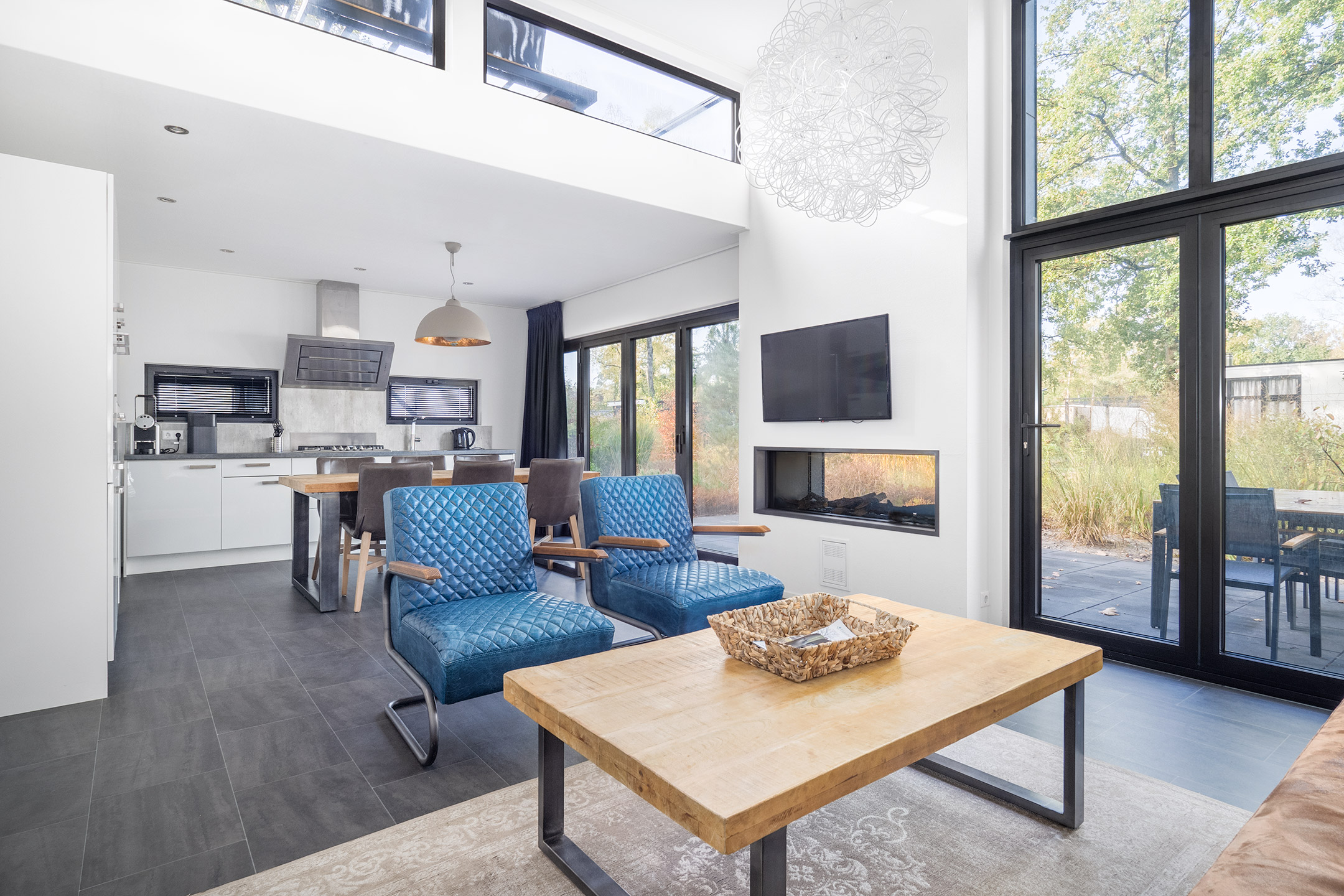 De Cube Elite Plus 6 is een woning die luxe uitstraalt. Dit vrijstaande chalet is geschikt voor 6 personen. De woning is onder architectuur gebouwd. Dankzij de hoge raampartijen is er veel lichtinval. Behalve een gezellige zithoek met televisie, is de ruime woonkamer ook voorzien van een doorkijk-gashaard. In de keuken vind je onder andere een koelvries-combinatie, combimagnetron, vaatwasser, waterkoker en een Nespresso koffiemachine. Er zijn 2 aparte slaapkamers, 1 met een tweepersoonsbed en 1 met een stapelbed of met 2 losse bedden. Via een trap kom je op de slaapvide waar zich nog een tweepersoonsbed bevindt. De woning heeft 2 luxe badkamers en een apart toilet. Het ruime zonneterras is voorzien van tuinmeubilair (sommige woningen beschikken over een buitenhaard). Je kunt bij deze woning 1 auto parkeren en er is gratis WiFi.