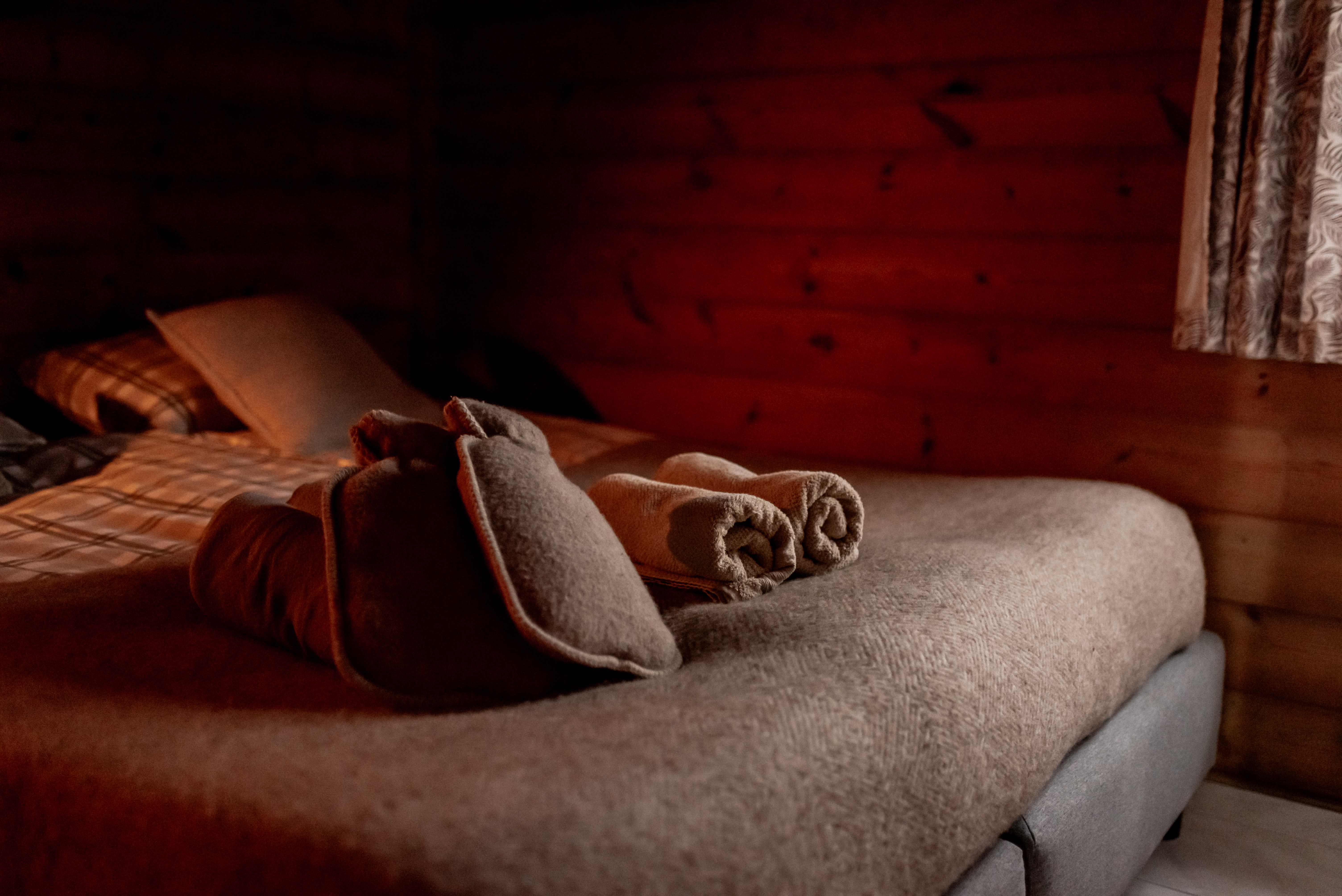 Stap binnen in een warm en knus interieur met gezellige inrichting in noordse stijl, comfortabele bedden en een houtkachel die zorgt voor extra warmte op frisse dagen. Voor nog meer comfort zijn er warme dekens, fleece dekens en wollen kruiken, zowel om binnen lekker knus te zijn als om buiten bij het kampvuur van te genieten.