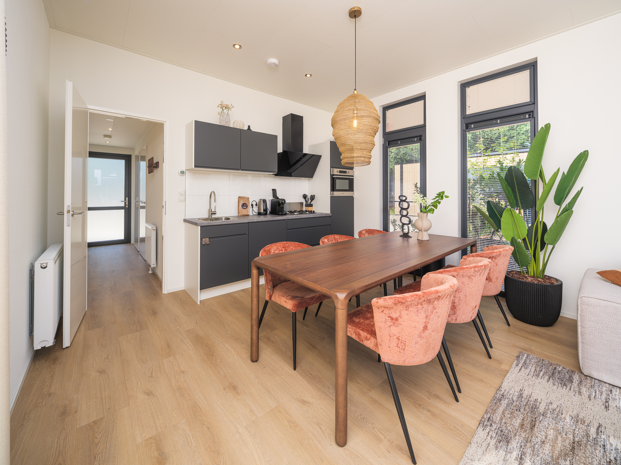 Bij binnenkomst wordt u verwelkomd door een ruime, sfeervolle woonkamer die uitnodigt tot ontspannen. Geniet van een avond vol gezelligheid met familie of vrienden in een warme ambiance. De open keuken is volledig uitgerust en perfect voor het bereiden van zowel snelle maaltijden als uitgebreide diners. Met moderne apparatuur zoals een vaatwasser, combimagnetron en 4-pits gasfornuis is alles aanwezig om uw verblijf zo aangenaam mogelijk te maken.