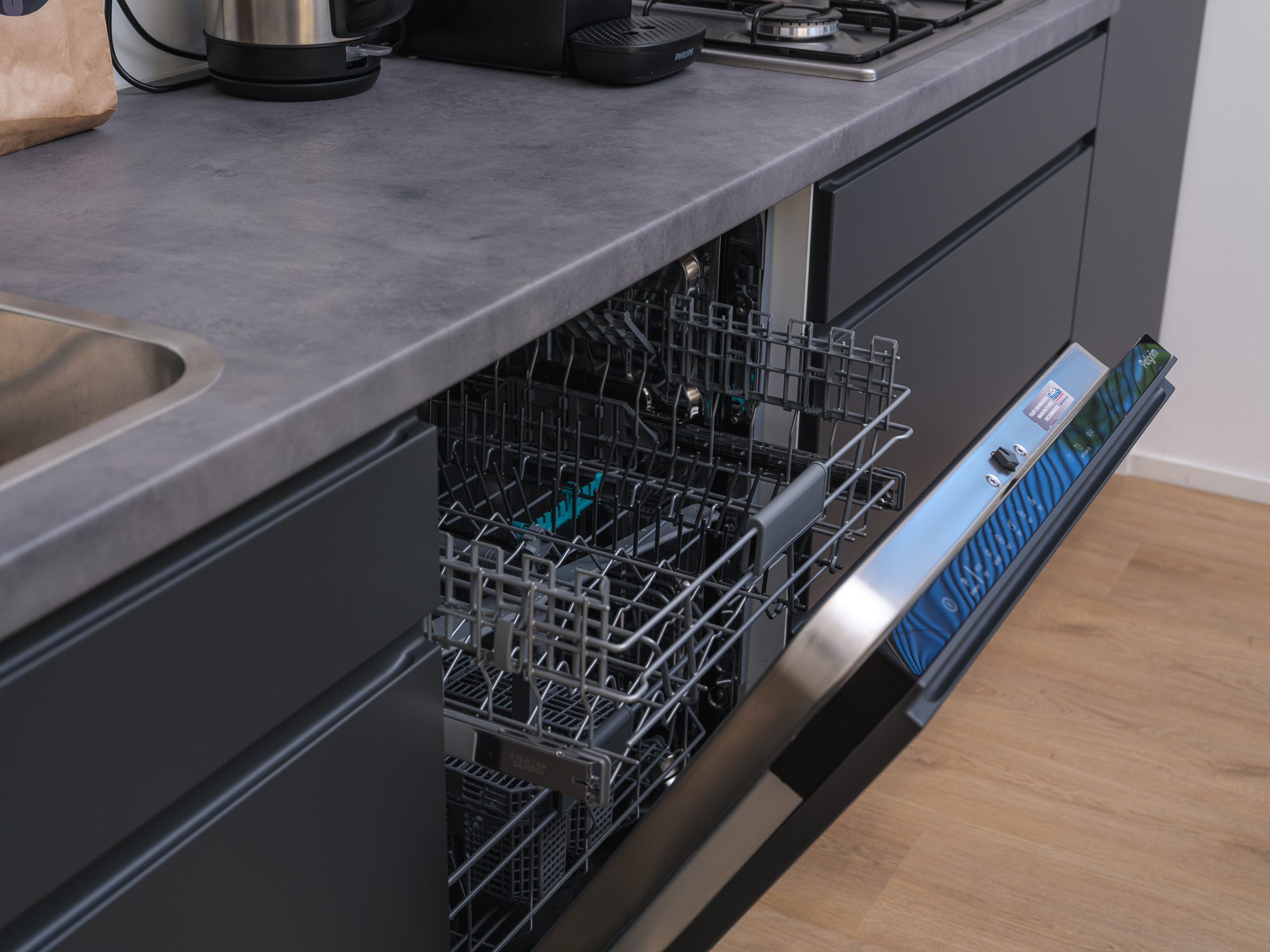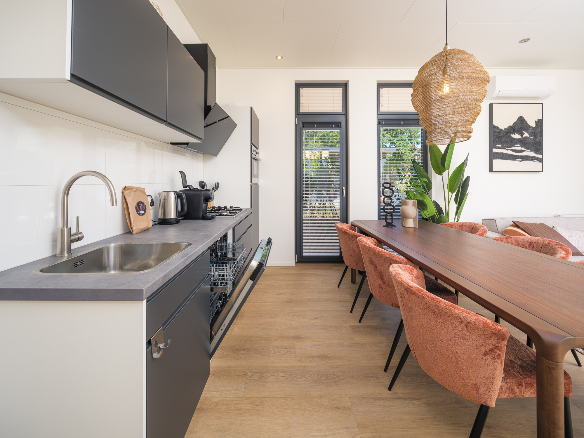 KoffiecupmachineEettafelVaatwasserAfzuigkapGasfornuisWaterkokerStandaard keukeninventarisKoelkastCombi-ovenBuitenleven