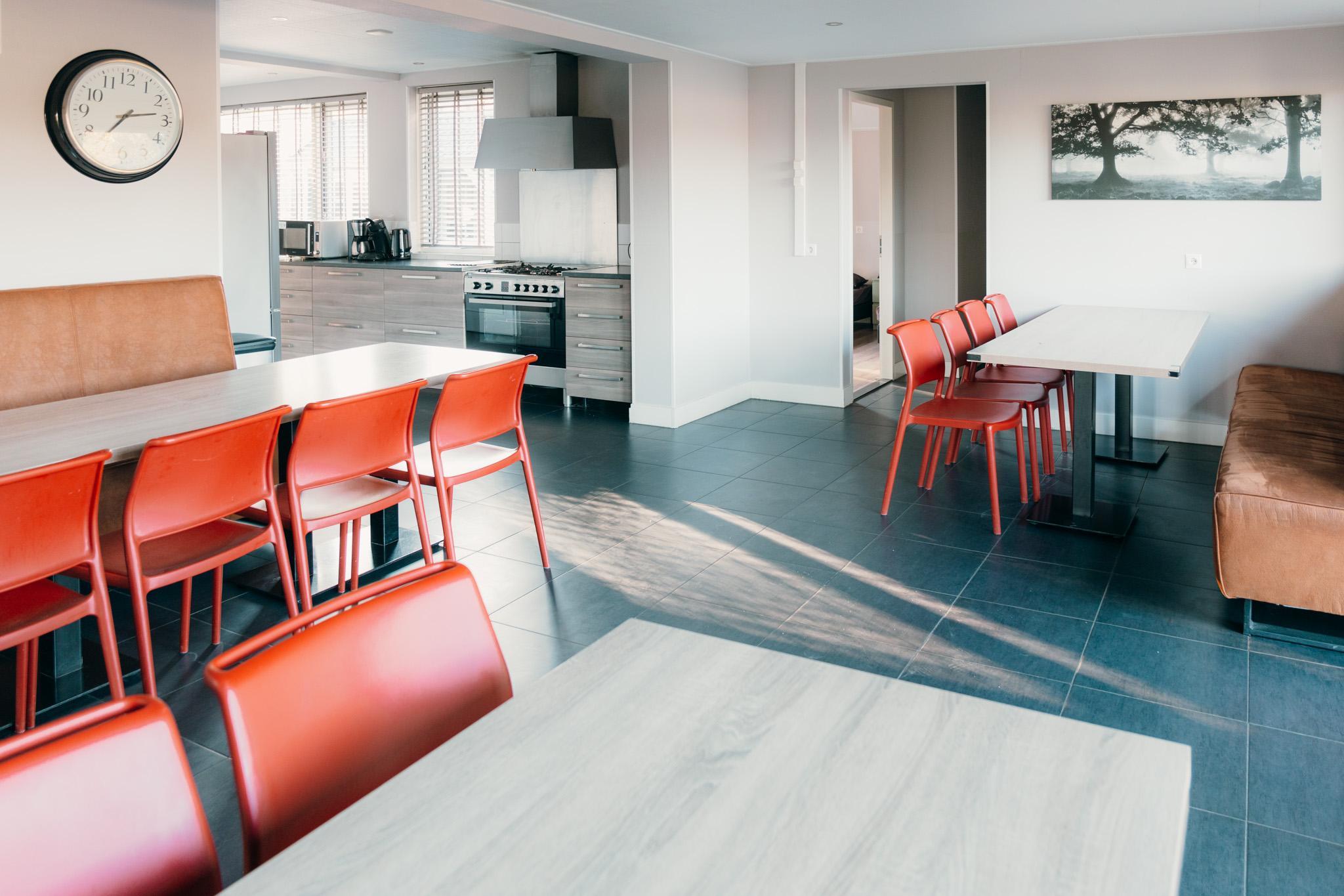 Deze luxe groepsvilla is de perfecte accommodatie voor een vakantie met een grote groep op de Veluwe. Met maar liefst 11 slaapkamers biedt de villa ruimte aan 24 personen, wat zorgt voor een aangename en ruime omgeving voor je vakantie. De begane grond biedt een gezellige woonkamer met comfortabele zithoek, flatscreen TV en een sfeerhaard, waar je met je gezelschap kunt ontspannen. De volledig uitgeruste keuken heeft alles wat je nodig hebt om een maaltijd te bereiden, inclusief een 6-pits gasstel, combimagnetron, vaatwasser en koffiezetapparaat. Het ruime eetgedeelte met drie eettafels is ideaal voor het delen van maaltijden en verhalen.