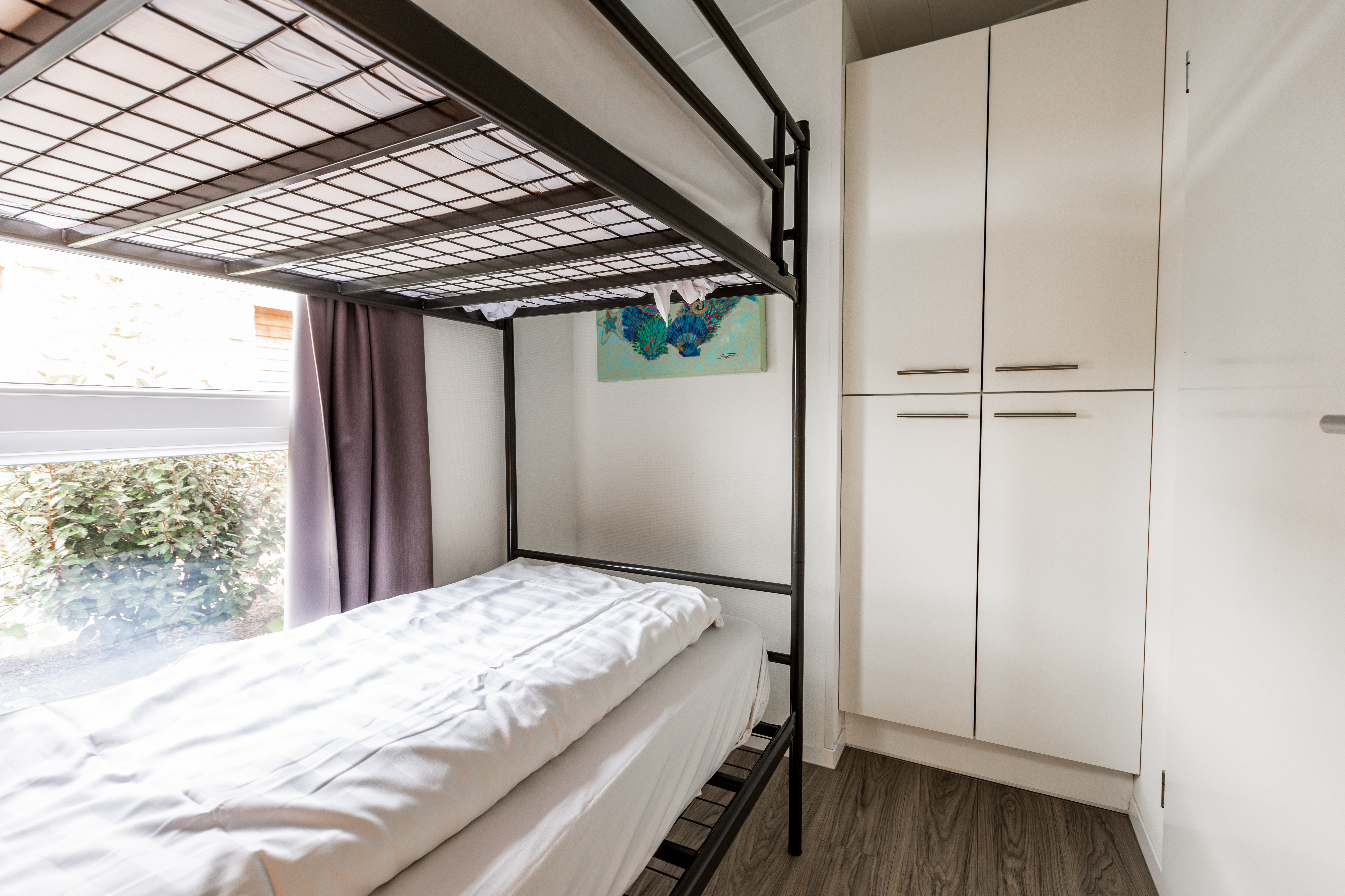 - 3 slaapkamers (2*2 eenpersoonsbedden, 1 stapelbed)