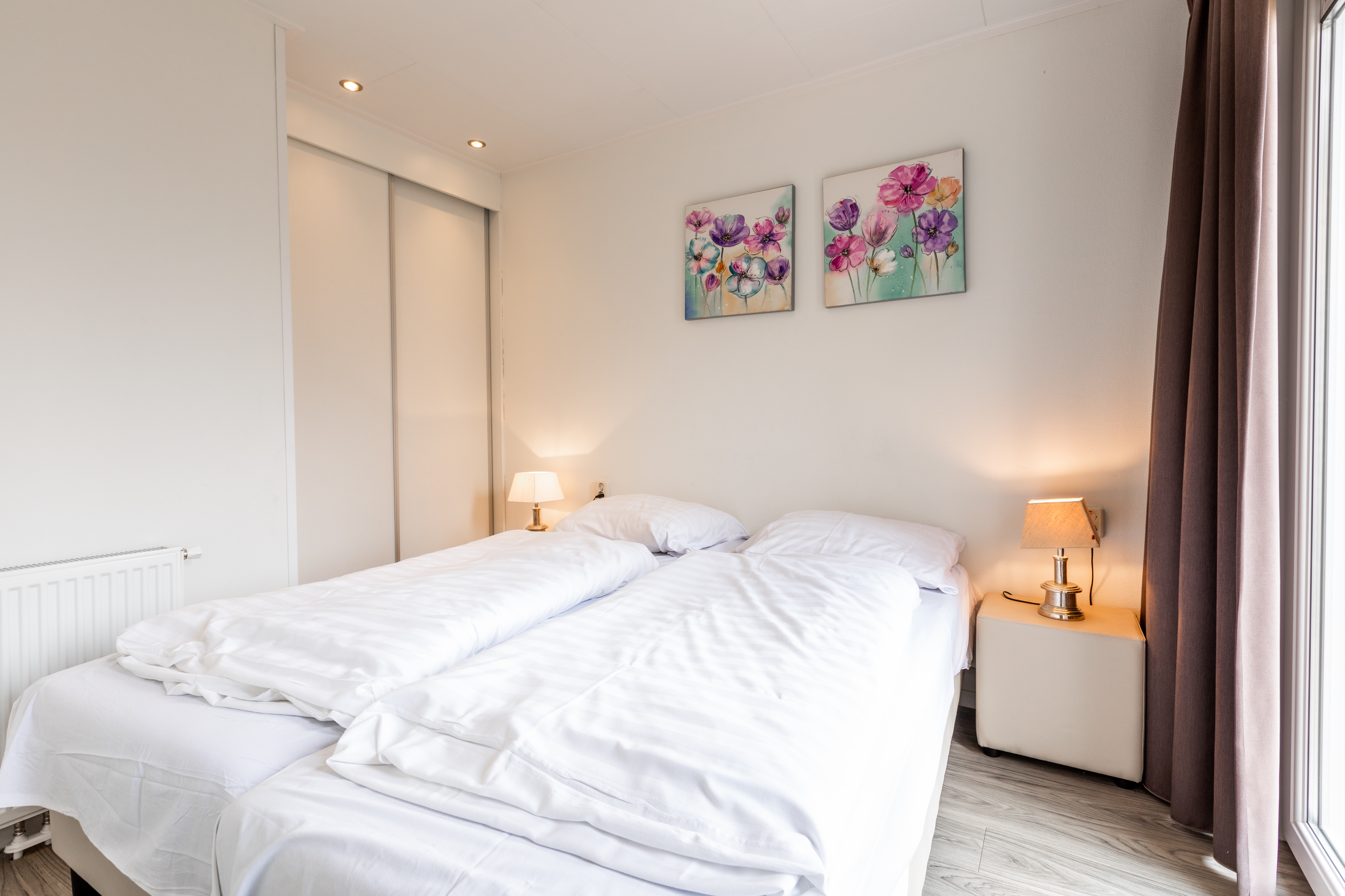 - Drie slaapkamers (2*2 eenpersoonsbedden, 1 stapelbed)