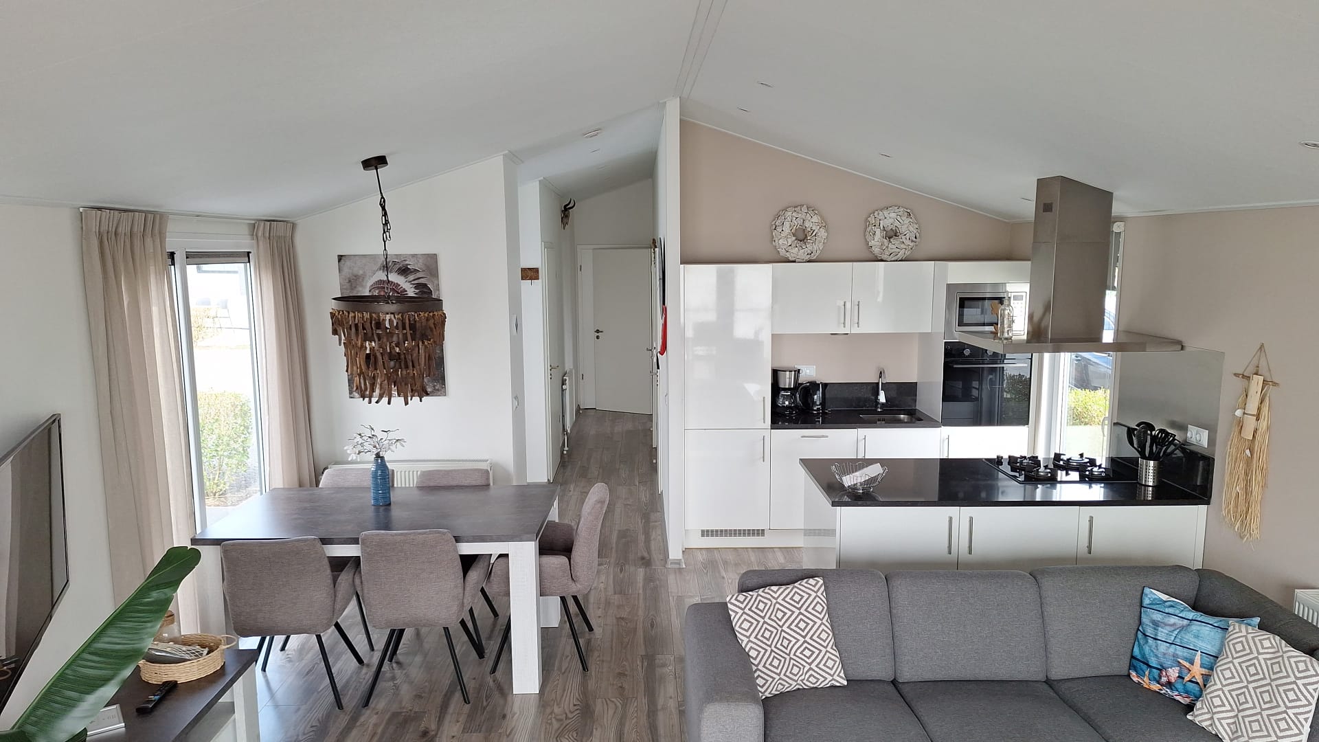 Zoals de naam al doet vermoeden ligt Pavilion Waterfront 6 pal aan het water. Dit vrijstaande en gelijkvloerse chalet is geschikt voor 6 personen. In de gezellige woonkamer vind je een zithoek met televisie en een aparte eethoek. De open keuken is onder andere uitgerust met een vaatwasser, combimagnetron en een filter koffiezetapparaat. In totaal zijn er 3 slaapkamers: 1 slaapkamer met een tweepersoonsbed en 2 slaapkamers met 2 eenpersoonsbedden óf een stapelbed. Daarnaast is er een badkamer met douche en toilet. Via de schuifpui in de woonkamer kom je bij dé blikvanger van de Pavilion Waterfront 6: het terras aan het water met tuinmeubilair. Bij dit chalet kun je 1 auto parkeren en er is gratis WiFi aanwezig.