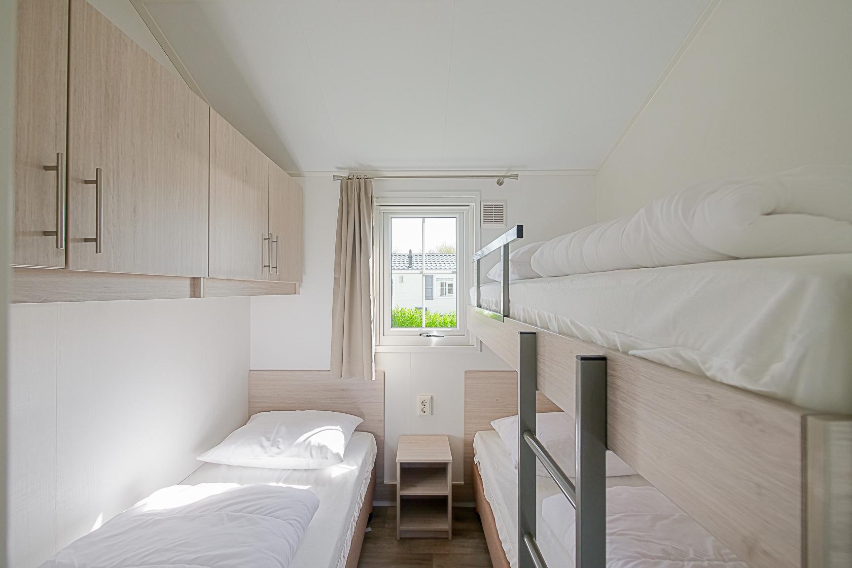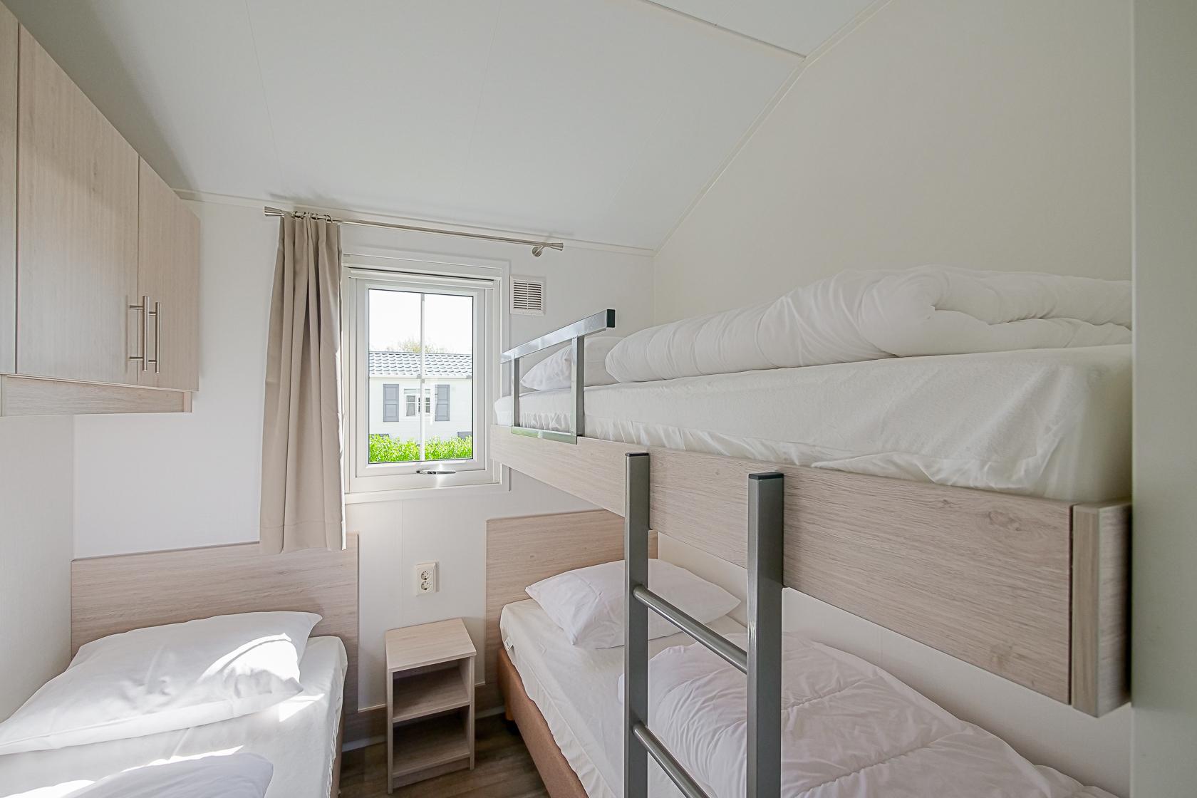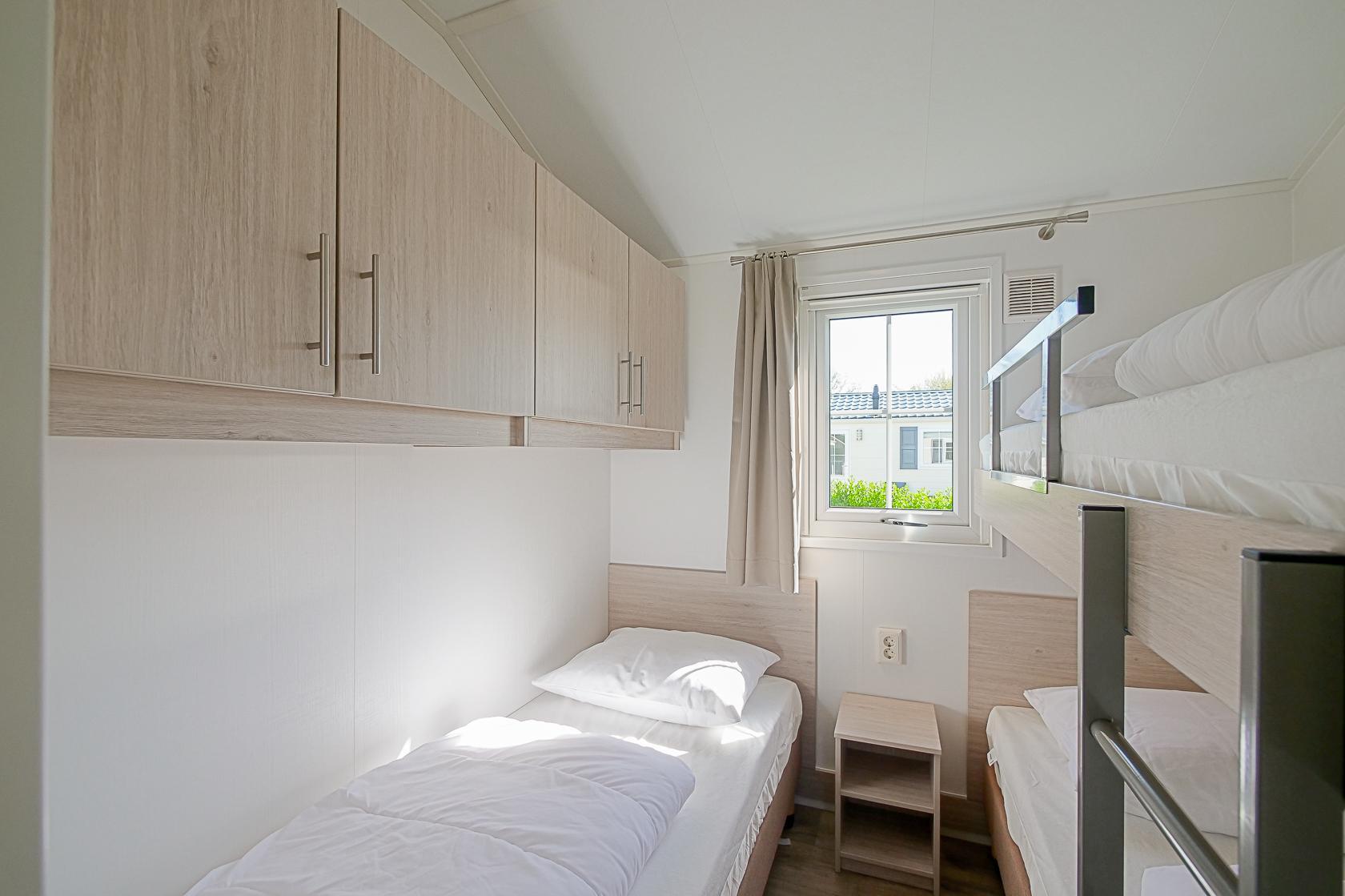 Dit chalet met omheinde tuin ligt aan de rand van Callantsoog, omgeven door heide, weilanden en duinen. Het brede zandstrand van Callantsoog ligt op slechts 1400 meter afstand. Het moderne, gelijkvloerse chalet is comfortabel ingericht en biedt plaats aan maximaal vijf personen. Een gezellige woonkamer met een zithoek, flatscreen-tv, gratis wifi en centrale verwarming zorgen voor een aangename sfeer. De open keuken is van alle gemakken voorzien, zoals een vaatwasser, combimagnetron, koelkast met vriesvak, vierpits gasfornuis, broodrooster, waterkoker en koffiezetapparaat. Een wasmachine, droogrek, stofzuiger en rookmelder zijn eveneens aanwezig. Het chalet heeft twee slaapkamers: één met een comfortabel tweepersoonsbed en één met een eenpersoonsbed en een stapelbed, geschikt voor gezinnen met kinderen. De badkamer is voorzien van een douche, wastafel en toilet. De omheinde tuin biedt volop ruimte om te ontspannen en te spelen en is voorzien van een terras, tuinmeubilair, een parasol en een tuinhuisje. Het chalet beschikt over een eigen parkeerplaats en er is een laadpunt voor elektrische auto`s op het terrein. Dankzij de centrale en toch natuurlijke ligging bent u niet alleen zo bij het strand, maar ook bij de duinen en de vele wandel- en fietspaden. Uitstapjes naar Alkmaar met zijn beroemde kaasmarkt, naar Den Helder, Texel of naar omliggende dorpen bieden extra afwisseling. Het uitgestrekte landschap, natuurgebied het Zwanenwater en de nabijheid van het centrum maken het park ideaal voor gasten met honden.