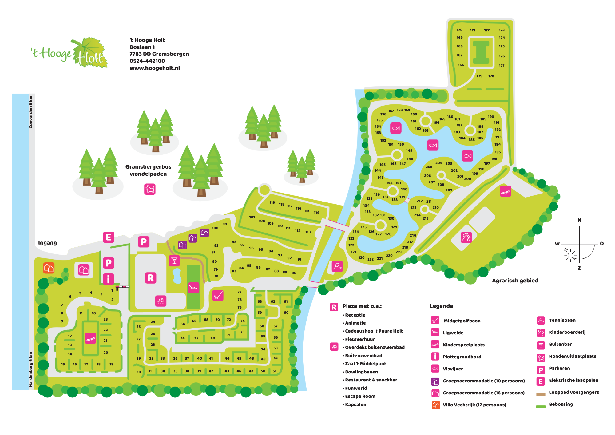 Vakantiepark `t Hooge Holt staat voor groen, gezelligheid en gastvrijheid. Gelegen in een prachtige, natuurlijke omgeving biedt het park een ideale plek om te ontspannen en te genieten van elkaar. Of je nu komt voor een gezellig weekendje weg, actief wilt fietsen of wandelen in de omliggende natuur, of simpelweg wilt genieten van de comfort van onze voorzieningen – bij ons voelt elke gast zich welkom. Voor kinderen is er genoeg te beleven: van spelen in de speeltuin tot avontuurlijke activiteiten en zelfs een leuke kinderboerderij. Bij `t Hooge Holt zorgen wij ervoor dat zowel volwassenen als kinderen zich vermaken en genieten van een onvergetelijke vakantie.