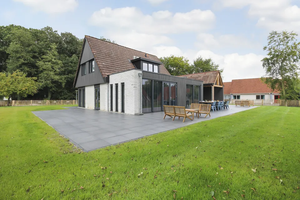 Luxe familievilla met 6 slaapkamers en 3 badkamers, moderne keuken, ruime tuin en prachtig uitzicht bij Vakantiepark ’t Hooge Holt