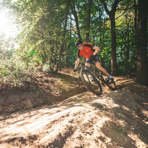 Prachtige, bosrijke omgeving in de nabijheid van de hockeyvelden waar honden vrij kunnen rondlopen. Naast het wandelpad is er ook een drukke MTB-route voor mountainbikers, waardoor een zekere mate van wederzijds begrip gewenst en noodzakelijk is.