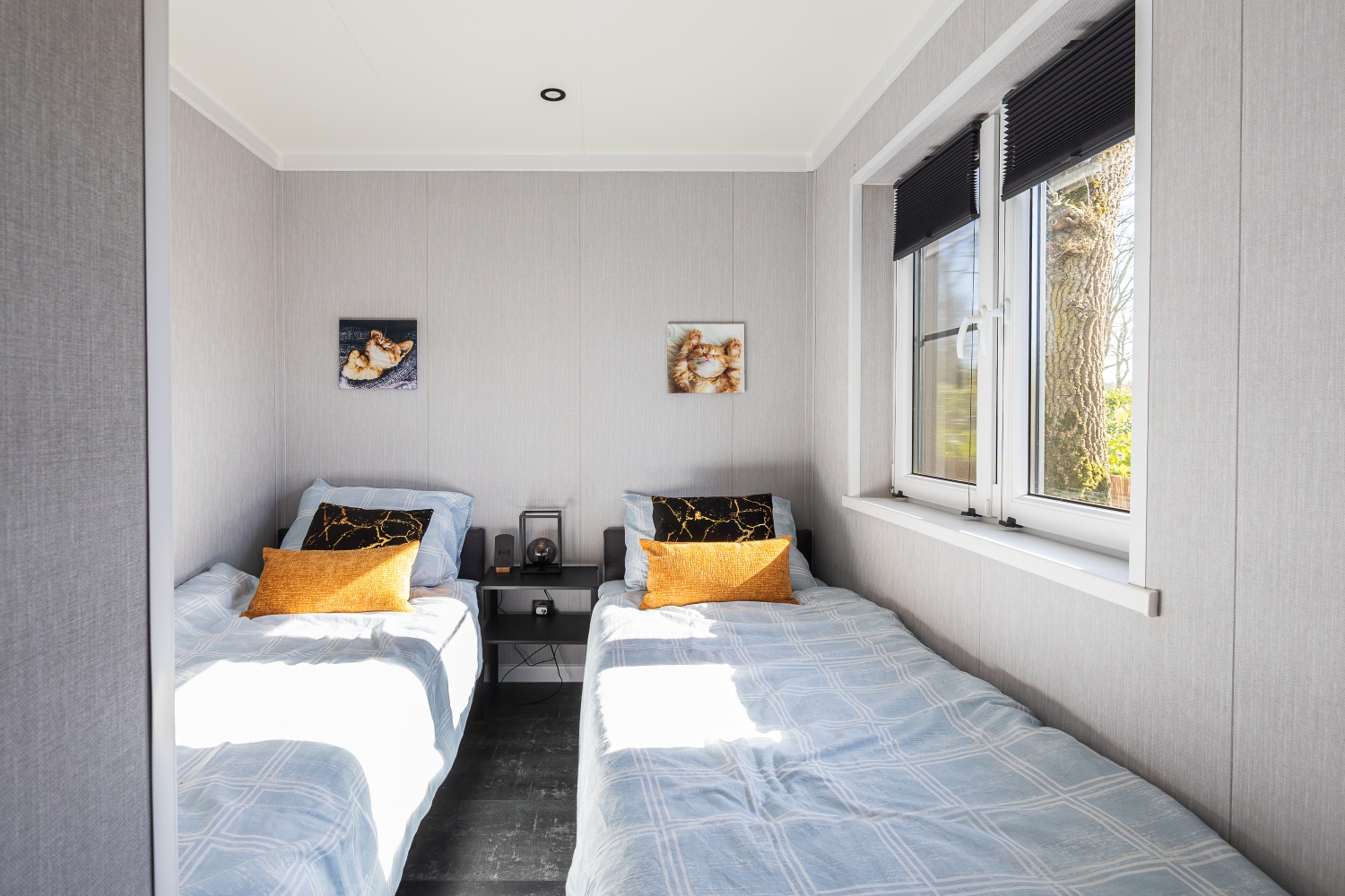 In het chalet bevinden zich twee slaapkamers met slaapplaatsen voor vier personen. Er is veel kastruimte in de vorm van grote inbouwkasten in beide slaapkamers. De bedden zijn bij aankomst opgemaakt en er liggen 2 handdoeken per persoon klaar. Beide slaapkamer hebben horren.