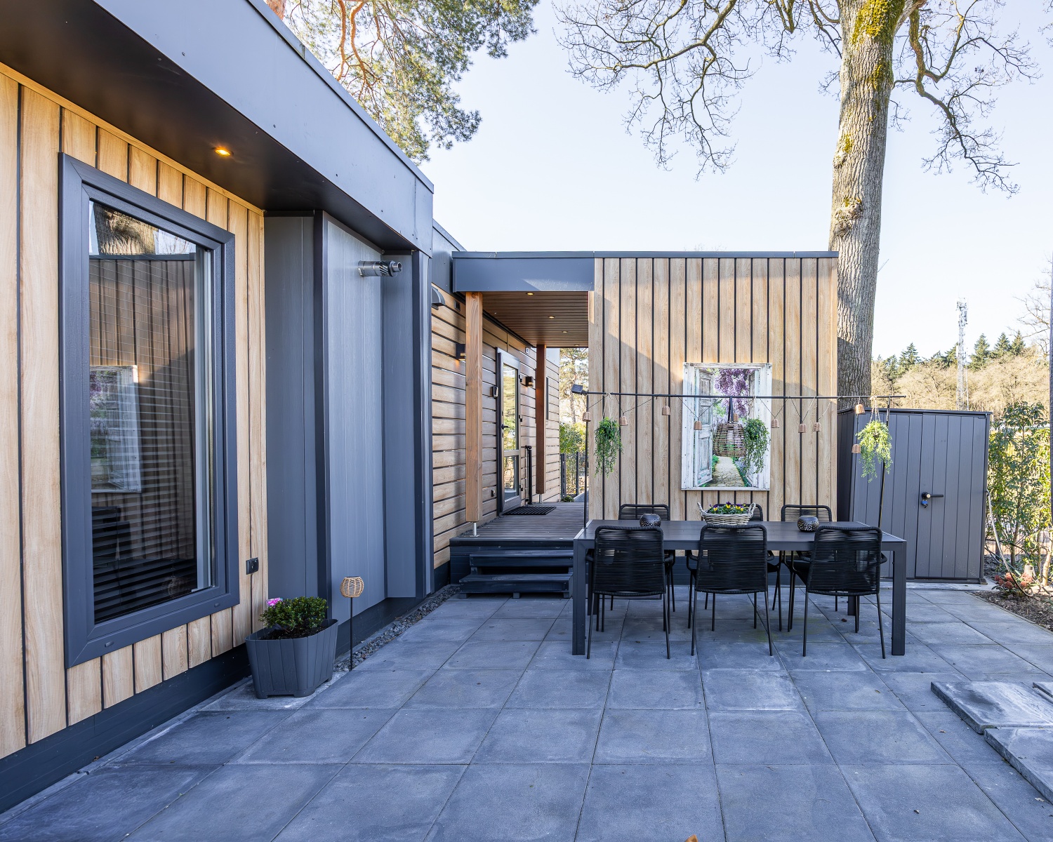 De aanwezige loungeset staat garant voor heerlijke zomeravonden en ook buiten eten is mogelijk aan de 6 persoons tafel.