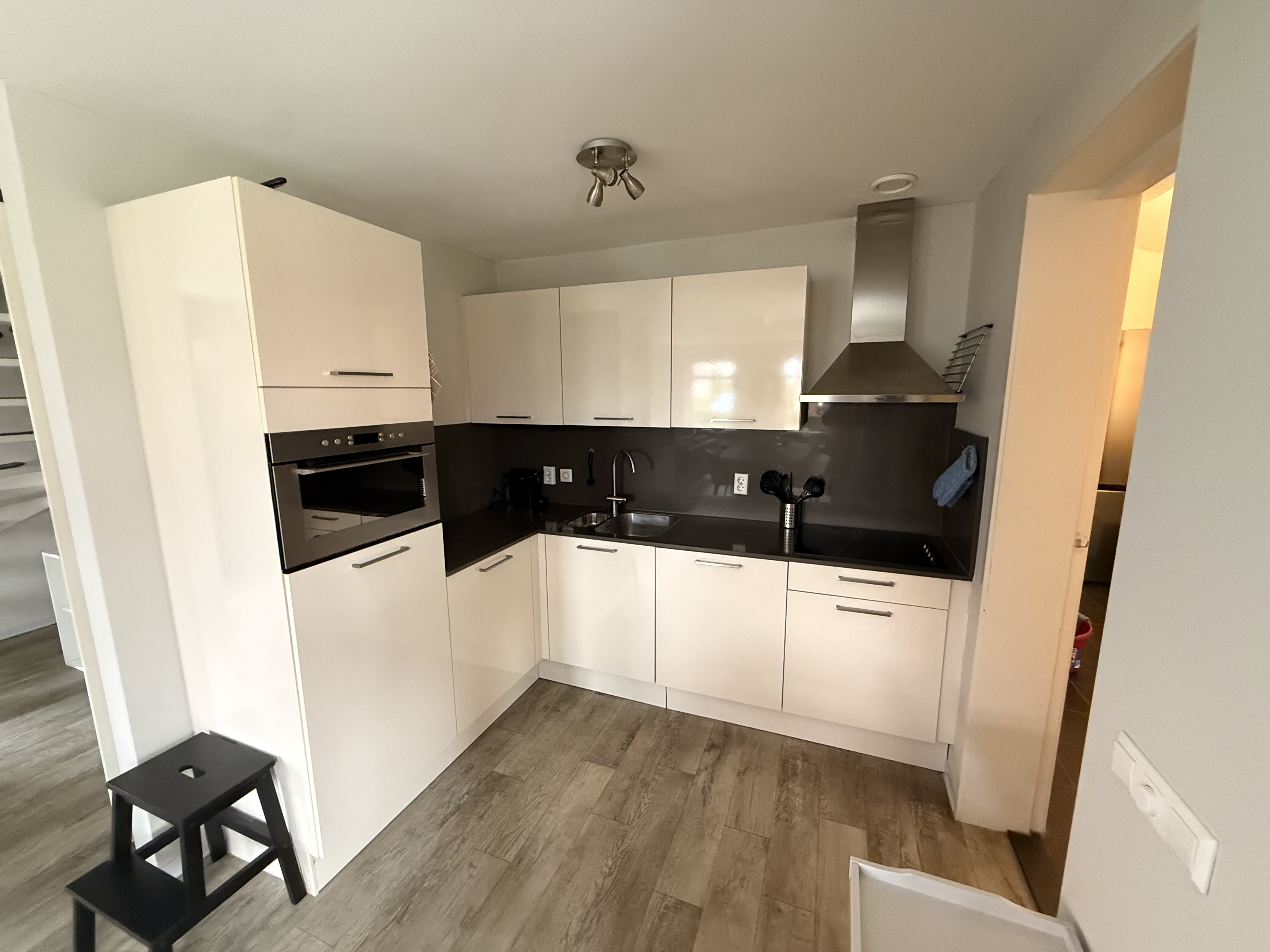 Keramische kookplaatFilter koffieapparaatPannenBestekEettafelBordenVaatwasserDrinkglazenAfzuigkapWaterkokerKeukengereiMagnetronKoelkastLigging