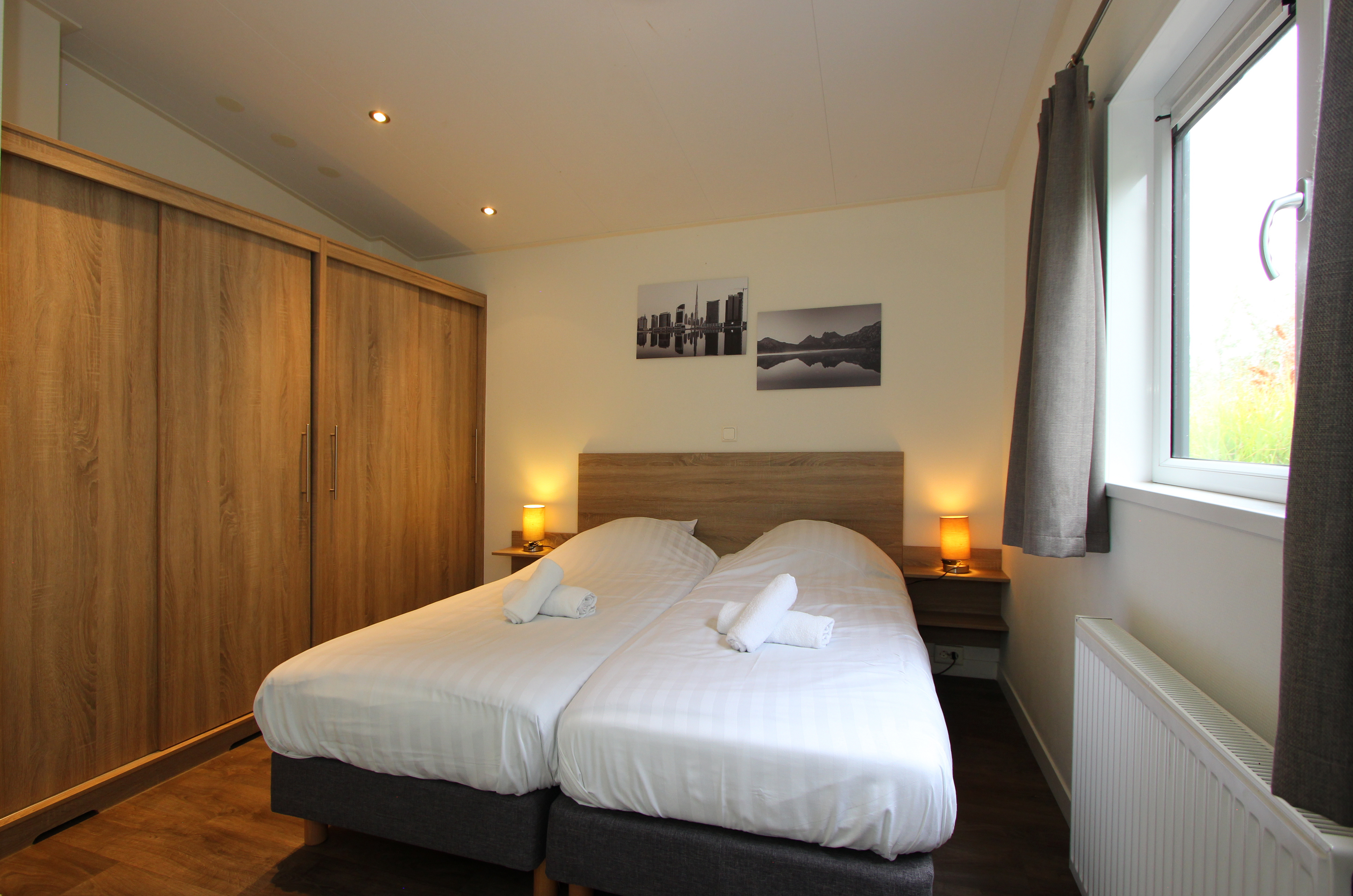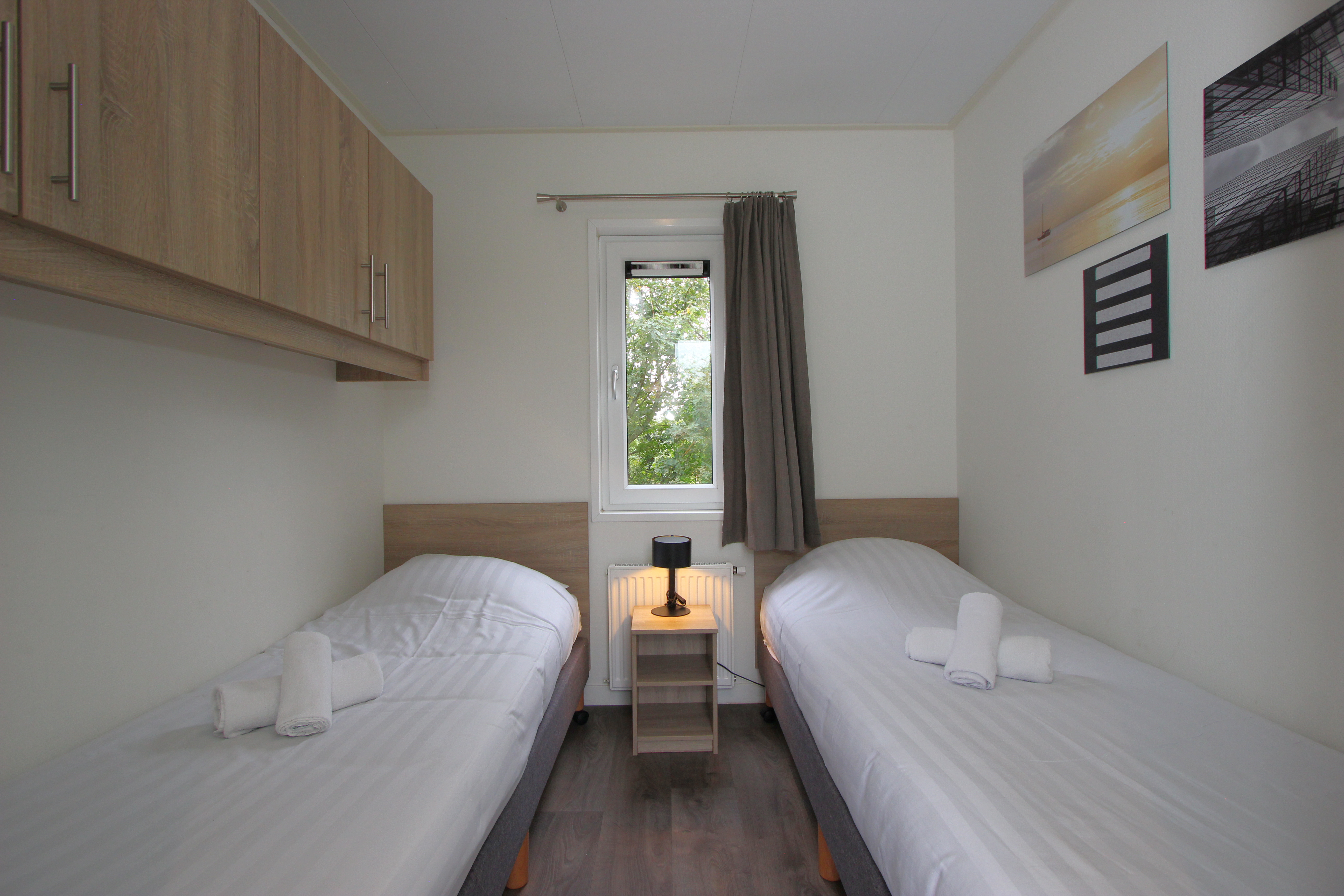 L-Pavilion 6 is een vrijstaand en gelijkvloers chalet die geschikt is voor 6 personen. De woonkamer heeft een gezellige zithoek met televisie en een aparte eethoek. In de keuken vind je onder andere een vaatwasser, combimagnetron en een filterapparaat. In totaal zijn er 3 slaapkamers aanwezig, elk met 2 eenpersoonsbedden. De badkamer is voorzien van een douche, wastafel en toilet. Buiten vind je een terras met tuinmeubilair. Bij deze vakantiewoning kun je 1 auto parkeren en er is gratis wifi beschikbaar.