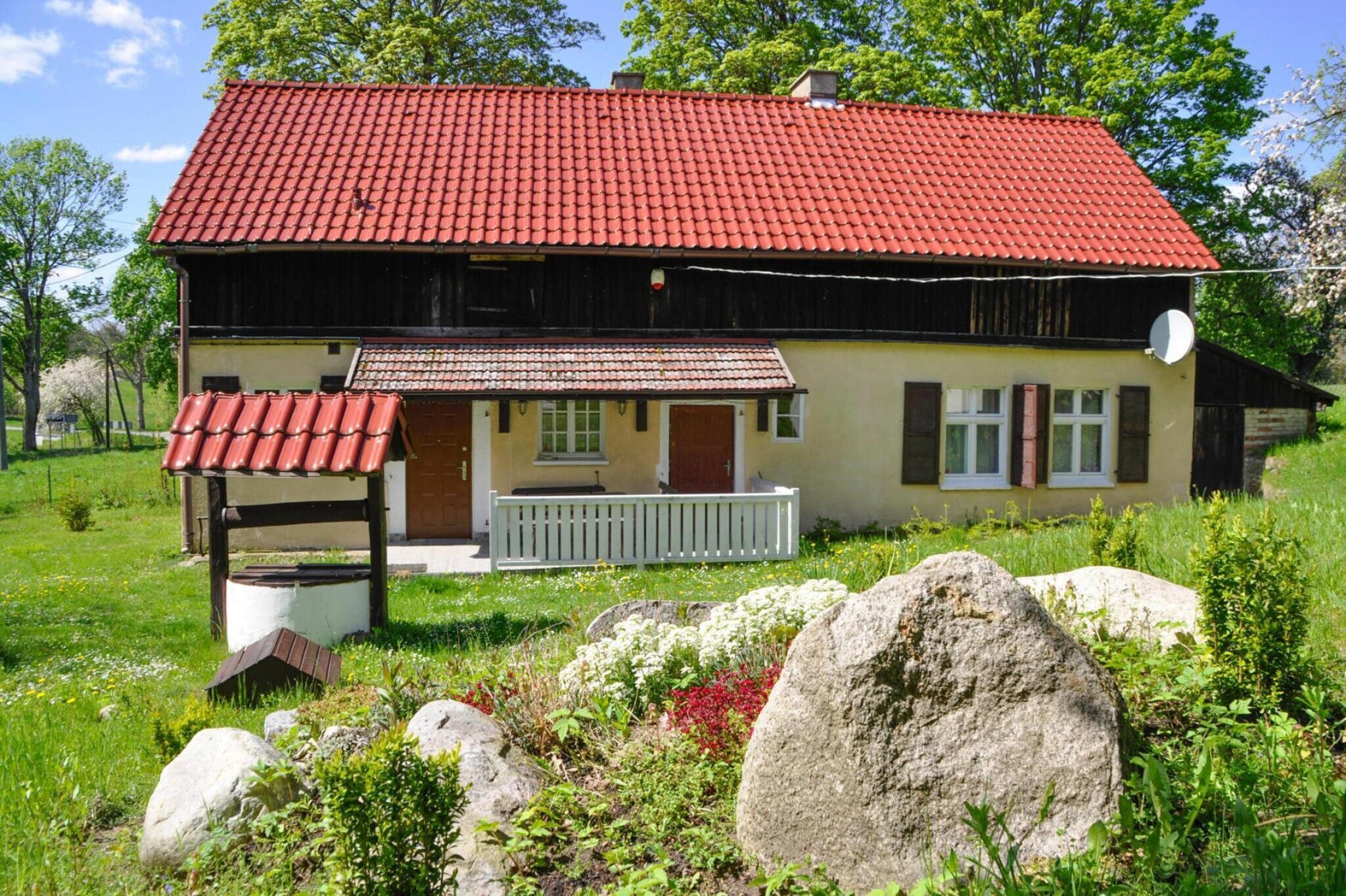 Een ruim, sfeervol vakantiehuis gelegen op het platteland, op een rustige plek, omgeven door weilanden en bossen. Het dichtstbijzijnde meer, waar u in schoon water kunt zwemmen, vissen vanaf een pier of per boot, ligt op slechts 1,8 km afstand. De woning is rijkelijk gemeubileerd. Het bestaat uit een ruime, goed uitgeruste keuken met een aparte eetkamer, een woonkamer met open haard en tv, 2 aparte slaapkamers en een badkamer met douche. De eigenaar zorgt voor brandhout voor het verwarmen van het huis. Er is een overdekt terras met tuinmeubelen en barbecuefaciliteiten. Er is een grote tuin rondom het huis. De uitrusting omvat een wasmachine. Draadloos internet is beschikbaar. Vlakbij, op het aangrenzende terrein, woont de eigenaar van de accommodatie en stelt deze de gasten (tegen betaling) een tennisbaan, een tafeltennistafel en een visvijver ter beschikking. De eigenaar van de accommodatie beschikt over een privégedeelte aan het meer (3,5 km van het huis), met een privéstrand, een pier en een overdekt tuinhuisje. Dit alles is gratis beschikbaar voor gasten. Je kunt er met de auto, de fiets of een mooie wandeling komen. De eigenaar stelt de gasten ook een roeiboot ter beschikking (gratis, maar reserveren verplicht). De prijs van het verblijf is inclusief: beddengoed, handdoeken, elektriciteits- en waterverbruik, brandhout, eindschoonmaak, internet, parkeerplaats, babybedje en kinderstoel (registratie vereist). Het Wierzchowo-meer biedt geweldige verfrissing en de mogelijkheid om te zonnebaden op warme zomerdagen. De dichtstbijzijnde grotere stad die u vanaf hier kunt bezoeken is Szczecinek. Het vakantiehuis is omgeven door talloze meren, weelderige bossen en weilanden. Vissers, watersporters, wandelaars en fietsers hebben hier een vakantieparadijs. Ook kunt u vanaf hier gemakkelijk een dagtochtje naar de kust maken. Nog maar 60 km te gaan en u kunt al genieten van het prachtige strandzand en urenlang zwemmen in de wateren van de Oostzee.