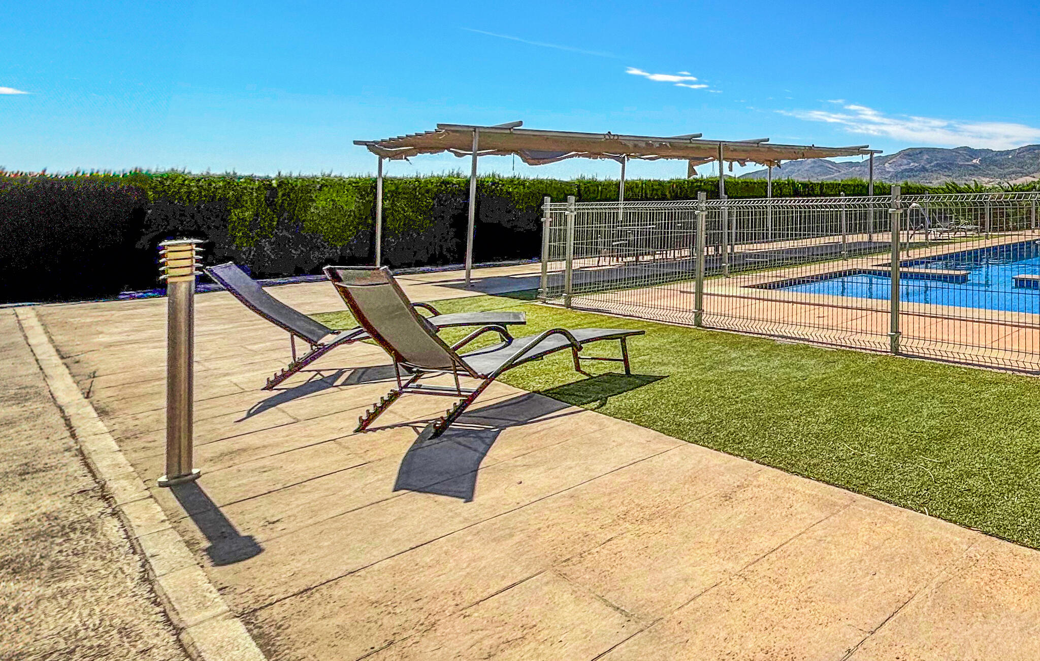 Spring `s ochtends meteen in het zwembad en geniet van een paar verfrissende baantjes in het heldere water. Ontbijt buiten onder het overdekte terras, leun achterover met een koel drankje en geniet van het uitzicht op het weidse landschap en de bergen aan de horizon. Als je je sportief voelt, speel dan voor de verandering een partijtje tennis of voetbal.