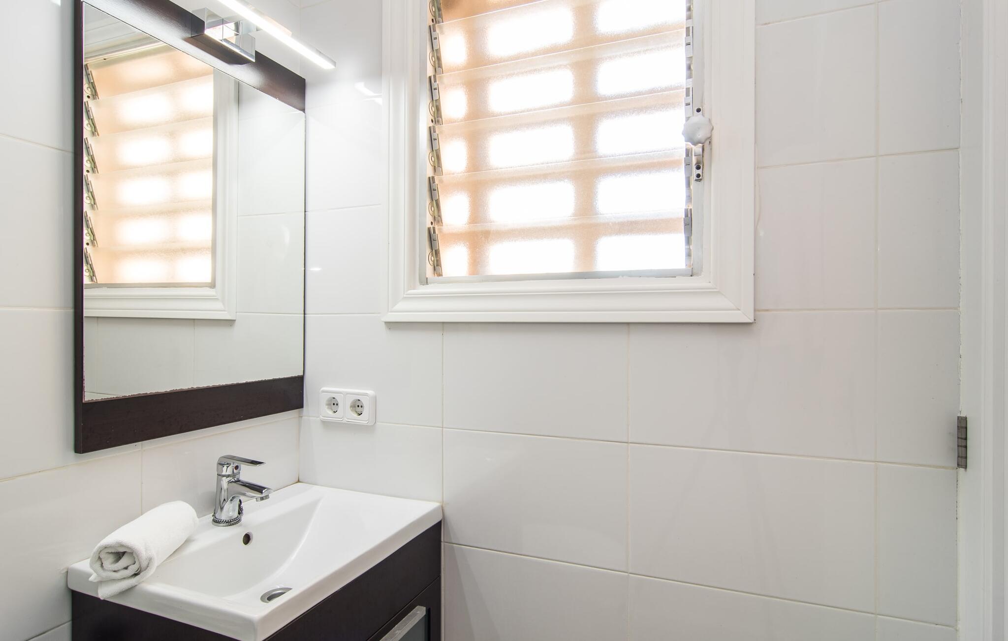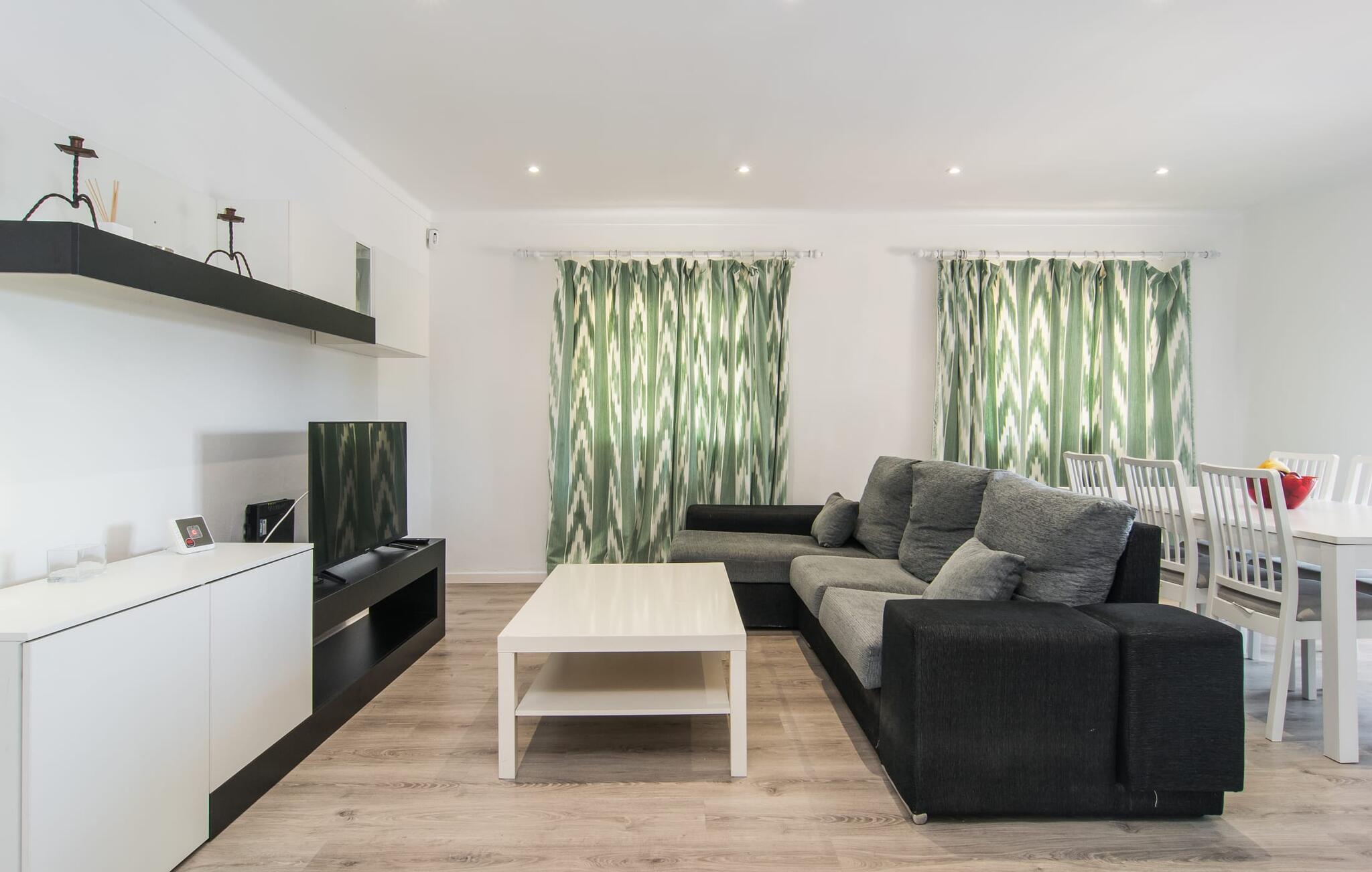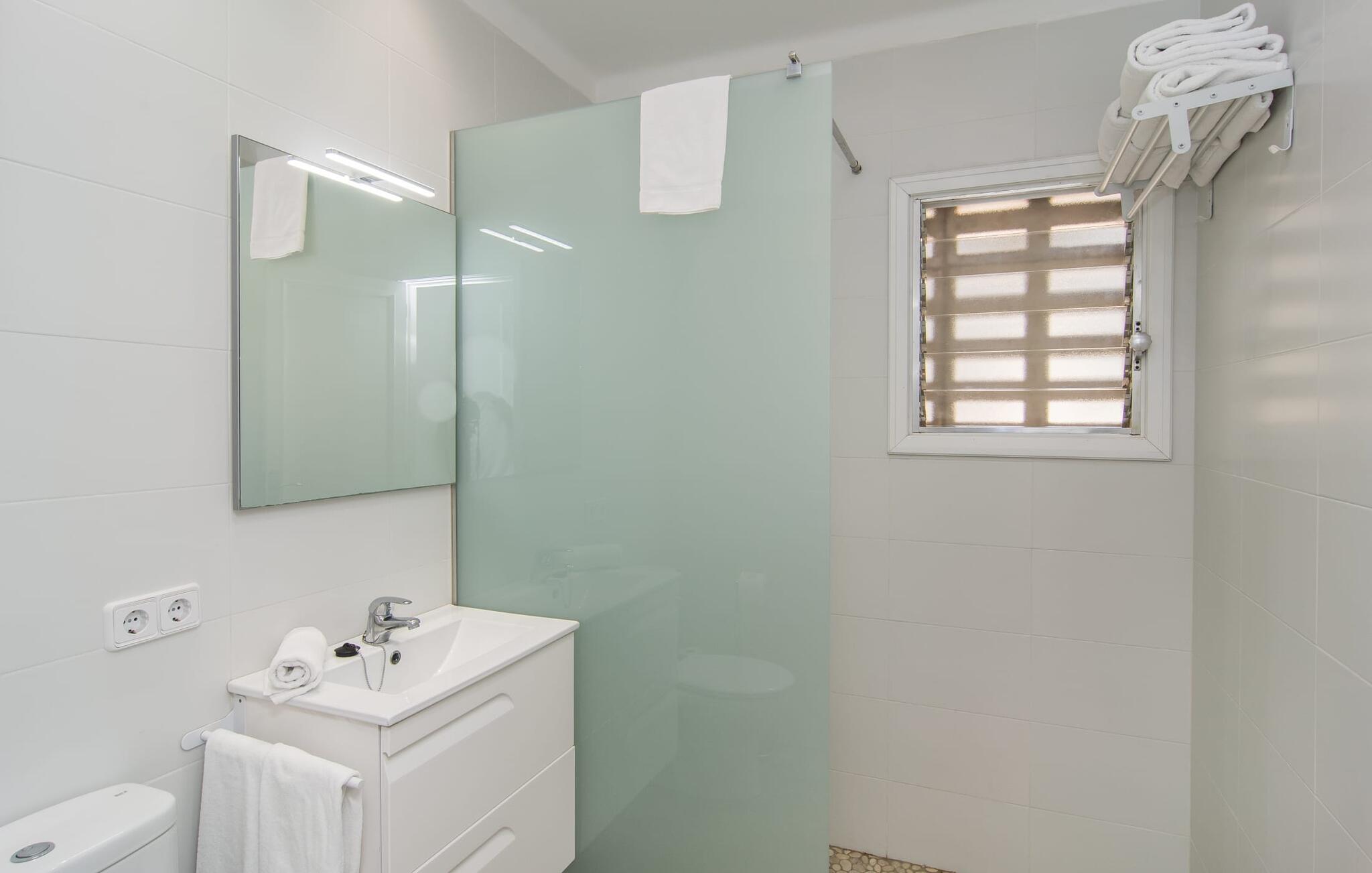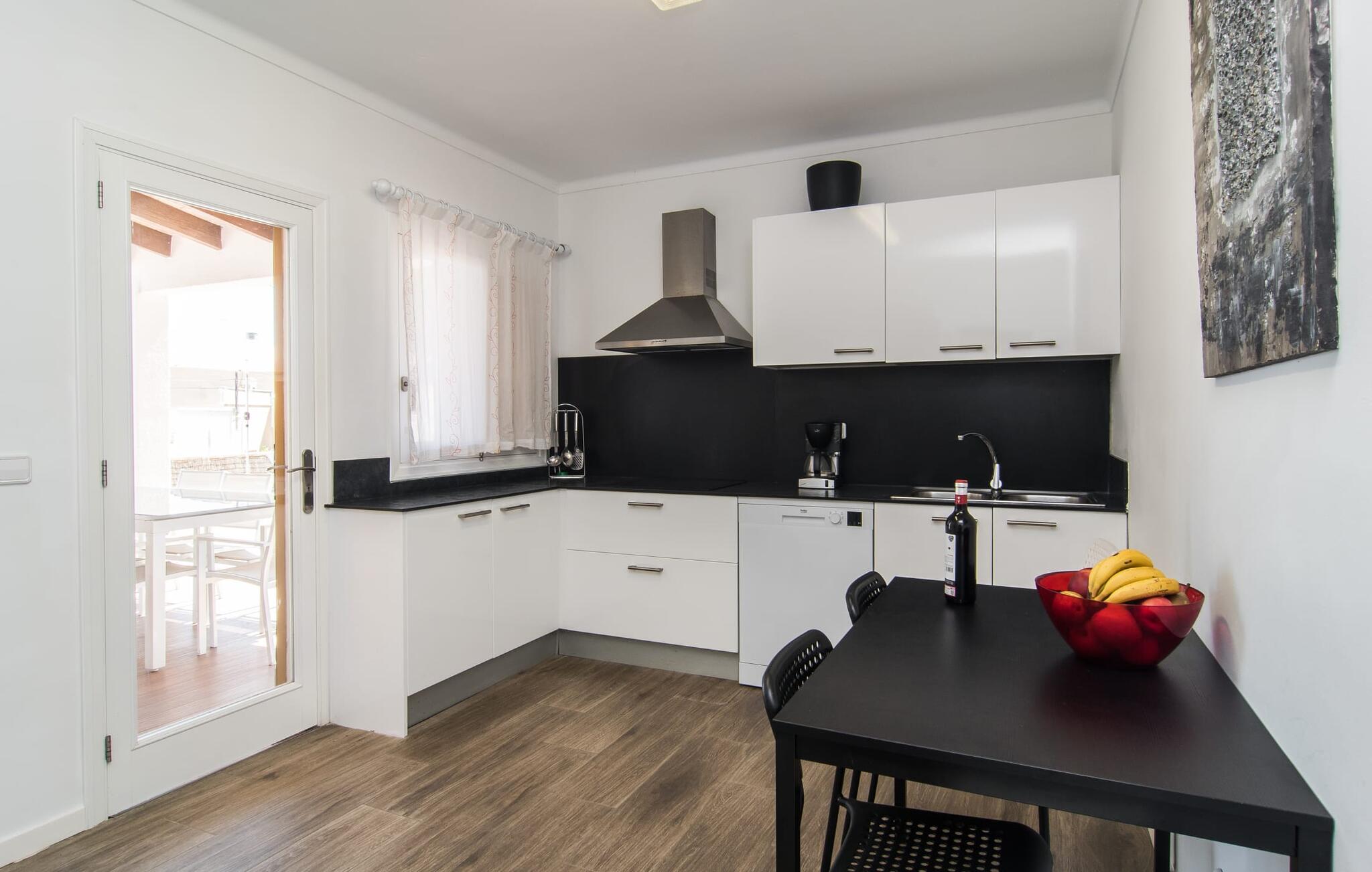 Deze villa op de begane grond biedt ruimte voor maximaal acht gasten in een vriendelijke en praktische omgeving. Het interieur wordt gekenmerkt door een heldere, ingetogen sfeer met witte tinten en contrasterende accenten. De open woon-eetkamer heeft een ruime bank en een grote tafel, terwijl de volledig uitgeruste keuken directe toegang biedt tot het terras. Met vier slaapkamers en drie badkamers (twee en suite) is privacy gegarandeerd. Deze villa is een uitstekend vakantiehuis op Mallorca, een combinatie van uitstekende infrastructuur en de nabijheid van de zee zonder afbreuk te doen aan comfort, bijna als een boerderij, midden in het hart van de stad!