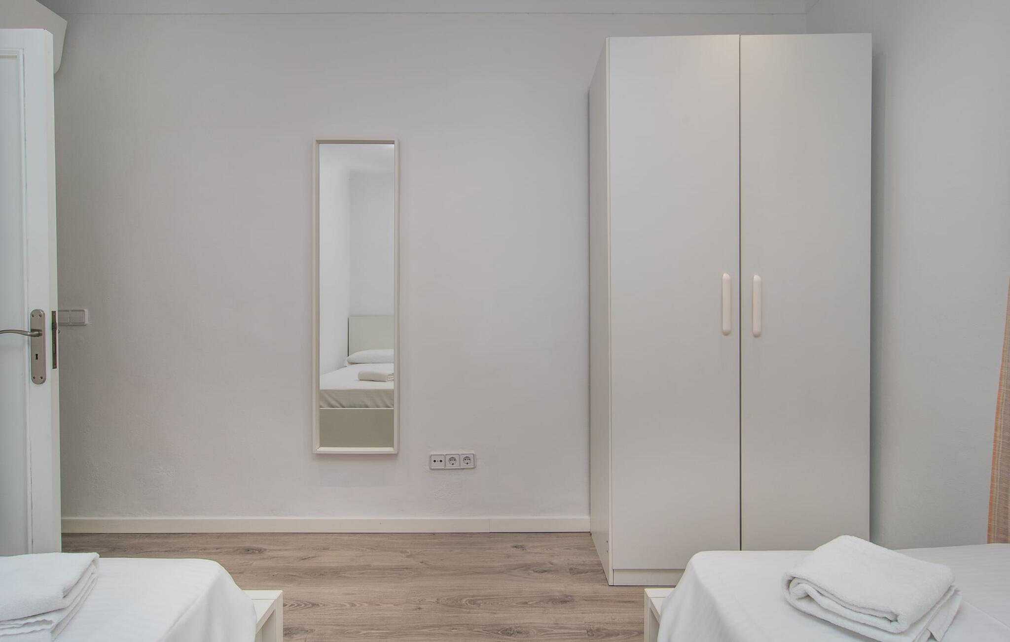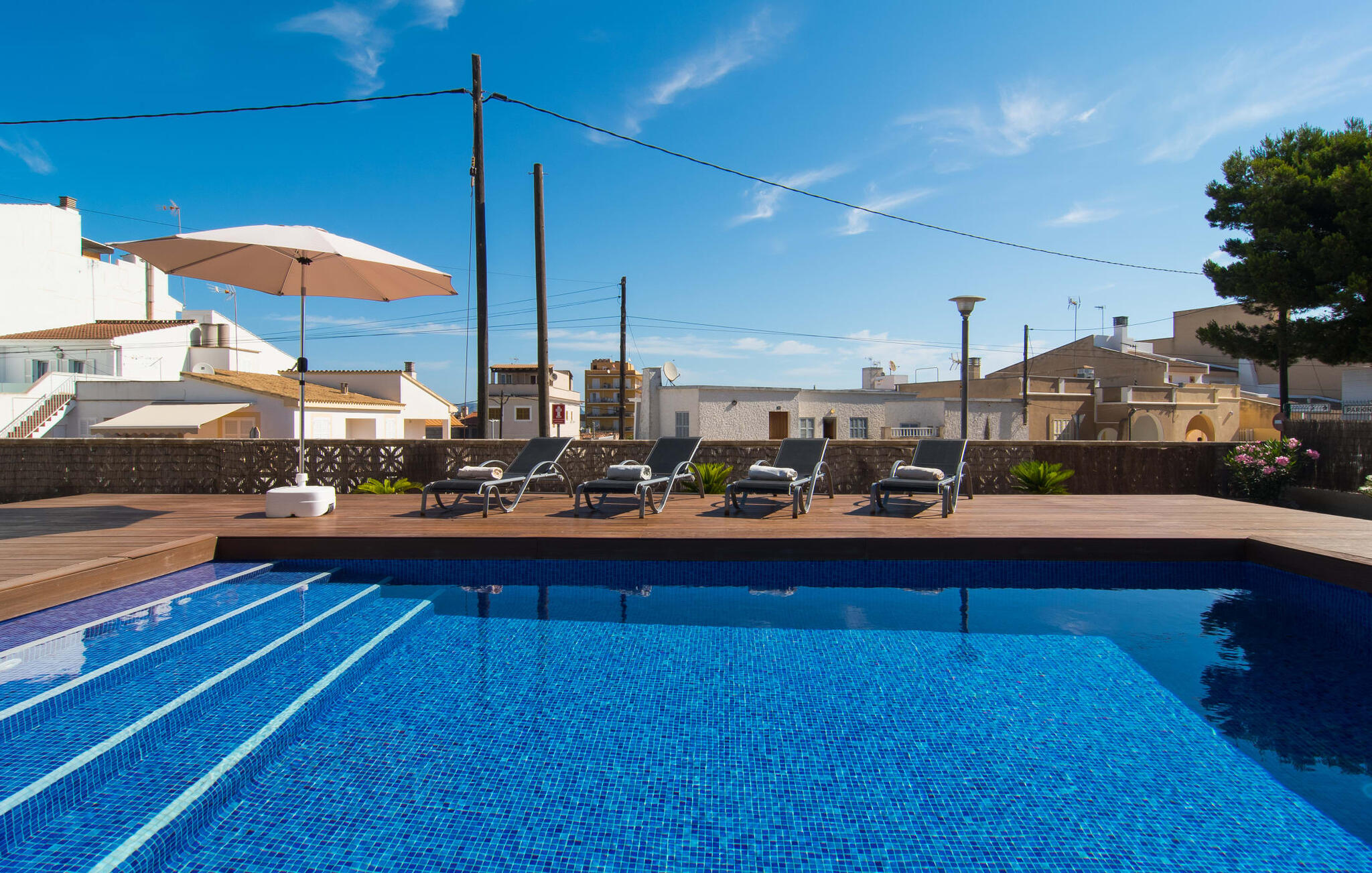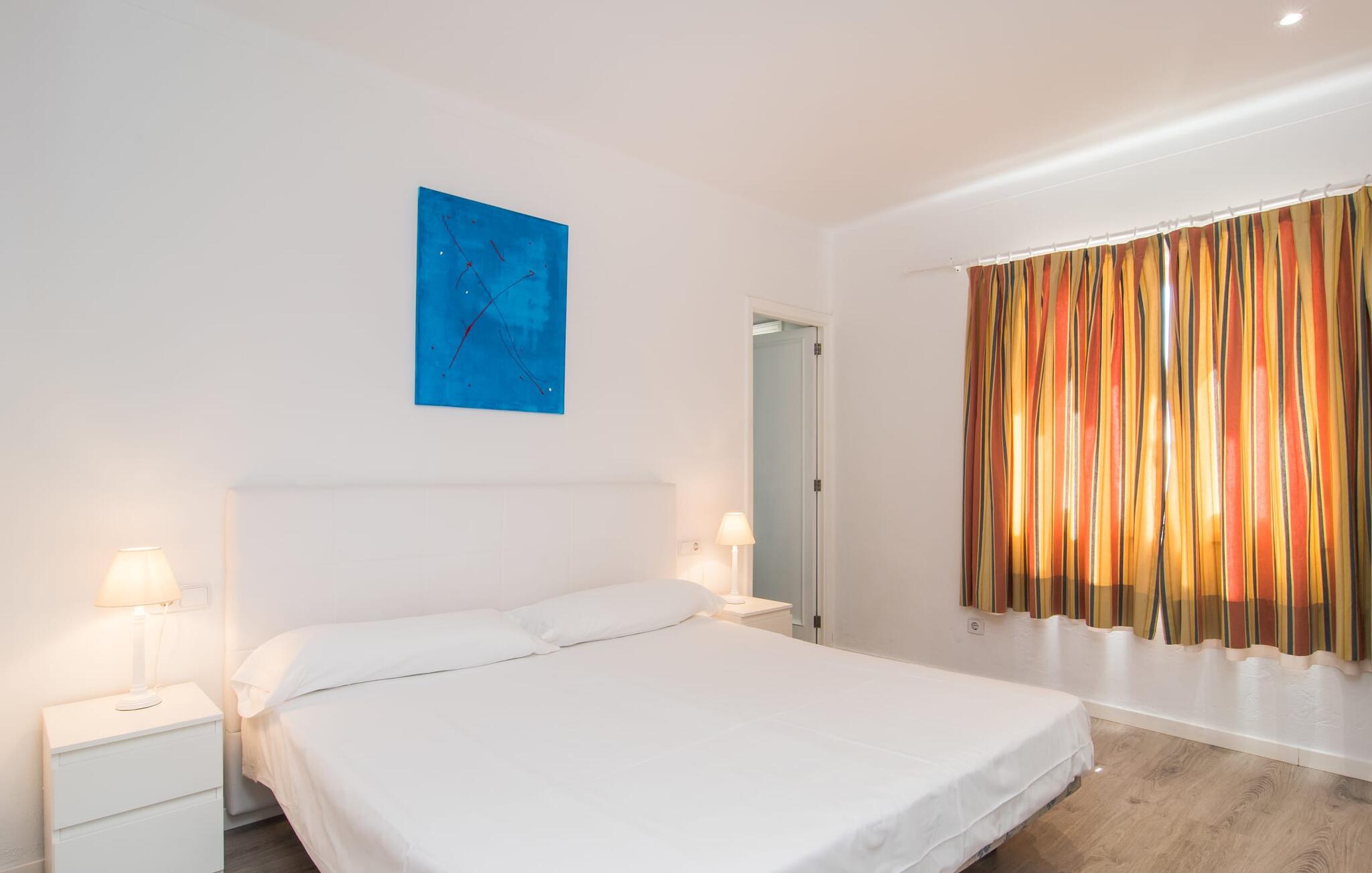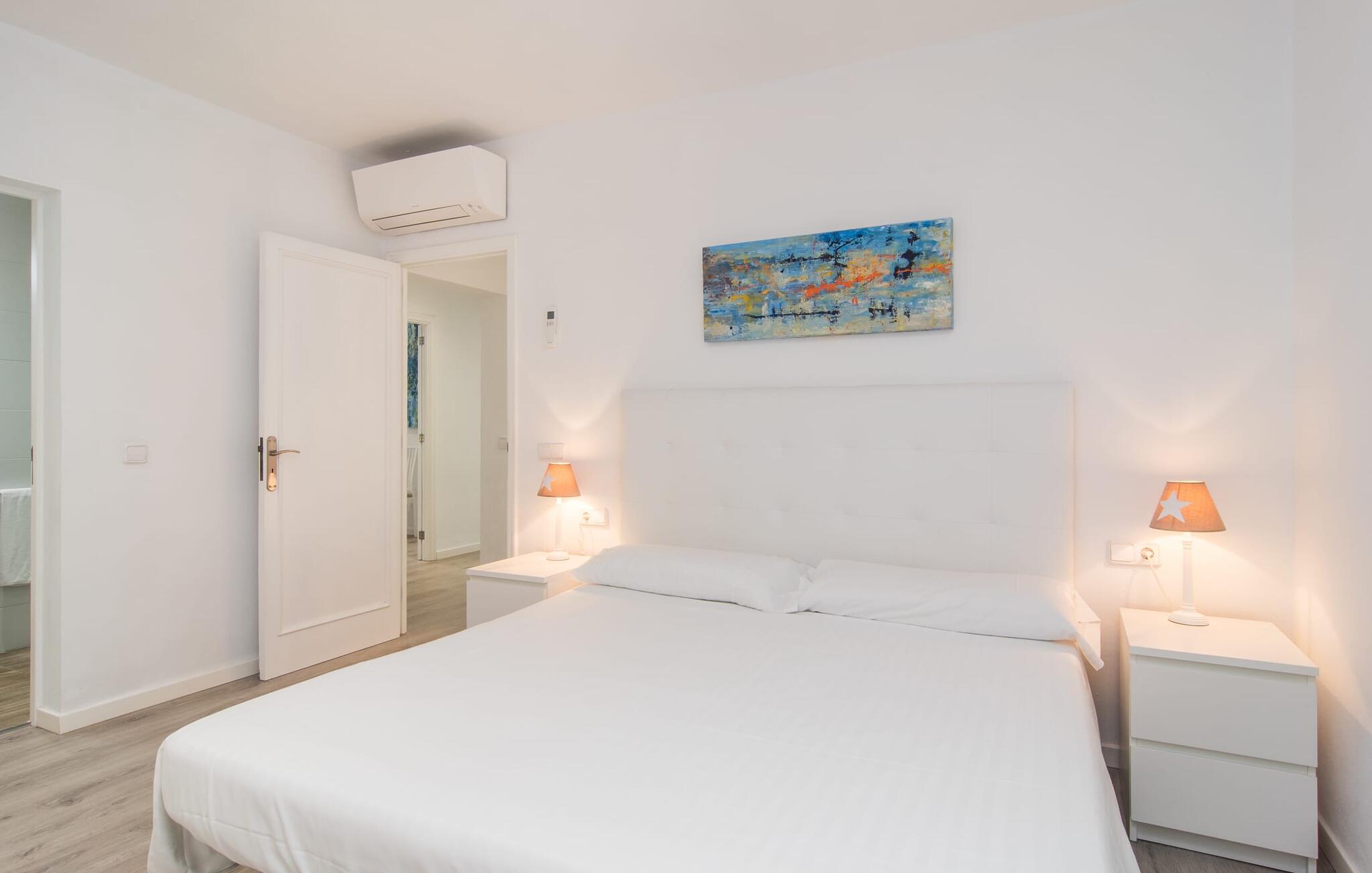 Deze villa op de begane grond biedt ruimte voor maximaal acht gasten in een vriendelijke en praktische omgeving. Het interieur wordt gekenmerkt door een heldere, ingetogen sfeer met witte tinten en contrasterende accenten. De open woon-eetkamer heeft een ruime bank en een grote tafel, terwijl de volledig uitgeruste keuken directe toegang biedt tot het terras. Met vier slaapkamers en drie badkamers (twee en suite) is privacy gegarandeerd. Deze villa is een uitstekend vakantiehuis op Mallorca, een combinatie van uitstekende infrastructuur en de nabijheid van de zee zonder afbreuk te doen aan comfort, bijna als een boerderij, midden in het hart van de stad!