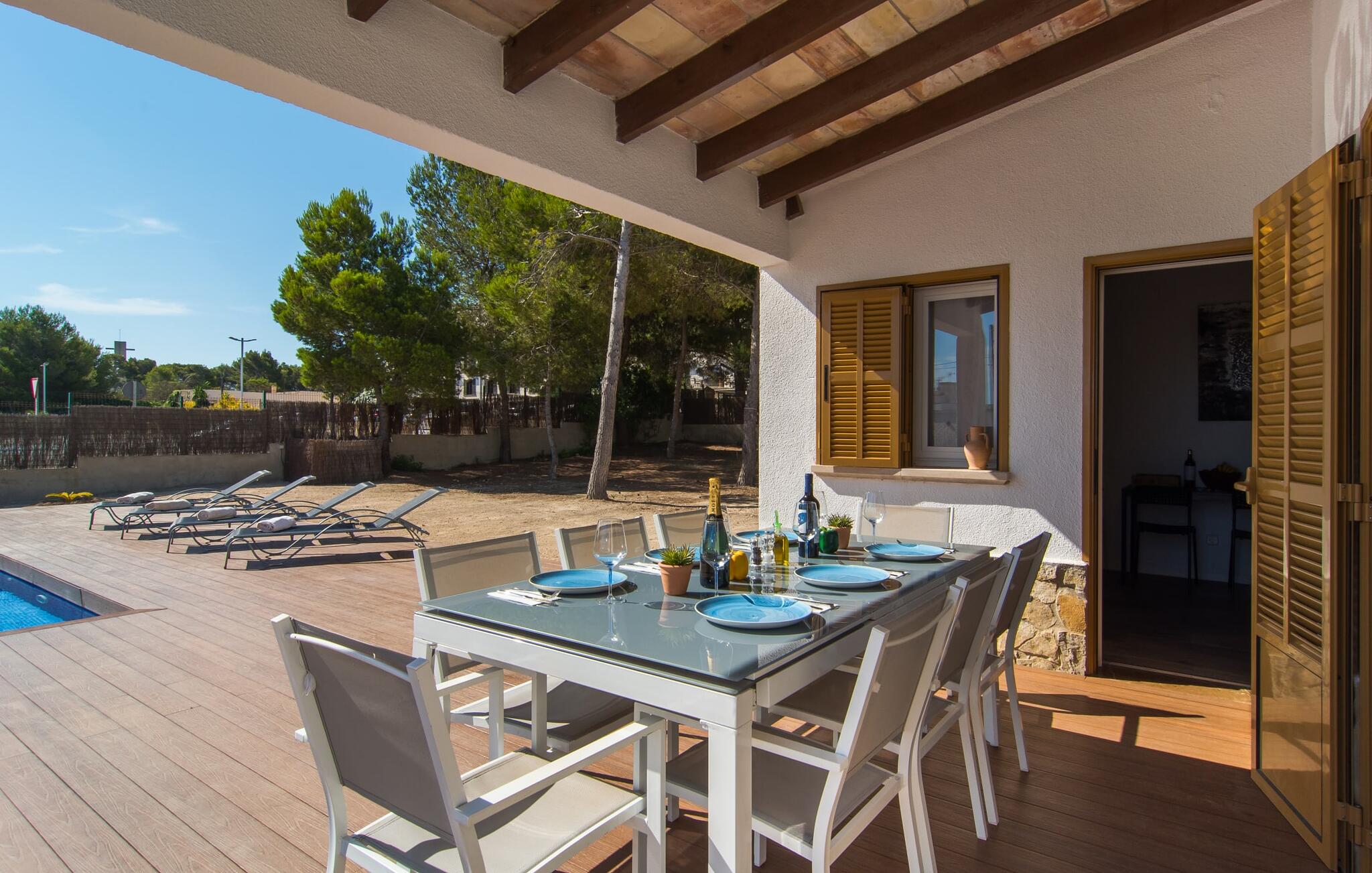 Dicht bij het strand, met een blote voeten gevoel en uitzicht op zee, Villa Anglesos is je perfecte vakantie droom die uitkomt. Verspreid over bijna 1.200 m² biedt deze woning een breed scala aan ontspanningsmogelijkheden onder de Mallorcaanse hemel.
